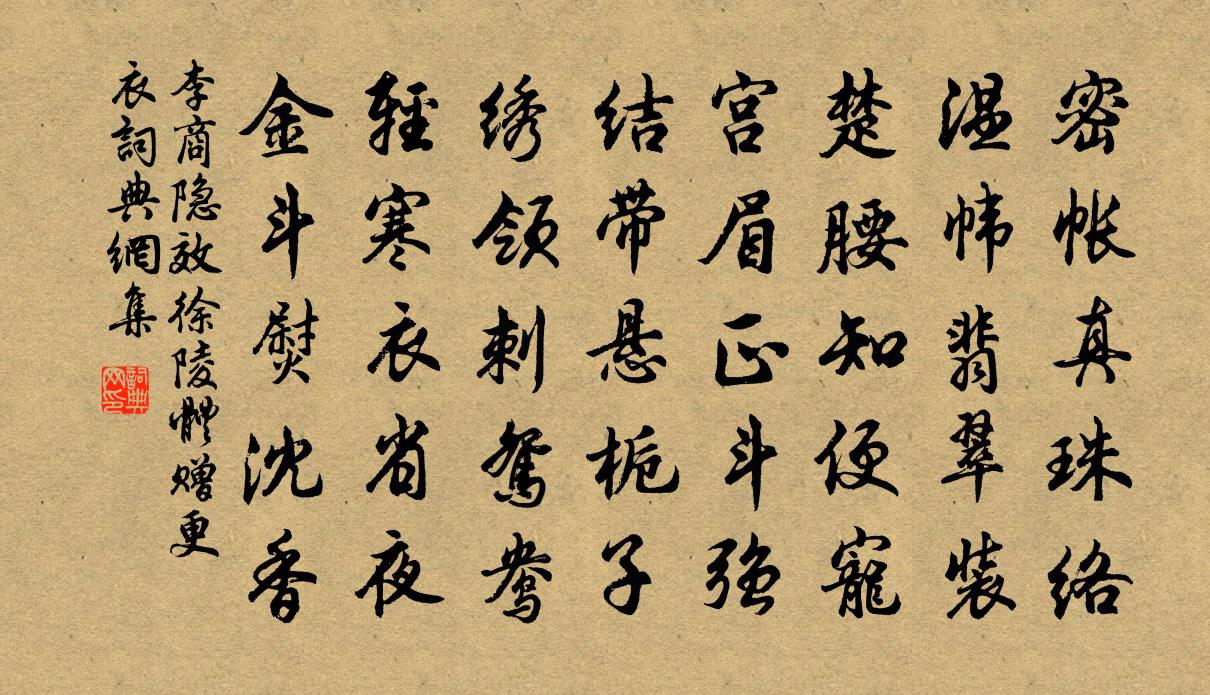 密帳真珠絡,溫幃翡翠裝。楚腰知便寵,宮眉正斗強。