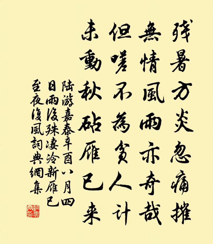 原題:嘉泰辛酉八月四日雨後殊淒冷新雁已至夜復風雨不止是歲八月一日白露