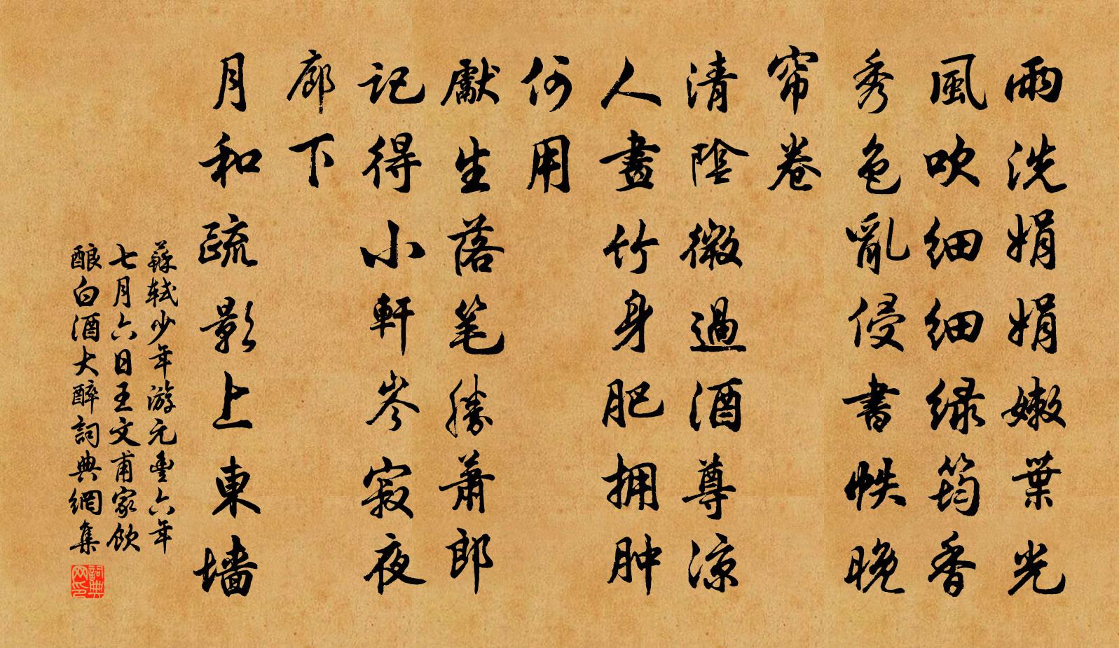 問:《少年游(元豐六年七月六日,王文甫家飲釀白酒,大醉。)》的作者是誰?答:蘇軾