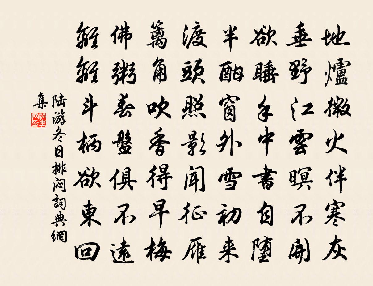 地爐微火伴寒灰,垂野江雲暝不開。欲睡手中書自墮,半酣窗外雪初來。