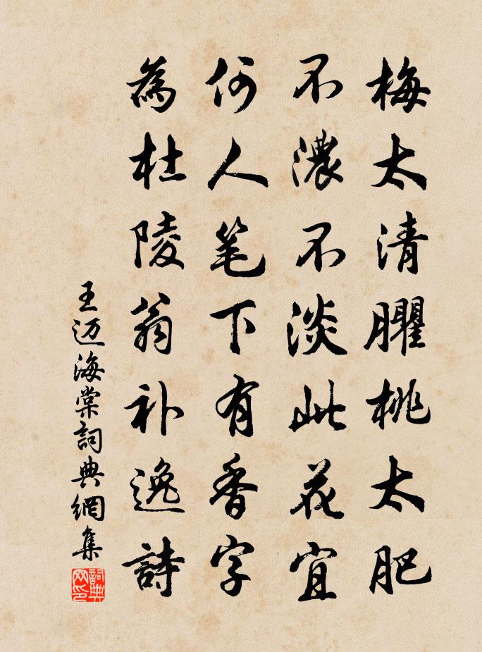 詩詞名句歷史字典書法欣賞書法字典國語詞典說文解字康熙字典古漢語字典標 題 作 者 詩 句 海棠作者:王邁 朝代:宋代海棠原文梅太清臞桃太肥,不濃不淡此花宜。何人筆下有香字,為杜陵翁補逸詩。詩詞問答問:海棠的作者是誰?答:王邁問:海棠寫於哪個朝代?答:宋代王邁海棠書法欣賞海棠書法作品詩詞推薦寄何首烏丸與友人文同〔宋代〕此草有奇效,嘗聞於習之。陵陽亦舊產,其地尤所宜。翠蔓走岩壁,芳叢蔚參差。下有根如拳,赤白相雄雌,斸之杪秋獨夜白居易〔唐代〕無限少年非我伴,可憐清夜與誰同。歡娛牢落中心少,親故凋零四面空。紅葉樹飄風起後,白須人立月明中。前頭代書寄周愚卿二首趙蕃〔宋代〕窮岡岡上歐陽子,荷屋屋中常不輕。邂逅論詩儻相及,為言即日鬢霜生。自維揚回真州沈大椿〔宋代〕青蒲短短柳斜斜,入眼新愁亂莫遮。雨潤固應宜筍蕨,風饕端不貸鶯花。春來止酒常因病,客裹逢人祗問家。安知和敬禪師茶偈鄭清之〔宋代〕魚鼓才休客至時,摸頭元是最先機。不須吸盡西江水,一滴曹溪味便知。自判此生非醉殺則睡殺耳未知天公肯見容否作蘇泂〔宋代〕兀兀蘧蘧也大奇,眼花花處蝶飛飛。先生飽慣人間事,只麽殘年是解圍。孫主簿惠上黨寺壁胡霈然書墨跡一匣梅堯臣〔宋代〕上黨佛祠何可觀,開元瑞物圖高閣。又有長廊古壁上,復是名輩題丹雘。當時泥用絲作筋,意欲千載無剝落。書奇玉樓春錢惟演〔宋代〕錦籜參差朱欄曲。露濯文犀和粉綠。未容濃翠伴桃紅,幾許纖枝留鳳宿。嫩似春荑明似玉。一寸芳心誰管束。勸君聞雁懷邵仲恭秦觀〔宋代〕楚澤吳天去未遲,煩君且傍蒜山飛。白袍居士如相問,為說淄塵欲滿衣。送趙判官赴黔府中丞叔幕李白〔唐代〕廓落青雲心,結交黃金盡。富貴翻相忘,令人忽自曬。蹭蹬鬢毛斑,盛時難再還。巨源咄石生,何事馬蹄間?綠蘿有感張嵲〔宋代〕傾摧漢祚是安昌,只恐狂瀾世莫當。自古忠言寧盡用,老臣得不戒王章。游九鎖山張景脩〔宋代〕九鎖山中多隱仙,洞門終古掩雲煙。茶生東塢偏迎日,松老西岩不記年。翠箬久藏千歲藥,碧池深納半山泉。蒼崖書志陸游〔宋代〕蓬矢桑弧射四方,豈知垂老臥江鄉。讀書雖復具隻眼,貯酒其如無別腸!疋馬揚鞭游鄠杜,扁舟捩柂上瀟湘。自悲趙樂道輓詩二首毛滂〔宋代〕耆舊彫零盡,歸來悲故鄉。雲山橫爽氣,杖履屬空床。蚤發名難沒,終榮德未央。芝蘭日夜長,遺範在諸郎。書壁章甫〔宋代〕禽聲春後變,柳色夜來深。老子關門坐,無人識此心。午睡起楊萬里〔宋代〕過雨余秋暑,移床揀午涼。小風吹醉面,凜氣忽如霜。日腳何曾動,桐陰有底忙。倦來聊作睡,睡起更蒼茫。題童氏畫佚名〔宋代〕林下材華雖可尚,筆端人物更清妍。如何不出深閨里,能以丹青寫外邊。減字木蘭花 即席贈歌者夏奴陸文圭〔元代〕香肌玉潤。花前忽聽流鶯韻。移步金蓮。斜轉清眸踏舞筵。因嬌無力。蜀錦纏頭拚百尺。安處奴鄉。且住容山過夏和曾守有作曹勛〔宋代〕問俗猶秋熱,移床趁晚涼。笑談懷酒伴,節物念吾鄉。聞道銀槽熟,思傾玉指香。政須圖一醉,寧復較行觴。鷓鴣天吳則禮〔宋代〕袞繡三朝社稷臣。舊調元鼎斡洪鈞。垂紳屢轉龍墀日,接膝潛回黼座春。金鑿落,玉麒麟。鳳鳴良月慶佳辰。巨鰲名句推薦慷慨十年長劍在,登樓一笑暮山橫。崔允《花馬池詠》 客行野田間,比屋皆閉戶。姚合《莊居野行》 白日不到處,青春恰自來。袁枚《苔》 貧而無諂,富而無驕孔子弟子《論語·學而篇》 顧謂戚夫人,彼翁羽翼成。李白《山人勸酒》 是故置本不安者,無務豐末。墨子《墨子·02章 修身》 不厚其棟,不能任重。重莫如國,棟莫如德。左丘明《國語·魯語·子叔聲伯辭邑》 明月松間照,清泉石上流。王維《山居秋暝》 春山暖日和風,闌乾樓閣簾櫳,楊柳鞦韆院中。白樸《天淨沙·春》 悲莫悲生離別,樂莫樂新相識,兒女古今情。辛棄疾《水調歌頭·壬子三山被召陳端仁給事飲餞席上作》