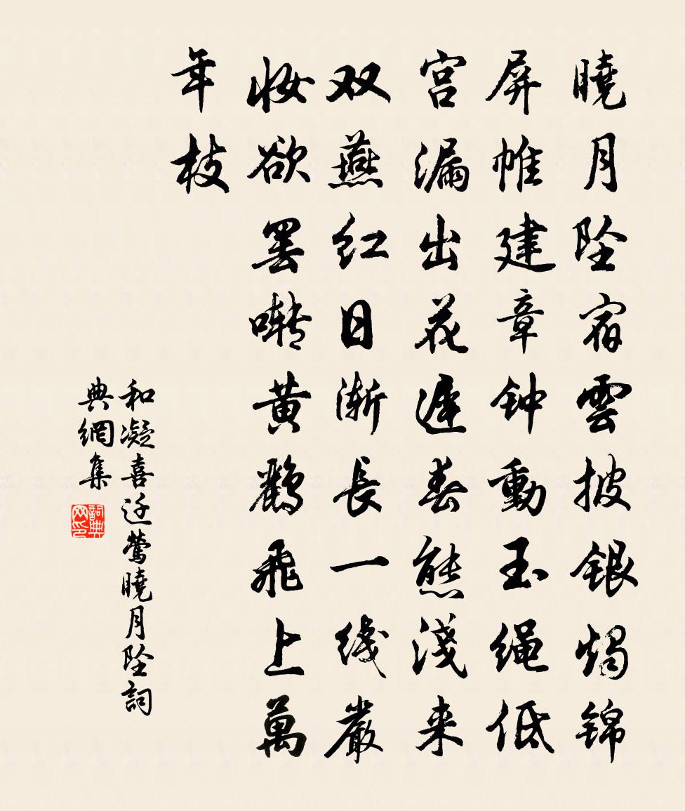 和凝當後晉全盛之時,身居相位。故而他的詞多承平“雅”、“頌”之聲。正像他在《薄命女》中所寫的天曙之狀:“宮漏穿花聲繚繞,窗外星光少。”生動形象,情辭俱佳。下片寫晨起理妝之所見所感。紅日漸長、鳥啼燕飛,春意淺上花枝,隱約地透露了人物的情思。這首詞意境新、語言美。