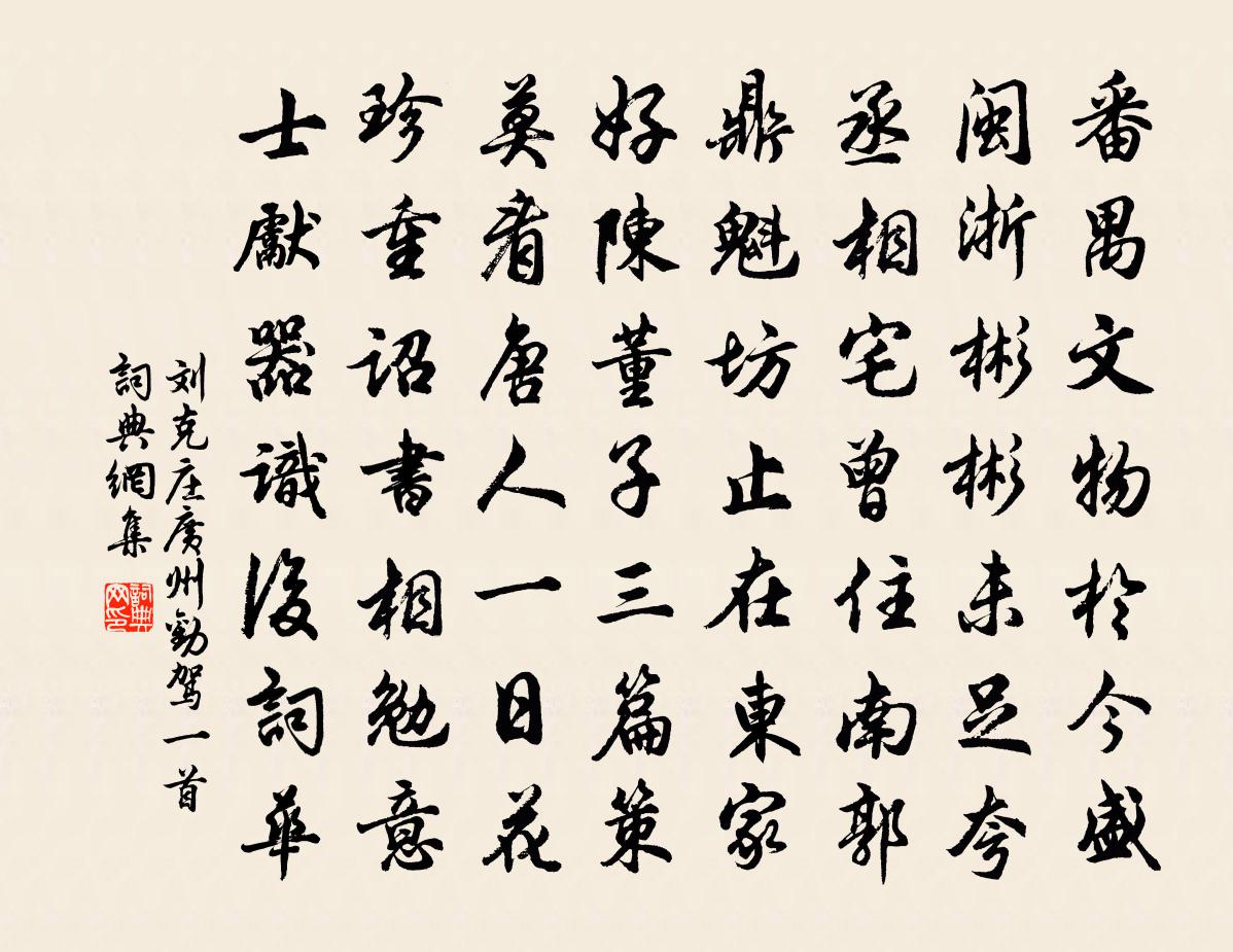 詩詞名句歷史字典書法欣賞書法字典國語詞典說文解字康熙字典古漢語字典標 題 作 者 詩 句 廣州勸駕一首作者:劉克莊 朝代:宋代廣州勸駕一首原文番禺文物於今盛,閩浙彬彬未足夸。丞相宅曾住南郭,鼎魁坊止在東家。好陳董子三篇策,莫看唐人一日花。珍重詔書相勉意,士先器識後詞華。詩詞問答問:廣州勸駕一首的作者是誰?答:劉克莊問:廣州勸駕一首寫於哪個朝代?答:宋代問:劉克莊的名句有哪些?答:劉克莊名句大全劉克莊廣州勸駕一首書法欣賞廣州勸駕一首書法作品詩詞推薦送別張長官東歸敖陶孫〔宋代〕勸君少留持一觴,三年一日才初長。春風愔愔著桃李,露雨沃沃開麻桑。道傍簫鼓莫淒咽,使君平生面如鐵。裁量野趣居士楊公遠令其子依竹似孫為予寫真贈以方回〔宋代〕爾來畫工工畫花,俗眼所識惟紛華。牡丹百卉哄蜂蝶,芙蓉鴛鴦相交加。大為屏帳小捲軸,堆紅積綠供□奢。高人在燕京作宋恭宗〔宋代〕寄語林和靖,梅花幾度開。黃金台下客,應是不歸來。宮詞王安石〔宋代〕六宅新妝促錦,三宮巧仗叢花。一片黃雲起處,內人遙認官家挽京口使君豐郎中十首劉宰〔宋代〕再向江淮把一麾,民情可但不能欺。來時叔度嗟何暮,去日何公苦見思。和周明瞻秋香五首吳芾〔宋代〕月窟仙人冷淡妝,鵝黃衫子翠羅裳。雖無妖艷夸塵俗,別是人家一種香。昭君溪李曾伯〔宋代〕巴峽向來惟屈姊,漢宮奚事出明姬。當時本有平戎術,中國難容絕世姿。忍死定仇婁敬策,惜生不遇武皇時。後人豐橋旅舍作陸游〔宋代〕我本山林人,心期在塵表。出門消底物,兩屩萬事了。群兒何足慍,為爾常悄悄。今朝山中路,更喜相識少。三叉句釋志端〔宋代〕木馬走似煙,石人趁不及。叢台歌賀鑄〔宋代〕累土三百尺,流火二千年。人生物數不相待,摧頹故址秋風前。武靈舊壠今安在,禿樹無陰困樵採。玉簫金鏡未銷為趙振文賦馬塍歌趙汝譡〔宋代〕舊聞城北有馬塍,聚花成錦常留春。我家苕水近來到,輸他年少尋芳人。相夸此地百金惜,閒出奇花萬錢直。接貼白山茶劉學箕〔宋代〕白茶誠異品,天賦玉玲瓏。不作燒燈焰,深明韞櫝功。易容非世功,幻質本春工。皓皓知難污,塵飛謾自紅。如夢令(次韻吳郎子信殘春)汪晫〔宋代〕幾點弄晴微雨。翳日薄雲來去。斷送一番春,滿徑楊花飛絮。無語。無語。還是舊時院宇。人月圓趙雍〔元代〕相思何日重相見,山遠水偏長。鳳弦雖斷,鸞膠難接,愁滿離腸。最傷情處,鮫綃遺恨,翠靨留香。故人何在,濃贈相者非常眼馬廷鸞〔宋代〕已分山林著此臞,一科端不補遺余。朝來忽遇非常眼,廢卻窗前半日書。有常吟邵雍〔宋代〕天地有常理,日月有常明。四時有常序,鬼神有常靈。聖人有常德,小人無常情。醉翁操郭祥正〔宋代〕冷冷潺潺。寒泉。瀉雲間。如彈。醉翁洗心逃區寰。自期猿鶴俱閒。情未闌。日暮造深原。異芳誰與搴。忘還。瓊汪守三以詩來次韻酬之陳傅良〔宋代〕音合桑林律中宮,試聽布鼓亦三通。相從璧水浮蔥白,一別閩山擘荔紅。把釣扁舟將老去,款門多竹未全窮。若為送鄭司戶劉克莊〔宋代〕目送雙旌已黯然,可堪之子去聯翩。遙知幕下聞三語,不要山陰送一錢。聊與遠民蠲熱瘴,並為遷客飲寒泉。昔游乙酉夏述懷二絕劉宰〔宋代〕岸柳風摧更綠饒,檻花當暑自紅嬌。流行一氣元無息,松柏何妨獨後彫。名句推薦坐愁群芳歇,白露凋華滋。李白《秋思》 思家步月清宵立,憶弟看雲白日眠。杜甫《恨別》 更被夕陽江岸上,斷腸煙柳一絲絲。韋莊《江外思鄉》 黃鶯不語東風起,深閉朱門伴舞腰。溫庭筠《楊柳八首·其三》 北郭清溪一帶流,紅橋風物眼中秋,綠楊城郭是揚州。王士禎《浣溪沙·紅橋》 多少淚珠何限恨,倚欄乾李璟《攤破浣溪沙·菡萏香銷翠葉殘》 離心何以贈,自有玉壺冰。駱賓王《送別》 已過才追問,相看是故人。吳偉業《遇舊友》 我今因病魂顛倒,唯夢閒人不夢君。元稹《酬樂天頻夢微之》 將欲歙之,必故張之;將欲弱之,必故強之;將欲廢之,必故興之;將欲取之,必故與之。老子《老子·道經·第三十六章》