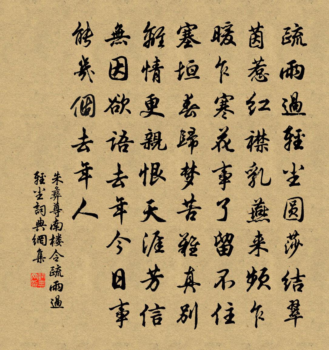 朱彝尊南樓令·疏雨過輕塵書法欣賞