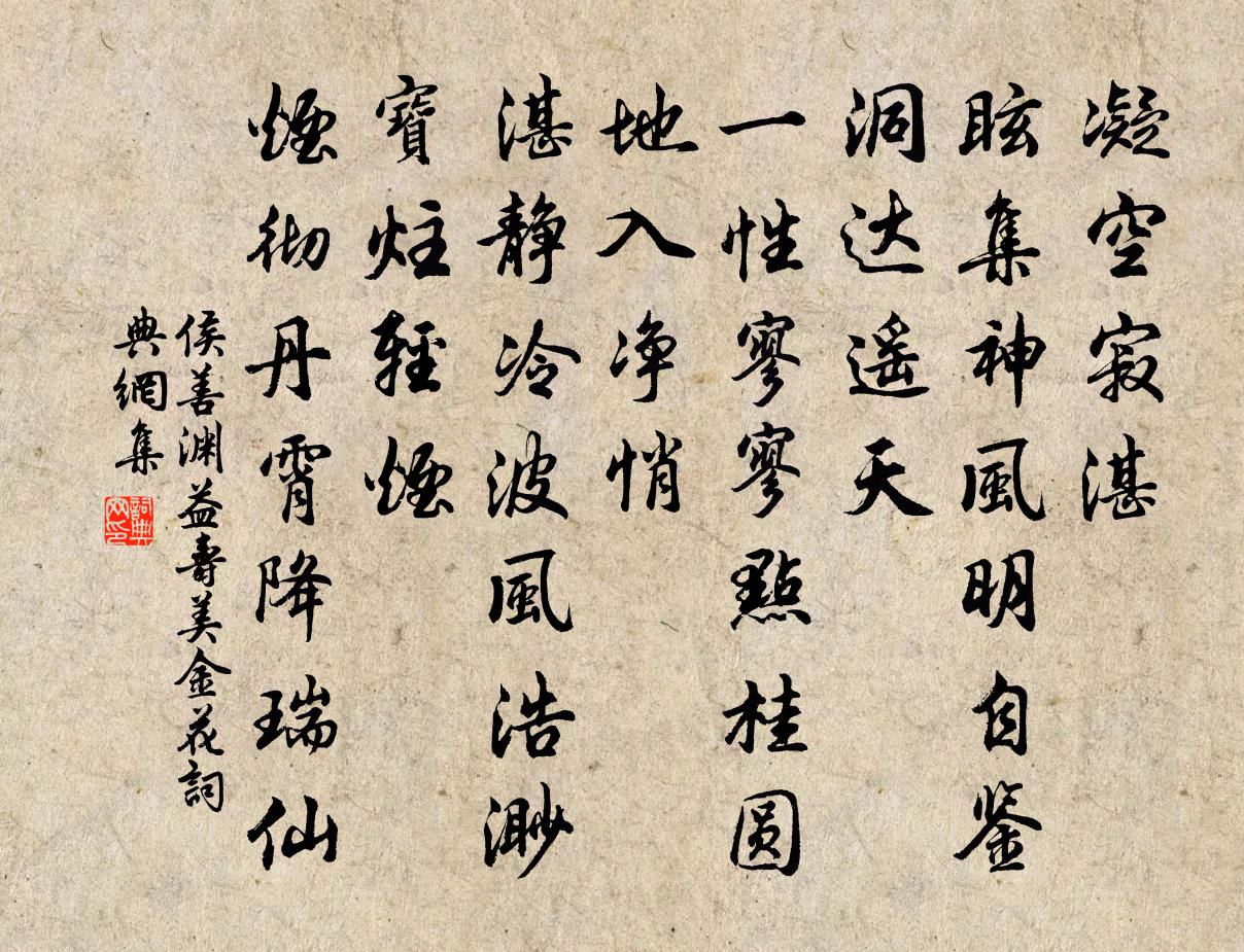 詩詞名句歷史字典書法欣賞書法字典國語詞典說文解字康熙字典古漢語字典標 題 作 者 詩 句 益壽美金花作者:侯善淵 朝代:元代益壽美金花原文凝空寂湛。眩集神風明自鑒。洞達遙天。一性寥寥點桂圓。地入淨悄。湛靜冷波風浩渺。寶炷輕煙。煙徹丹霄降瑞仙。詩詞問答問:益壽美金花的作者是誰?答:侯善淵問:益壽美金花寫於哪個朝代?答:元代問:益壽美金花是什麼體裁?答:詞侯善淵益壽美金花書法欣賞益壽美金花書法作品詩詞推薦蝶戀花(秋晚東歸,留吳會甚久,無一人往還者)毛滂〔宋代〕江接寒溪家已近。想見秋琰,松菊荒三徑。目送吳山秋色盡。星星卻入雙蓬鬢。鳧短鶴長真箇定。勳業來遲,不用題施武子所藏醉白堂記樓鑰〔宋代〕堂名醉白尚存不,詞翰輝光射兩眸。天下曾除蘇氏學,禁中卻有太清樓。舊碑於世已難見,真跡惟君乃得收。感嘆擢秀峰程敦厚〔宋代〕化境何年斲取還,嶄然擢秀瘴茅間。我來授記開潛閱,從此佳名溢世寰。晨炊橫塘橋酒家小窗楊萬里〔宋代〕仰聽金衣語,偶窺鶯婦巢。深穿喬木里,危掛弱枝稍。啄菢雙雙子,經營寸寸茅。何時雛脫殼,新哢響交交。紀時華岳〔宋代〕古今多少好英雄,未必奸邪未必忠。上黨鼎膏流地白,長平坑血濺天紅。三邊傳檄兵雖息,二榷開場貨未通。更願聞虜人敗於柘皋作口號十首龐謙孺〔宋代〕聞道諸軍遣軍嵬,柘皋合戰打頭回。不煩宣撫親提劍,鐵塔前鋒一布摧。月墅方岳〔宋代〕老我初營茅蓋頭,墅我林壑恰中秋。詩人例合三間月,餘子從教百尺樓。已斸荒畦秧早韭,旋呼老瓦壓新篘。客來蝶戀花李之儀〔宋代〕天淡雲閒晴晝永。庭戶深沈,滿地梧桐影。骨冷魂清如夢醒。夢回猶是前時景。取次杯盤催酩酊。醉帽頻敧,又被思惟相觀音贊釋心月〔宋代〕春禽晝啼,秋蟲夜吟。有耳皆聞,何獨觀音。如是而知,如是而覺。面目現前,超諸餘學。念奴嬌 花草粹編卷十引水滸傳完顏亮〔元代〕天丁震怒,掀翻銀海,散亂珠箔。六出奇花飛滾滾,平填了、山中丘壑。皓虎顛狂,素麟猖獗,掣斷真珠索。玉龍梅花喜神譜欲謝一十六枝宋伯仁〔宋代〕暗香從何來,寒飈為輕扇。東君須護持,莫點官妝面。歌妓許冬冬攜酒郊外小集汪元量〔宋代〕益州歌妓許冬冬,客里相逢似燕鴻。醉擁蜀琴抽白雪,舞回班扇割西風。山炰野饌荒山里,浪蕊浮花古寺中。偶爾奉使契丹二十八首其二十八筠州聖祖殿詩蘇轍〔宋代〕如日在天,靡國不臨。筠雖小邦,其有不歆。東廡西向,誰昔營之。民昏不知,神以不懷。送沿江制使姚橘州尚書自金陵赴召三首陳著〔宋代〕自紫岩來百載余,我公德量世閒無。官高也只如韋布,家慶真堪入畫圖。忙處轉多閒氣象,平時惟做實工夫。此行多雨曾鞏〔宋代〕嗟江之濱地多雨,冬雷不收開蟄戶。陰氣濁晦化為霧,或雲于山水於礎。雜花萬株紅與紫,臘風吹開不可數。入春祝英台近(和吳叔永文昌韻)吳潛〔宋代〕碧雲開,紅日麗,宮柳碎繁影。猶記朝回,馬兀夢頻醒。天教一舸江湖,數椽澗壑,漸擺脫、世間塵境。已深省。紀事仇遠〔宋代〕柴扉深閉百蟲秋,落葉幽花露未收。野僻了無雞報曉,啟明星在樹梢頭。次潘丈韻與劉學錄陳宓〔宋代〕以彼月中桂,來娛地上仙。沖融胸內樂,擺落世間緣。人語春風裡,秋歸夕照邊。主翁長靜坐,不是學安然。有所教元稹〔唐代〕莫畫長眉畫短眉,斜紅傷豎莫傷垂。人人總解爭時勢,都大須看各自宜。村居書事陸游〔宋代〕修身世世詩書業,營利明明市井人。安得後生俱自好,百年門戶本來貧。名句推薦兒大詩書女絲麻,公但讀書煮春茶。黃庭堅《送王郎》 何以解憂?唯有杜康。曹操《短歌行》 思則有備,有備無患左丘明《左傳·襄公·襄公十一年》 看破的,遁入空門;痴迷的,枉送了性命。曹雪芹《紅樓夢·第五回》 迢迢新秋夕,亭亭月將圓。陶淵明《戊申歲六月中遇火》 荒戍落黃葉,浩然離故關。溫庭筠《送人東遊》 檳榔無柯,椰葉無陰。左思《三都賦》 夢裡相思,故國王孫路。陳子龍《點絳唇·春日風雨有感》 為容不在貌,獨抱孤潔。張炎《疏影·梅影》 迢遞嵩高下,歸來且閉關。王維《歸嵩山作》