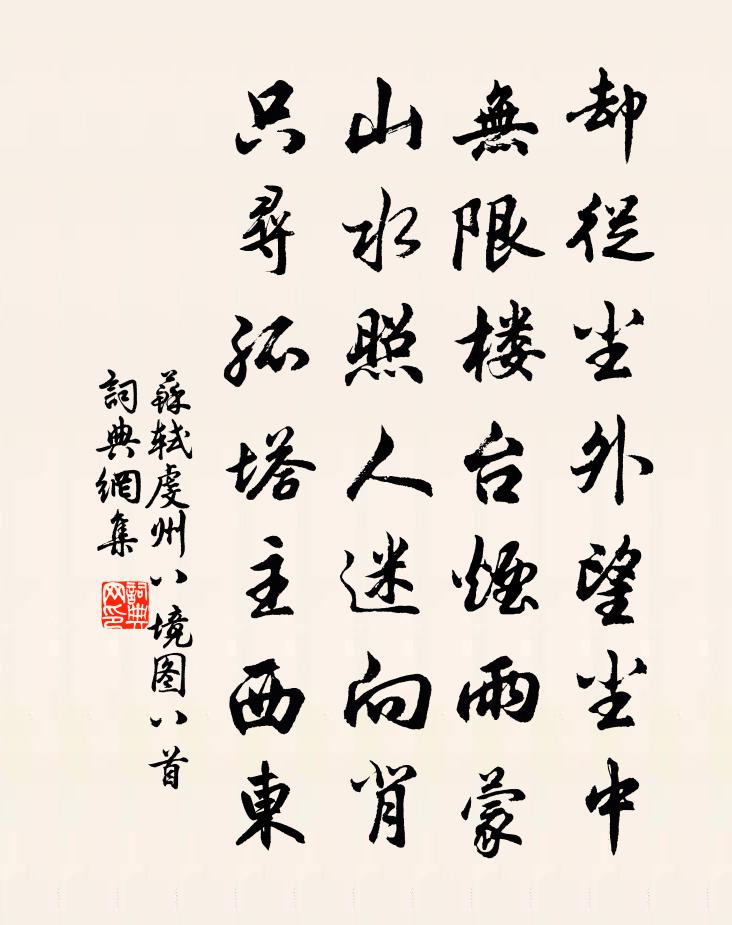 卻從塵外望塵中,無限樓台煙雨蒙。山水照人迷向背,只尋孤塔主西東。