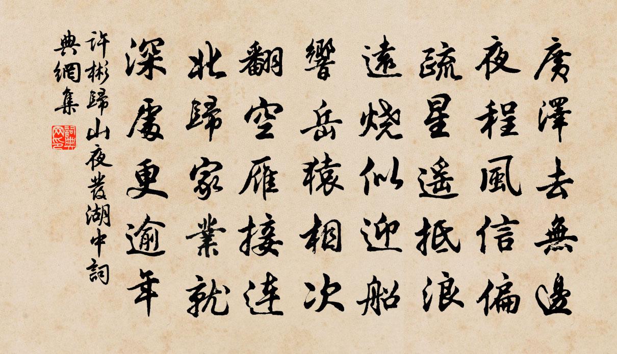 詩詞名句歷史字典書法欣賞書法字典國語詞典說文解字康熙字典古漢語字典標 題 作 者 詩 句 歸山夜發湖中作者:許彬 朝代:唐代歸山夜發湖中原文廣澤去無邊,夜程風信偏。疏星遙抵浪,遠燒似迎船。響岳猿相次,翻空雁接連。北歸家業就,深處更逾年。詩詞問答問:歸山夜發湖中的作者是誰?答:許彬問:歸山夜發湖中寫於哪個朝代?答:唐代問:歸山夜發湖中是什麼體裁?答:五律許彬歸山夜發湖中書法欣賞歸山夜發湖中書法作品注釋全唐詩:卷678-4詩詞推薦第五將軍於餘杭天柱宮入道因題寄羅隱〔唐代〕交梨火棗味何如,聞說苕川已下車。瓦榼尚攜京口酒,草堂應寫潁陽書。亦知得意須乘鶴,未必忘機便釣魚。卻恐荀卿徐鈞〔宋代〕老廢蘭陵已可悲,著書強欲曉當時。一言性惡真成繆,讀者何雲但小疵。次韻洪尉方岳〔宋代〕氣當以志帥,心豈為形役。未知政奚先,亦各職其職。相期邊幅捐,安用竿牘飭。勉旃正吾鵠,其中非爾力。寄華陰劉拾遺許棠〔唐代〕堅心持諫諍,自古亦艱難。寄邑雖行化,眠雲似去官。河分中野斷,岳入半天寒。瀑布冰成日,誰陪吟復看。秋末江行貫休〔唐代〕四顧木落盡,扁舟增所思。雲沖遠燒出,帆轉大荒遲。天際霜雪作,水邊蒿艾衰。斷猿不堪聽,一聽亦同悲。題方武成詩草劉克莊〔宋代〕性僻愛詩如至寶,借君詩卷百回看。吟來體犯諸家少,改定人移一字難。束瀑為題猶夭矯,吞山入句尚蒼寒。嗟余九月二十六日河上雪強至〔宋代〕昨朝今日盡天風,九月長河雪片中。雲外誰偷榆莢種,人間自滿菊花叢。群陰已鼓先時勇,萬井應愁卒歲窮。亦欲和晁子西鈴屬勸農長篇郭印〔宋代〕使君誠意與天開,呼吸之間為雲雷。一朝命駕出郊次,遠近爭看髦節來。道邊草木盡翔舞,巴峽邇來和氣聚。祗從詠松胡仲弓〔宋代〕老枝髯鬣動,古乾鱗甲翻。積陰生潤氣,芳菲翳蘭蓀。水調歌頭(李提刑沖佑炁生日)魏了翁〔宋代〕溥露浸秋色,零雨濯湖弦。做成特地風月,管領老臞仙。雁落村間柸影,魚識橋邊柱杖,慮澹境長偏。祗恐未免耳書枕屏陸游〔宋代〕星斗闌乾曉,窗扉曨聰明。金門與茅店,一種是雞聲。九日與陸處士羽飲茶皎然〔唐代〕九日山僧院,東籬菊也黃。俗人多泛酒,誰解助茶香。秋暮郊居書懷白居易〔唐代〕郊居人事少,晝臥對林巒。窮巷厭多雨,貧家愁早寒。葛衣秋未換,書卷病仍看。若問生涯計,前溪一釣竿。水調歌頭(次李伯紀春日韻)李彌遜〔宋代〕松柏漸成趣,紅紫勿齊開。花神靳惜芳事,日日待公來。遙想金葵側處,素月華燈相照,妝影滿歌台。餘韻寫宮徵散愁四首宋伯仁〔宋代〕小樓呼酒揖青山,翠碧瓏璁一笑間。山若有情應問我,如何猶似野人閒。江城子 村居沈泓〔明代〕長堤細柳隱虹橋,弄笙簫,伴漁樵。醉倚楓林,仰面掛詩飄。釋卷正逢秋水漲,臨古渡,放輕舠。夕陽西下暗窗綃題贈高閒上人陳陶〔唐代〕檐卜花間客,軒轅席上珍。筆江秋菡萏,僧國瑞麒麟。內殿初招隱,曹溪得後塵。龍蛇驚粉署,花雨對金輪。白馬鷓鴣天 秋長筌子〔元代〕乍覺西風吹葛衣。蕭蕭秋色滿華夷。催排蕎麥花開日,點勘梧桐葉落時。鴉噪晚,客思歸。一川禾黍正離離。蟬聲晨光動翠華佚名〔宋代〕早朝開紫殿,佳氣逐清晨。北闕華旌在,東方曙景新。影連香霧合,光媚慶雲頻。鳥羽飄初定,龍文照轉真。直疑詠鸚鵡裴說〔唐代〕常貴西山鳥,銜恩在玉堂。語傳明主意,衣拂美人香。緩步尋珠網,高飛上畫梁。長安頻道樂,何日從君王。名句推薦運往無淹物,年逝覺已催。謝靈運《歲暮》 不鳴則已,一鳴驚人。司馬遷《滑稽列傳》 堯不能獨成,烏獲之不能自舉韓非及後人《韓非子·觀行》 凡軍欲其眾也,心欲其一也,三軍一心則令可使無敵矣。李昉、李穆、徐鉉《太平御覽·兵部·卷二》 故目者,心之浮也;言者,行之指也;作於中,則播於外也。戴聖《大戴禮記·曾子立事第四十九》 江流石不轉,遺恨失吞吳。杜甫《八陣圖》 拔劍擊大荒,日收胡馬群。杜甫《後出塞五首》 吳洲春草蘭杜芳,感物思歸懷故鄉。宋之問《寒食江州滿塘驛》 舉大事必有所資李大師、李延壽《南史·列傳·卷五十三》 故人西辭黃鶴樓,煙花三月下揚州。李白《黃鶴樓送孟浩然之廣陵》