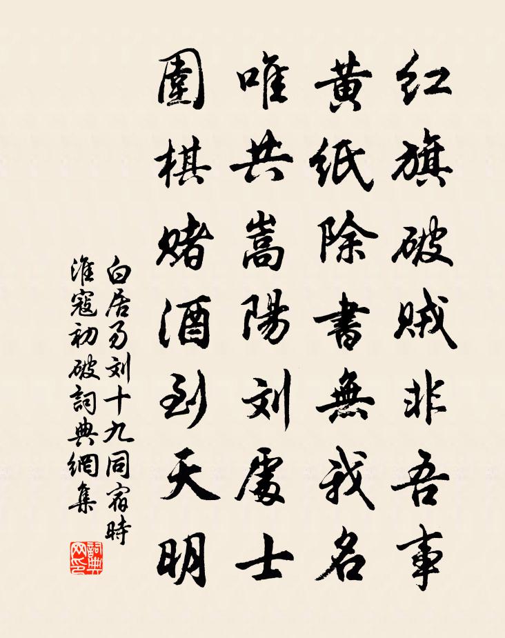 紅旗破賊非吾事,黃紙除書無我名。唯共嵩陽劉處士,圍棋賭酒到天明。