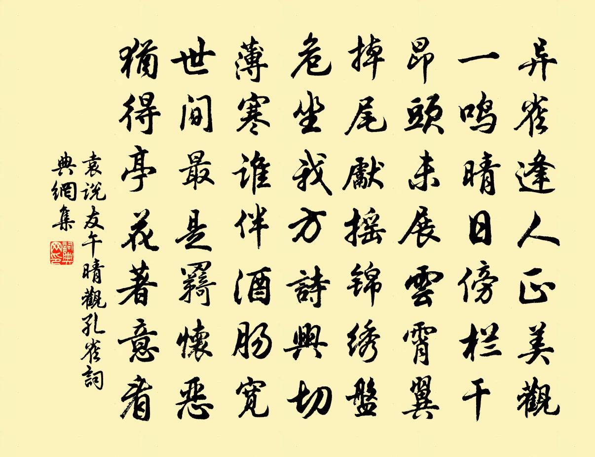 詩詞名句歷史字典書法欣賞書法字典國語詞典說文解字康熙字典古漢語字典標 題 作 者 詩 句 午晴觀孔雀作者:袁說友 朝代:宋代午晴觀孔雀原文異雀逢人正美觀,一鳴晴日傍欄乾。昂頭未展雲霄翼,掉尾先搖錦繡盤。危坐我方詩興切,薄寒誰伴酒腸寬。世間最是羇懷惡,猶得亭花著意看。詩詞問答問:午晴觀孔雀的作者是誰?答:袁說友問:午晴觀孔雀寫於哪個朝代?答:宋代袁說友午晴觀孔雀書法欣賞午晴觀孔雀書法作品詩詞推薦寄隆虛岩行人釋行海〔宋代〕藤花小朵插軍持,香篆輕煙裊裊移。山鳥不啼禪定處,池魚偏集誦經時。風聲入戶松千樹,月影臨窗竹一枝。舊日調笑/調笑令佚名〔宋代〕來見。蕊宮殿。記得隨班迎鳳輦。餘花落盡蒼苔院。斜掩金鋪一片。千金買笑無方便。和淚盈盈嬌眼。洞仙歌朱彝尊〔清代〕仲冬二七,算良期須果。若再沉吟甚時可。況熏爐漸冷,窗燭都灰,難道又各自抱衾閒坐。銀灣橋已就,冉冉行雲偈傾一百三十三首釋法薰〔宋代〕東去亦是上座,西去亦是上座。提水放火,看風使舵。七出八沒,儒雅風流。幾度黑風翻大海,何曾覆卻釣魚舟。句釋曉瑩〔宋代〕素抱與誰傾。滿庭芳佚名〔宋代〕減飯除情,敵魔戰睡,聖賢學道根基。進人退己,用事契心機。遇境休生煙火,安閒處、性要無疑。爭知道,洪波題小石接待庵曹勛〔宋代〕老大思閒適,山林喜晦藏。一廛雖異縣,三徑得崇岡。地僻煙雲潤,年豐黍稷香。心期得多矣,襟袖更新涼。題請息齋六言范成大〔宋代〕灩澦年年似馬,太行日日摧車。笑中恐有義甫,泣里難防叔魚。偈頌六十首釋曇華〔宋代〕佛祖正印,衲僧藞苴。有眼如盲,有口如啞。更問如何,可知禮也。偶題裴廷裕〔唐代〕微雨微風寒食節,半開半合木蘭花。看花倚柱終朝立,卻似淒淒不在家。教授顏端行出示所和老杜曲江章因次韻王之道〔宋代〕浮雲卷盡秋天高,月光照水翻金濤。臨溪酌月羞溪毛。舉杯未飲欲誰酬,茲非沈謝須劉曹。又寄次前韻皮日休〔唐代〕病根冬養得,春到一時生。眼暗憐晨慘,心寒怯夜清。妻仍嫌酒癖,醫只禁詩情。應被高人笑,憂身不似名。送嶺南崔侍御元稹〔唐代〕我是北人長北望,每嗟南雁更南飛。君今又作嶺南別,南雁北歸君未歸。洞主參承驚豸角,島夷安集慕霜威。黃家題識山樓易祓〔宋代〕山外如何便識山,白雲出岫鳥知還。更看面目知端的,卻在先生幾格閒。蔡山渡高似孫〔宋代〕江上人家破竹門,潮來長浸籬根。鮆魚一尺楷杷小,放溜船來酒滿尊。平章命真山民〔宋代〕萬甲蟠胸老氣雄,將星光照海雲東。聲名宣尉裴中立,地步平章韓魏公。大纛高牙山水縣,褒衣博帶藻芹宮。書生佳人照鏡張文恭〔唐代〕倦采蘼蕪葉,貪憐照膽明。兩邊俱拭淚,一處有啼聲。宿趙山采別業唐彥謙〔唐代〕溪山兵後縣,風雪旅中人。迫夜愁嚴鼓,沖寒托軟巾。摧藏名字在,疏率饌殽真。今代徐元直,高風自可親。桃葉渡楊修〔宋代〕桃葉桃根柳岸頭,獻之才調頗風流。相看不語橫波急,艇子翻成送莫愁。二月食筍汪炎昶〔宋代〕土底尋鞭剖茁來,花敲社雨乍聞雷。髯奴功過難相掩,夭於中朗笛管胎。名句推薦滿羅衫是酒,香痕凝處,唾碧啼紅相半。張翥《陌上花·有懷》 臨淵羨魚,不如歸而結網。班固《漢書·志·禮樂志》 形影忽不見,翩翩傷我心。曹植《雜詩六首·其一》 欲多傷神,財多累心!佚名《增廣賢文·下集》 天朗氣清,惠風和暢王羲之《蘭亭集序 / 蘭亭序》 挽弓當挽強,用箭當用長。杜甫《前出塞九首》 惆悵東欄一株雪,人生看得幾清明。蘇軾《東欄梨花》 四十年來家國,三千里地山河李煜《破陣子·四十年來家國》 迴廊四合掩寂寞,碧鸚鵡對紅薔薇。李商隱《日射》 稻根科斗行如塊,田水今年一尺寬。范成大《夏日田園雜興》