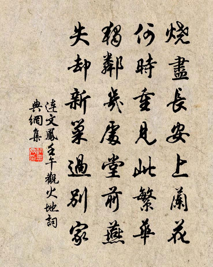 詩詞名句歷史字典書法欣賞書法字典國語詞典說文解字康熙字典古漢語字典標 題 作 者 詩 句 壬午觀火地作者:連文鳳 朝代:宋代壬午觀火地原文燒盡長安上蘭花,何時重見此繁華。獨鄰幾處堂前燕,失卻新巢過別家。詩詞問答問:壬午觀火地的作者是誰?答:連文鳳問:壬午觀火地寫於哪個朝代?答:宋代連文鳳壬午觀火地書法欣賞壬午觀火地書法作品詩詞推薦真珠花楊巽齋〔宋代〕累累花發映庭除,柳帶榆錢總不如。一任春風吹滿地,幽人步履自虛徐。徽宗皇帝讀閣支降御筆贊岳珂〔宋代〕昭回之秘天所示,風行雷歷動一世。獨持八柄昭馭貴,馭貴馭富抑共細。百年史牒記金匱,木腳東廊果何地。誰從郊祀慶成三首任希夷〔宋代〕紫壇熙事樂高張,天胙皇家福簡穰。六奏聲中來象物,萬燈明處望龍章。星珠月璧清宵麗,風馬雲車碧落翔。屢有寄鄠縣尉李廓少府姚合〔唐代〕歲滿休為吏,吟詩著白衣。愛山閒臥久,在世此心稀。聽鶴向風立,捕魚乘月歸。此君才不及,謬得侍彤闈。春遊朱繼芳〔宋代〕雨過青青草,湖邊信馬蹄。夕陽沙路遠,春水板橋低。柳暗漁人屋,花香燕子泥。摩挲酒家壁,留著醉時題。鷓鴣天 寄情李呂〔宋代〕臉上殘霞酒半消,晚妝勻罷卻無聊。金泥帳小教誰共?銀字笙寒懶更調。人悄悄,漏迢迢,瑣窗虛度可憐宵。一從和裴仲謨放兔行秦觀〔宋代〕兔飢食山林,兔渴飲川澤。與人不瑕玼,焉用苦求索。天寒草枯死,見窘何太迫。上有蒼鷹禍,下有黃犬厄。一死喜俞玉汝見過趙蕃〔宋代〕秋風起我友朋思,倚樹談君語未移。只道窮年上湖海,那知今日會茅茨。病多止酒家無釀,貧乏贏糧甑罕炊。作底江城子 寄廬副使處道張之翰〔元代〕去年雪裡送君時。馬遲遲。思依依。及至金陵,還卻值君歸。獨抱此情誰與語,空三復,草堂詩。年來霜鬢欲成絲送錢齊玥倅蘇州二首蔡肇〔宋代〕洞庭飛雨打湘弦,燕寢凝香思渺然。四者難並知我老,七言俱賦為君妍。雜花繞逕迎籃舉,春鳥喧洲起畫船。聞道送宣書記並寄其兄曇才二公陸游〔宋代〕在吳識曇公,至蜀識才公;彌天宣書記,晚乃得從容。是家固多賢,天遣慰我窮。初秋夏末時,衲子各西東。子獨宿遷道中遇雪陸文圭〔宋代〕登車宿遷北,萬頃鋪瓊田。墨雲淇水光,上下玻璃天。六花時時飄,集我車上氈。左右拍手笑,翁似日鶴仙。失卻送王山人游廬山皎然〔唐代〕千里訪靈奇,山資亦相隨。葉舟過鶴市,花漏宿龍池。峰頂應閒散,人間足別離。白雲將世事,吾見爾心知。蔣丞相得男帖贊岳珂〔宋代〕仕遭時,相真主。材之充,澤斯普。以端逸,御妍嫵。諒予言,法當取。浪淘沙(丁未生日)劉克莊〔宋代〕去歲詣公車。天語勤渠。絳紗玉斧照寒儒。恰似昔人曾夢到,帝所清都。骨相太清臞。謫墮須臾。今年黃敕換稱呼丹陽湖阻風二首王之道〔宋代〕水闊風還怒,舟輕浪更顛。雲容初過雨,湖勢欲吞天。沙觜青楓外,魚罾白鳥邊。夕陽應到岸,沉醉酒家眠。戊子正旦賀壽慈宮二首程珌〔宋代〕曙色浮丹栱,春風暖禁街。策瀾迷秀石,纖草蔭新槐。染絲上春機李賀〔唐代〕玉罌汲水桐花井,茜絲瀋水如雲影。美人懶態燕脂愁,春梭拋擲鳴高樓。彩線結茸背復疊,白袷玉郎寄桃葉。為君失題二首蘇軾〔宋代〕山行似覺鳥聲殊,漸近神仙簡寂居。門外長溪容淨足,山腰苦筍耿盤蔬。喬松定有藏丹處,大石仍存拜斗余。弟子送糟蟹遺制幕李曾伯〔宋代〕江鄉霜後飽珍餚,萬里持來僅帶糟。雖惜橫戈酣白蟻,尚知解甲護紅膏。開樽祗覺牽歸興,作賦猶當繼老饕。油幕名句推薦波光水鳥驚猶宿, 露冷流螢濕不飛。湯顯祖《江宿》 裊裊兮秋風,洞庭波兮木葉下。屈原《九歌·湘夫人》 頌其詩,讀其書,不知其人,可乎?是以論其世也。孟子《孟子·萬章章句下·第八節》 知者順時而謀,愚者逆理而動范曄《後漢書·列傳·朱馮虞鄭周列傳》 青天蜀道難,紅葉吳江冷。張可久《普天樂·秋懷》 小來思報國,不是愛封侯。岑參《送人赴安西》 日入室中暗,荊薪代明燭。陶淵明《歸園田居·其五》 取次花叢懶回顧,半緣修道半緣君。元稹《離思五首·其四》 飛絮濛濛。垂柳闌乾盡日風。歐陽修《採桑子·群芳過後西湖好》 山從人面起,雲傍馬頭生。李白《送友人入蜀》