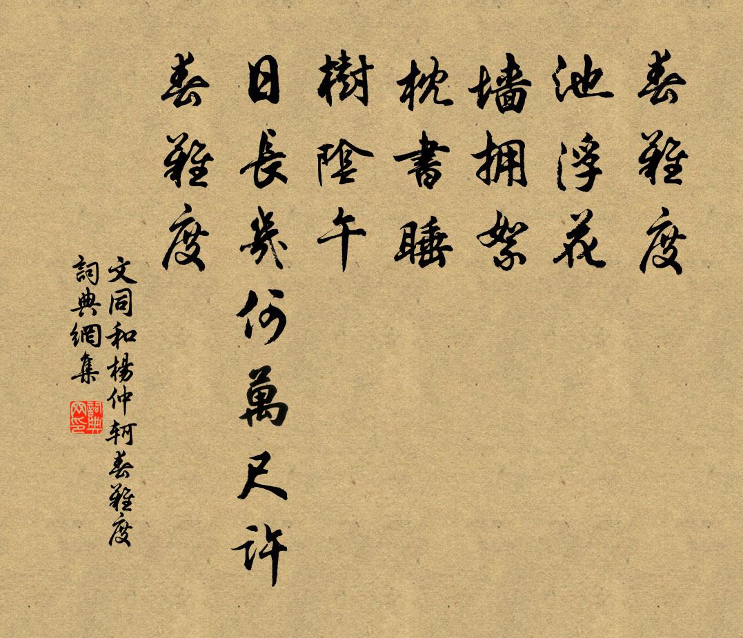詩詞名句歷史字典書法欣賞書法字典國語詞典說文解字康熙字典古漢語字典標 題 作 者 詩 句 和楊仲軻春難度作者:文同 朝代:宋代和楊仲軻春難度原文春難度。池浮花,牆擁絮。枕書睡,樹陰午。日長几何萬尺許。春難度。詩詞問答問:和楊仲軻春難度的作者是誰?答:文同問:和楊仲軻春難度寫於哪個朝代?答:宋代文同和楊仲軻春難度書法欣賞和楊仲軻春難度書法作品詩詞推薦胡同年恢信州弋陽簿宋祁〔宋代〕籠櫻沈醵宴,津鼓愴離群。道出東南水,心留西北雲。秫田供醖劑,練幅換書裙。熛闕方呼俊,歸來佇獻文。即事王炎〔宋代〕桑盡蠶皆繭,秧成麥已秋。山雲翻黑雨,溪樹沒黃流。紅粟方翔貴,蒼生未病瘳。茅茨煙不起,飽飯得無憂。元日海南試筆曾豐〔宋代〕南荒春較早,上朔日常暄。陡地風聲惡,連天海氣昏。夭桃與其媚,旨酒即之溫。摸索吾胸次,熙熙自一元。次韻四首寄德基兼呈侍郎公李處權〔宋代〕蒙塵天子尚戎衣,南國旌旗正伐鼙。國士傷時多刺怨,王官失路有悲啼。似聞叔向方圖晉,亦報夷吾未去齊。易地鄂王墓陳允平〔宋代〕鄂王墓在棲霞嶺,一片忠魂萬古存。鏡里赤心懸日月,劍邊英氣塞乾坤。蒼苔雨暗龍蛇壁,老樹煙凝虎豹旛。獨倚秋日郊居郭秉哲〔宋代〕一葉驚初下,煩襟喜復清。雲邊開岫色,風外送漲聲。菊引陶潛興,蓴牽張翰情。迎眸秋色遠,頓覺杖藜輕。暑雨後散策楊萬里〔宋代〕溪南稻紫似溪北,雨後山青非雨前。芒屨泥深涼不淺,今年六月個般天。句蔡襄〔宋代〕繡衣中使動輜車,黃紙封林遍阡陌。秋懷三十六首邵雍〔宋代〕九月氣乍肅,衰柳猶有蟬。霜外疏鍾斷,風余清籟傳。千山亂遠月,一鶚摩高天。自非出世人,而敢危行言。講稿公妓飲問政堂有誚予不來者借韻呈司戶同虞儔〔宋代〕幾日齋廚愧索然,信君高會拚金錢。邇來此樂城中少,況有今宵座上妍。連放酒杯浮瀲灩,須防更漏解催煎。閉門卜運算元陳三聘〔宋代〕澗下水聲寒,壑底松風靜。時有清香度竹來,步月尋疏影。往事屬東風,試問花應省。曾是花前把酒人,別夢溪堂吳興黃浦亭庾中郎別詩鮑照〔南北朝〕風起洲渚寒。雲上日無輝。連山眇煙霧。長波迥難依。旅鴈方南過。浮客未西歸。已經江海別。復與親眷違。奔景玉蝴蝶 村居姬翼〔元代〕*外地偏塵遠,結茅小隱,事事俱休。脫粟黃齏安分,足可優遊。月徘徊、昂簪緩步,風冷淡、懸涕慵收。且淹留藥名聯句皮日休〔唐代〕為待防風餅,須添薏苡杯。 ——張賁香然柏子後,尊泛菊花來。 ——皮日休石耳泉能洗,垣衣雨為裁。 ——句江砢〔宋代〕讀書三年丈,逢世四角輪。漁歌子·曉風清顧夐〔五代〕曉風清,幽沼綠,倚欄凝望珍禽浴。畫簾垂,翠屏曲,滿袖荷香馥郁。好攄懷,堪寓目,身閒心靜平生足。酒杯深蘇武慢虞集〔元代〕掃盡風雲,綽開塵土,落得半丘藏拙。青松為蓋,白石為床,一切物情休歇。幾度蓬萊,布袍長劍,閒對海波澄澈秋日野步和王覺民十六首王之道〔宋代〕雨晴庭戶生秋意,潮落溪橋見水痕。稻熟人家得相向,兵余眼底兩三村。水龍吟丘處機〔元代〕春興昊天空闊初晴,氣回萬物欣欣茂。亭台俯仰,山川高下,妝成錦繡。碧洞清泉,響聞迢遞,一聲長溜。更時時代鶴答白居易〔唐代〕鷹爪攫雞雞肋折,鶻拳蹴雁雁頭垂。何如斂翅水邊立,飛上雲松棲穩枝?名句推薦美人自古如名將,不許人間見白頭。袁枚《隨園詩話·卷四》 晚風收暑,小池塘荷淨。劉光祖《洞仙歌·荷花》 有美一人,清揚婉兮。佚名《野有蔓草》 近重陽、偏多風雨,絕憐此日暄明。姚雲文《紫萸香慢·近重陽》 編草結庵,不違涼暑。蕭子顯《南齊書·列傳·卷四十》 自有多情處,明月掛南樓。米芾《水調歌頭·中秋》 影孤憐夜永。永夜憐孤影。蘇軾《菩薩蠻·回文秋閨怨》 行人悵望蘇台柳,曾與吳王掃落花。姜夔《姑蘇懷古》 齊有倜儻生,魯連特高妙。李白《古風·齊有倜儻生》 粉色全無飢色加,豈知人世有榮華。杜荀鶴《蠶婦》