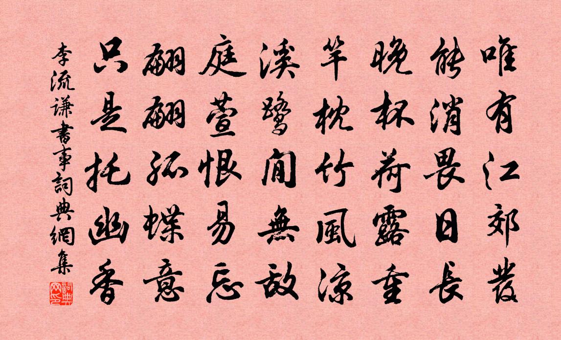 詩詞名句歷史字典書法欣賞書法字典國語詞典說文解字康熙字典古漢語字典標 題 作 者 詩 句 書事作者:李流謙 朝代:宋代書事原文唯有江郊發,能消畏日長。晚杯荷露重,竿枕竹風涼。溪鷺閒無敵,庭萱恨易忘。翩翩孤蝶意,只是托幽香。詩詞問答問:書事的作者是誰?答:李流謙問:書事寫於哪個朝代?答:宋代李流謙書事書法欣賞書事書法作品詩詞推薦又次韻醵飲周必大〔宋代〕層軒發天藏,初日照粉雘。雄觀跨鵬背,煩促陋蠶箔。飛綏會蘭亭,傳觴寫桑落。飲興江海窄,逸氣雲天薄。雖無仲良見和再和謝焉四首楊萬里〔宋代〕誰謂陳三遠?髯張下筆親。夫何此意合,恐有宿生因。我豈慵開眼,年來寡見人。更煩雕好句,割取楚江春。競舟元稹〔唐代〕楚俗不愛力,費力為競舟。買舟俟一競,競斂貧者賕。年年四五月,繭實麥小秋。積水堰堤壞,拔秧蒲稗稠。此時雨中不出呈斯遠兼示成父四首趙蕃〔宋代〕歲事今無幾,來歸略未安。若為佳抱發,賴有好詩看。剩欲江村訪,卻遭天氣寒。雪猶思剡曲,雨亦過蘇端。梅花陳景沂〔宋代〕平生足跡遍天下,正一東嘉卻弗來。行到劉山無所寄,謾留冷句伴江梅。鳳凰台馬之純〔宋代〕鳳凰不見只寬台,底事台存鳳不來。應到緱山還且住,定游阿閣不能回。江山不改當時舊,賓客何妨盡日陪。待作送馬向入蜀徐凝〔唐代〕遊子出鹹京,巴山萬里程。白雲連鳥道,青壁遰猿聲。雨雪經泥坂,煙花望錦城。工文人共許,應紀蜀中行。送王司馬秩滿西歸劉長卿〔唐代〕漢主何時放逐臣,江邊幾度送歸人。同官歲歲先辭滿,唯有青山伴老身。偈七首釋法泰〔宋代〕火雲燒田苗,泉源絕流注。婆竭大龍王,不知在何處。泊舟張嵲〔宋代〕夜光沉千嶺,寒星動一川。汀沙霜似雪,寂寂系江船。逍遙詠宋太宗〔宋代〕大道虛無境,信之則有靈。幽深玄妙理,運轉幾曾停。拘束從何益,周通靜杳冥。真空非作相,善應保全寧。十月初三日追記丙子歲以此日風尋中度平坑嶺舒岳祥〔宋代〕歲窮常鮮裕,人老更多悲。白日無閒客,青山有了時。乾坤馬跡滿,風雨鶴巢危。去歲來坑嶺,移家度險巘。觀書宋祁〔宋代〕隱几窮千古,披經究萬殊。扶疏曾答客,涉獵恥成儒。次韻趙景明初見梅花喻良能〔宋代〕不解何郎五字詩,年年長是探梅遲。未甘辜負春訊息,強擬來看竹外枝。答杜仲觀登叢台見寄賀鑄〔宋代〕高風盪河漢,白露被寒菊。下有絡緯蟲,悽酸生意促。華年不相待,去我何流速。老步失騰驤,短轅甘局蹙。伊人嘆世之二唐寅〔明代〕萬事由天莫強求,何須苦苦用機謀?飽三餐飯常知足,得一帆風便可收。生事事生何日了,害人人害幾時休。冤家晝臥口占三首張耒〔宋代〕學道窮年要有得,強顏乾世欲何求。病栽薏苡無勞謗,濕要鞠藭不待搜。贈庾侍御司空曙〔唐代〕年少身無累,相逢憶此時。雪過雲寺宿,酒向竹園期。白髮今催老,清琴但起悲。唯應逐宗炳,內學願為師。別後寄趙賓暘並楊華父二首方回〔宋代〕虛翁眼暗魯翁聾,聚散匆匆老病蹤。近已有人傳我死,何期此地與君逢。兩窮未必時流識,一笑猶為造物容。自覺夜上隱居寺唐求〔唐代〕尋師擬學空,空住虎溪東。千里照山月,一枝驚鶴風。年如流去水,山似轉來蓬。盡日都無事,安禪石窟中。名句推薦窮巷多怪,曲學多辯。商鞅《商君書·更法》 回首昭陽辭落日,傷心銅雀迎秋月文天祥《滿江紅·代王夫人作》 逢郎欲語低頭笑,碧玉搔頭落水中。白居易《採蓮曲》 正是江南好風景,落花時節又逢君。杜甫《江南逢李龜年》 行到小溪深處,有黃鸝千百。秦觀《好事近·夢中作》 世人解聽不解賞,長飆風中自來往。李頎《聽安萬善吹觱篥歌》 羈心積秋晨,晨積展游眺。謝靈運《七里瀨》 十年驅馳海色寒,孤臣於此望宸鑾。戚繼光《望闕台》 爐火照天地,紅星亂紫煙。李白《秋浦歌十七首》 無父無君,是禽獸也。孟子《孟子·滕文公章句下·第九節》