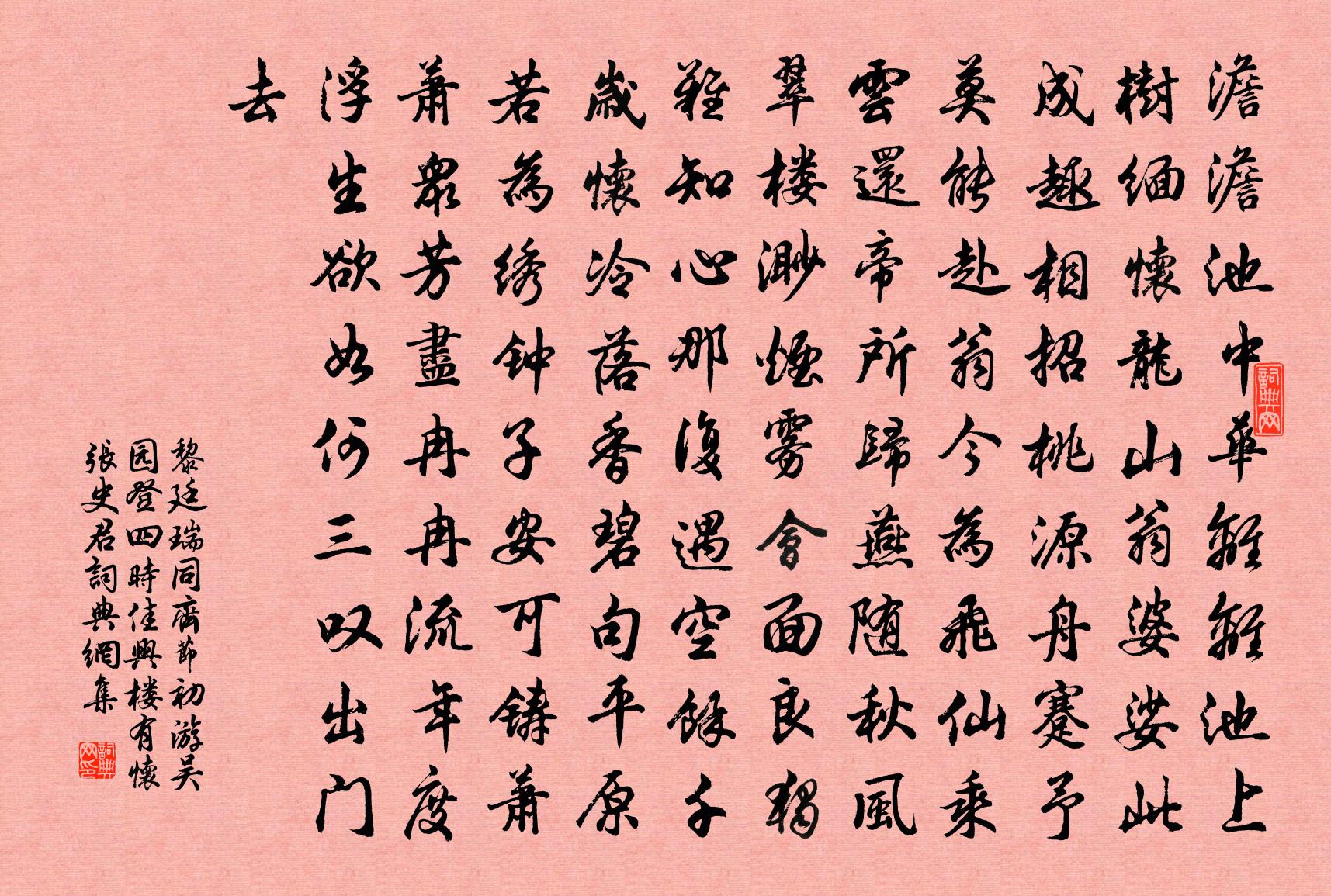 詩詞名句歷史字典書法欣賞書法字典國語詞典說文解字康熙字典古漢語字典標 題 作 者 詩 句 同齊節初游吳園登四時佳興樓有懷張史君作者:黎廷瑞 朝代:宋代原文澹澹池中華,離離池上樹。緬懷龍山翁,婆娑此成趣。相招桃源舟,蹇予莫能赴。翁今為飛仙,乘雲還帝所。歸燕隨秋風,翠樓渺煙霧。會面良獨難,知心那復遇。空餘千歲懷,冷落香碧句。平原若為繡,鍾子安可鑄。蕭蕭眾芳盡,冉冉流年度。浮生欲如何,三嘆出門去。詩詞問答問:《同齊節初游吳園登四時佳興樓有懷張史君》的作者是誰?答:黎廷瑞問:該詩寫於哪個朝代?答:宋代書法欣賞同齊節初游吳園登四時佳興樓有懷張史君書法作品詩詞推薦追懷甲戌清明宇文信仲知郡大卿同尤張二倅過方回〔宋代〕甲戌清明鬢未翁,邦君過我小園中。牡丹初喜開千朵,劫火何知村一空。展轉干戈春夢斷,淒涼風雨客途窮。九原賢者之孝二百四十首周紹林同〔宋代〕欲得忠臣者,求之孝子門。如何傅王子,尚復待人言。悟空塔釋贊寧〔宋代〕浮圖蕭瑟入虛空,一聚全身罔像中。傳馬祖心開佛印,識龍潛主示神通。毫光委墜江樓月,道氣馨香海岸風。此地題洞虛觀釋仲殊〔宋代〕古觀多松檜,幽奇近暮秋。坐看新月上,閒看斷雲愁。野思同花鳥,鄉情隔島洲。輕寒披鶴氅,隱几彼搔頭。金蓮繞鳳樓趙佶〔宋代〕絳燭朱籠相隨映。馳繡轂、塵清香襯。萬金光射龍軒瑩。繞端門、瑞雷輕振。元宵為開聖景。嚴敷坐、觀燈錫慶。寄懷三首李覯〔宋代〕根生但為松,翼飛但為鳳。王侯尚可輕,道義本來重。癡兒似婢妾,寸步矜恩寵。傍人忍笑時,佯把衣祛弄。久雨阻西郊之游黃公度〔宋代〕忽忽春將半,冥冥雨未休。過從喧屐齒,追賞負觥籌。詩句那排悶,鶯聲巧喚愁。晴郊饒勝概,何日許同游。和趙光遠題壁楊萊兒〔唐代〕長者車塵每到門,長卿非慕卓王孫。定知羽翼難隨鳳,卻喜波濤未化鯤。嬌別翠鈿黏去袂,醉歌金雀碎殘尊。多情和十二兄五首晃沖之〔宋代〕淵明詩百篇,無一不說酒。四顧宇宙間,獨與此物厚。子云苦家貧,日給或亡有。艱難識奇字,草玄至白首。時時辰光門李蟠〔宋代〕北林蒼翠拱岩闉,中起紅樓迥照人。四面山河千古在,百年城市一朝新。夜深燈火明沙路,秋冷笙歌擁畫輪。莫訝聞剡人望回陳著〔宋代〕跋涉山程往又還,老懷不是愛游山。為聞父老勤相送,立滿溪頭幾日閒。正肅吳公輓辭三首王安石〔宋代〕從容邊塞議,慷慨廟堂爭。曲突非無驗,方穿有不行。搢紳終倚賴,贈襚極哀榮。豈慕公孫貴,平生學董生。謁金門趙師俠〔宋代〕風雨半。春鎖綠楊深院。幕浪不翻香穗卷。輕寒閒便面。歸興新來不淺。勾引閒愁撩亂。一枕春酲誰與管。曉鶯驚山中五絕句。澗中魚白居易〔唐代〕海水桑田欲變時,風濤翻覆沸天池。鯨吞蛟斗波成血,深澗游魚樂不知。幽成四景窗月張玉孃〔宋代〕山月流素暉,小窗絕囂鄉。四壁寂無聲,合座生靈爽。偈頌一百零四首釋紹曇〔宋代〕丈夫膝下有黃金,爭肯與他人作禮。須彌燈王,腳頭腳底。奉陪渾侍中上巳日泛渭河盧綸〔唐代〕青舸錦帆開,浮天接上台。晚鶯和玉笛,春浪動金罍。舟楫方朝海,鯨鯢自曝腮。應憐似萍者,空逐榜人回。六月八日夜步西湖即事王志道〔宋代〕步繞西湖路,荷盤送晚香。歸舟初裊纜,斜月已侵廊。水外鐘聲杳,風膠曲韻長。剨然思遠舉,逸興渺難量。盧甥申之自吳門寄顏樂間畫箋樓鑰〔宋代〕年來吳門箋,色澤勝西蜀。春膏最宜書,葉葉瑩栗玉。賢甥更好奇,惠我小畫幅。開緘粲殷紅,展玩光溢目。巧隨晚歸府白居易〔唐代〕晚從履道來歸府,街路雖長尹不嫌。馬上涼於床上坐,綠槐風透紫蕉衫。名句推薦不可同日而語畢沅《續資治通鑑·宋紀·宋紀七十三》 圓魄上寒空,皆言四海同。李嶠《中秋月二首·其二》 數州訊息斷,愁坐正書空。杜甫《對雪》 足國之道:節用裕民,而善臧其餘。荀子《荀子·富國》 孤山寺北賈亭西,水面初平雲腳低。白居易《錢塘湖春行》 今日暫同芳菊酒,明朝應作斷蓬飛。王之渙《九日送別》 觀棋不語真君子,把酒多言是小人。馮夢龍《醒世恆言·卷九》 人有短,切莫揭。人有私,切莫說。李毓秀《弟子規·泛愛眾》 三更月。中庭恰照梨花雪。賀鑄《子夜歌·三更月》 寂寞尊前席上,唯愁海角天涯。李清照《轉調滿庭芳·芳草池塘》