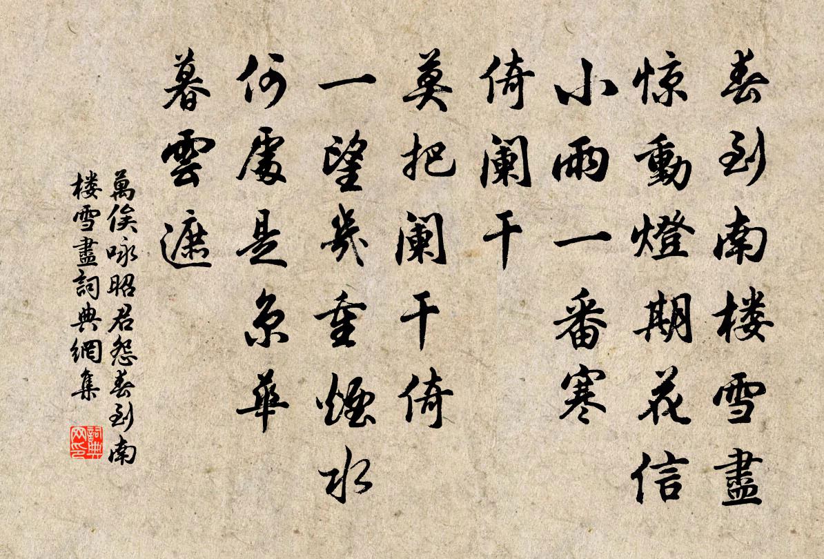三、四兩句,寫倚“南樓”之欄乾,承上“燈期花信”而來,詞意有所轉折。獨倚欄乾之人,必不游眾之中,而這一番寒意,是因為剛下過的一場小雨,還是因為客心悲涼的緣故,亦是斷難分辨。