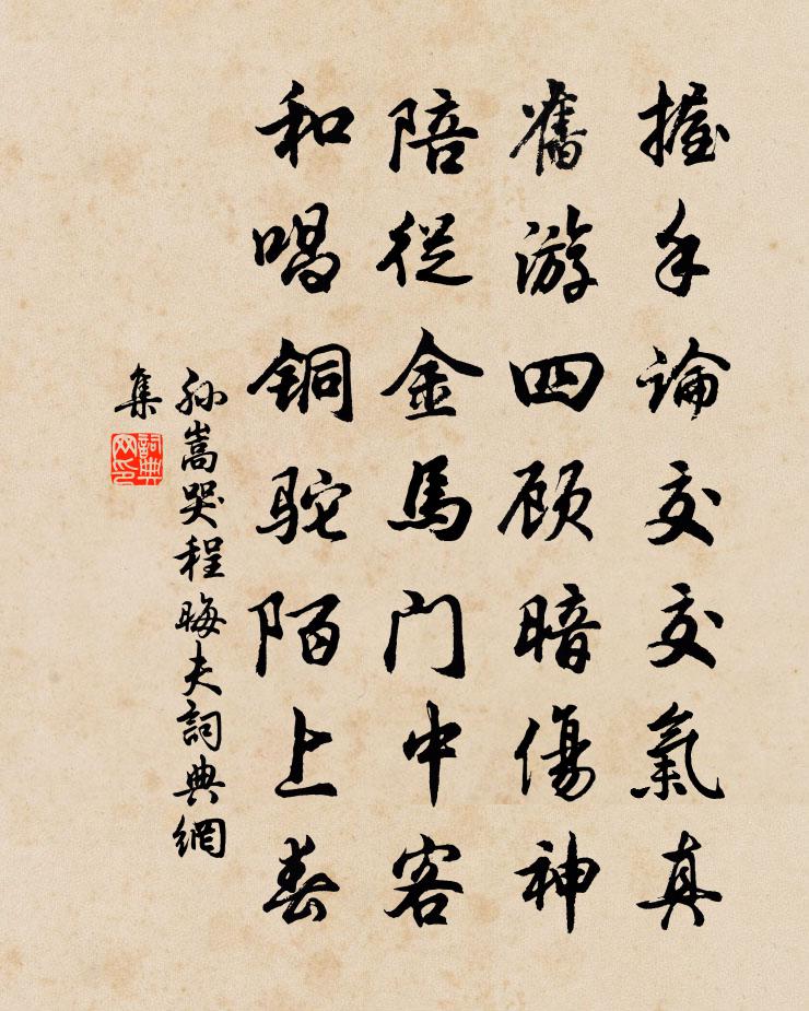 詩詞名句歷史字典書法欣賞書法字典國語詞典說文解字康熙字典古漢語字典標 題 作 者 詩 句 哭程晦夫作者:孫嵩 朝代:宋代哭程晦夫原文握手論交交氣真,舊遊四顧暗傷神。陪從金馬門中客,和唱銅駝陌上春。詩詞問答問:哭程晦夫的作者是誰?答:孫嵩問:哭程晦夫寫於哪個朝代?答:宋代孫嵩哭程晦夫書法欣賞哭程晦夫書法作品詩詞推薦依韻和師厚別後寄梅堯臣〔宋代〕吾與爾別未及旬,吾家依舊甑生塵。閉門不出將誰親,自持介獨輕貨珍。盤餐豈有鹹酸辛,苦吟輟寢昏繼晨。夜光擬古蘇籀〔宋代〕六州齋榻釂分鵝,誰料延平最解歌。蒲孤崔姝白樓少,闔閭吳館治容多。頻煩畫戟凝薌寢,輟選鸞篦插皂羅。勿俾畏虎徐照〔宋代〕侯門無羆虎,進者何趑趄。主人畏客來,有甚虎與羆。彼此情不安,逢迎反憂悲。我愛由上翁,面有無求姿。不怨言志宋祁〔宋代〕志豈觀非聖,才猶恥壯夫。窮愁五經笥,感慨八騶呼。昔隱思投耒,今行誓裂繻。莫邪方有請,誰為鼓洪爐。道一大尹存之學士庭美學士簡於聖明杜牧〔唐代〕自致交友霄漢皆與交友舍弟昔年交友還往牧支離窮悴竊於一麾交友美歌詩兼自言志因成長句四韻呈上三君子九金神中秋夕無月前兩夕皆明陳宓〔宋代〕四時丹桂年年好,萬歲青娥個個妍。但看世人生與老,不愁玉兔缺仍圓。攻侵屬國雪中節,巧趁鴟夷煙際船。我把庚申上巳陳傅良〔宋代〕何事□□□,天低雨露慳。一□遺晚□,百感又春關。墨客山陰竹,騷人洧外蘭。誰知千古意,不在□游間。仁宗皇帝輓詞七首蔡襄〔宋代〕儉勤追禹績,恭讓體堯仁。措枉朝多直,除苛吏盡循。遵儒恩禮異,左戚賞刑均。立子知天意,超然即上賓。臨江仙葛勝仲〔宋代〕檻外奇葩江外種,嬌春未減酲紅。畫樓晴日斂雲峰。佛香來海岸,蜀錦薦燈籠。今夜那憂殺風景,酒花來斗妖濃。偈頌七十六首釋師觀〔宋代〕本無迷悟人,只要今日了。了了了了了,面南看北斗。古樟書堂項安世〔宋代〕問訊書堂士,門前有古樟。植根深入地,盤勢闊連罔。霧合琴書潤,風來碩席涼。試賡雲下曲,餘韻繞琳琅。貽崔太祝儲光羲〔唐代〕天都分禮閣,肅肅臨清渠。春山照前屏,高槐蔭內除。惟賢尚廩祿,弟去兄來居。文雅更驤首,風流信有餘。中年摸魚兒·記年時人人何何夢桂〔宋代〕記年時、人人何處,長亭曾共尊酒。酒闌歸去行人遠,折不盡長亭柳。漸白首。待把酒送君,恰又清明後。青條似漢江岸二首陳造〔宋代〕一自陽侯戰雨師,棗畦桑隴但空陂。此君屹立如尊勇,依舊青青似昔時。昭君辭薛道衡〔隋代〕我本良家子。充選入椒庭。不蒙女史進。更失畫師情。蛾眉非本質。蟬鬢改真形。專由妾命薄。誤使君恩輕。啼沾升山即事方士繇〔宋代〕一徑西風裡,閒房客未歸。砌苔侵野屐,林葉上秋衣。黃卷經心懶,青綸入夢稀。還書報妻子,莫厭故山薇。故洛陽城李郢〔唐代〕胡兵一動朔方塵,不使鑾輿此重巡。清洛但流嗚咽水,上陽深鎖寂寥春。雲收少室初晴雨,柳拂中橋晚渡津。欲問過許由冢黃庶〔宋代〕稷契寧渴死,不飲箕潁泉。先生獨洗耳,不聽天子言。清風飽進退,千載何悠然。孤墳沒荊棘,高名爭青山。嗟我送曾尚右知信州分韻得州字魏了翁〔宋代〕長安十二門,冠蓋如雲稠。浮驂不停趨,九衢滔滔流。朝握扶桑轡,暮行背椒丘。駕言入從之,道左傷吾輈。溫陵次韻奉答廖袁州懷舊隱之詩黃庭堅〔宋代〕詩題怨鶴與驚猿,一幅溪藤照麝煙。聞道省郎方結綬,可容名士乞歸田。嚴安召見天嗟晚,賈誼歸來席更前。何況名句推薦黃河西來決崑崙,咆哮萬里觸龍門。李白《公無渡河》 誰問旗亭,美酒斗十千。賀鑄《行路難·縛虎手》 日日雨不斷,愁殺望山人。賈島《望山》 林花著雨胭脂濕,水荇牽風翠帶長。杜甫《曲江對雨》 不可以身相得見如來。鳩摩羅什譯《金剛經·如理實見》 此中有真意,欲辨已忘言。陶淵明《飲酒·其五》 治國有常,而利民為本;政教有經,而令行為上。劉安及其門客《淮南子·汜論訓》 晚食以當肉,安步以當車劉向《戰國策·齊四·齊宣王見顏斶》 明妃一朝西入胡,胡中美女多羞死。李白《于闐採花》 漢家天子今神武,不肯和親歸去來。王之渙《涼州詞二首》