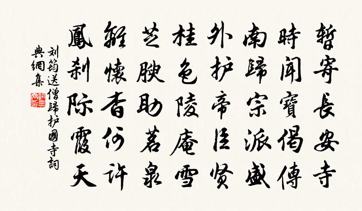 詩詞名句歷史字典書法欣賞書法字典國語詞典說文解字康熙字典古漢語字典標 題 作 者 詩 句 送僧歸護國寺作者:劉筠 朝代:宋代送僧歸護國寺原文暫寄長安寺,時聞寶偈傳。南歸宗派盛,外護帝臣賢。桂色陵庵雪,芝腴助茗泉。離懷杳何許,鳳剎際霞天。詩詞問答問:送僧歸護國寺的作者是誰?答:劉筠問:送僧歸護國寺寫於哪個朝代?答:宋代劉筠送僧歸護國寺書法欣賞送僧歸護國寺書法作品詩詞推薦題東坡先生惠州定惠院海棠詩後趙子昂畫像並方回〔宋代〕五季乾坤混為一,艱難得之容易失。一拳槌碎四百州,新法宰相王安石。二蘇中尤惡大蘇,周二程張俱不識。紹聖送吳待制中復知潭州二首蘇洵〔宋代〕台省留身凡幾歲,江湖得郡喜今行。臥聽曉鼓朝眠穩,行入淮流鄉味生。細雨滿村蓴菜長,高風吹旆彩船獰。到家奉酬韋蘇州使君丘丹〔唐代〕久作煙霞侶,暫將簪組親。還同褚伯玉,入館忝州人。對食書媿陸游〔宋代〕連年寬水旱,天若相懸車。麤有芋魁豆,並忘熊掌魚。先生飯不足,賢者食無餘。老我知何幸,晨盤厭美蔬。永嘉周道人求詩一首蘇籀〔宋代〕氣升期汗漫,世法一黔婁。啟鑰因師旨,咀芝從祖求。肆言諧律呂,不夢本精修。王室金堂邇,飄飄竹杖游。和張憲登烏尤山吳泳〔宋代〕世塗偪仄動逢尤,山似高人色頗驕。寸碧亭亭還綠繞,知音不待爨桐焦。枕上晁說之〔宋代〕人間百感未能休,欲語無情謾九州。樓上角聲山上月,共人割據一端愁。送趙虞部士宏知蜀州梅堯臣〔宋代〕春風跨臘至,雪作蝴蝶飛。偏知蜀太守,撩亂撲行衣。何當海棠下,歌管紅袖圍。一飲一斗酒,決訟如發機。洛陽內人斜二首張嵲〔宋代〕山色依依水自流,內人斜畔最堪愁。荒榛蔓草縈寒骨,更有何人吊杜秋。游雷峰塔處晦上人求詩陳淳〔宋代〕擺脫人間名利韁,湖山深處事韜藏。要知晦里真訊息,養取靈台一點光。句杜抑之〔宋代〕雷霆真自地中出,河漢莫從天上翻。園中雜書四首張鎡〔宋代〕木芙蓉繞岸傍栽,水芙蓉滿池內開。池畔忽生尋丈葉,引花穿岸入叢來。江上釋紹嵩〔宋代〕春岸波平汀草深,江雲黯黯作愁陰。詩材眼界知多少,欲罷不能聊一吟。題畫雲山團扇張鎡〔宋代〕若個大圓鏡,處處山河影。誰謂懶拙翁,而能作斯景。繄予說是語,未免臚窺井。若解目前機,水應言不領。上蔡傅若金〔元代〕上蔡城頭黃葉多,聞雞看劍起長歌。徒憐丞相東門犬,猶憶將軍半夜鵝。樹底衣裳沾霧雨,馬前燈火動星河。涼風和天啟畫古木山石詩張耒〔宋代〕有待雲雨在,無傷斤斧余。將軍漫弓箭,居士或眉須。缺記共工怒,深資夸父腴。攀條感衰變,恨汝亦非夫。和明上人見贈王銍〔宋代〕西湖梅蕊暗香浮,錫杖凌空過沃洲。後會重尋人更老,頹光不駐水爭流。夕陽天際青山出,暝色煙中白鳥留。此境懷新亭四首張嵲〔宋代〕遠意在田疇,中園結茅屋。凍雨昨夜來,共欣春水足。沁園春(次韻劉改之)陳著〔宋代〕人生功名,在醉夢中,早須掉頭。自南宮一券,塵泥偶脫,前程雙轂,日月如流。蕙帳真盟,菜羹餘味,江上歸舟送周元吉顯謨左司將漕湖北三首楊萬里〔宋代〕君詩日日說歸休,忽解西風一葉舟。黃鶴樓前作重九,水精宮裡過中秋。職親六閣仍金馬,喜入千屯看木牛。繡斧名句推薦煙霏雲斂;其容清明,天高日晶;歐陽修《秋聲賦》 當時父母念,今日爾應知。白居易《燕詩示劉叟》 四時有不謝之花,八節有長青之草。李汝珍《鏡花緣·第一回》 水漲魚天拍柳橋。雲鳩拖雨過江皋。周邦彥《浣溪沙·水漲魚天拍柳橋》 君子之澤五世而斬孟子《孟子·離婁章句下·第二十二節》 居家戒爭訟,訟則終凶;處世戒多言,言多必失。朱柏廬《朱子家訓·全文》 門外平橋連柳堤,歸來晚樹黃鶯啼。溫庭筠《春洲曲》 丹楓萬葉碧雲邊,黃花千點幽岩下。張掄《踏莎行·秋入雲山》 非懷北歸興,何用勝羈愁韓愈《洞庭湖阻風贈張十一署·時自陽山徙掾江陵》 日中則昃,月盈則食佚名《易傳·彖傳下·豐》