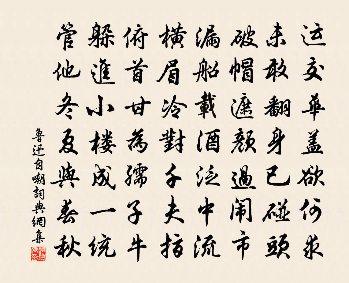 破帽遮顏過鬧市,漏船載酒泛中流。
