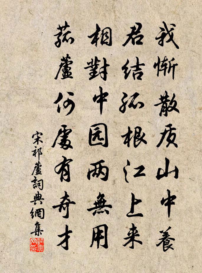 詩詞名句歷史字典書法欣賞書法字典國語詞典說文解字康熙字典古漢語字典標 題 作 者 詩 句 蘆作者:宋祁 朝代:宋代蘆原文我慚散質山中養,君結孤根江上來。相對中園兩無用,菰蘆何處有奇才。詩詞問答問:蘆的作者是誰?答:宋祁問:蘆寫於哪個朝代?答:宋代問:宋祁的名句有哪些?答:宋祁名句大全宋祁蘆書法欣賞蘆書法作品詩詞推薦蘭陵王 臨川寓舍聞箏張翥〔元代〕晚風惡。牆外楊花正落。鞦韆罷、人在瑣窗,猶 * 下簾幕。多情倦繡作。恰了棠梨半萼。移金雁、應是自調,挽刑邦用孫應時〔宋代〕有美天姿粹具真,溫溫玉樹氣生春。從來孝友聞鄉曲,嘆息如公有幾人。慈竹黃公度〔宋代〕慈竹陰初合,新梢翠欲流。晚搖千尺影,冷撼一堂秋。筍迸苔痕拆,葉蒙山色幽。鳳凰棲息穩,端為此君留。憶越州張士遜〔宋代〕平湖八百里多奇,君曾縱賞無餘遺。不知風月誰為主,夷猶未必如當時。偶成楊簡〔宋代〕桃紅柳綠簇春華,燕語鶯啼盡日佳。誰信聲聲沂水詠,又知處處杏壇家。偈頌六十八首釋法薰〔宋代〕巴陵三轉語,鈍置老僧門。靈山無半句,報盡破庵恩。慶塗權尉三首陳元晉〔宋代〕歲月遒於赴壑蛇,功名政要及年華。平淮猶自須裴度,釣渭那能老子牙。舞袖巧縣嫌地褊,酒杯相屬記天涯。期君新竹劉兼〔唐代〕近窗臥砌兩三叢,佐靜添幽別有功。影鏤碎金初透月,聲敲寒玉乍搖風。無憑費叟煙波碧,莫信湘妃淚點紅。自是疇依王柏〔宋代〕賢哉顏子,好學獨稱。既竭吾才,欲罷不能。不貳不遷,庶乎亞聖。一簞一瓢,不幸短命。賀黃少府受辟釋紹嵩〔宋代〕天下無雙雙井黃,妙齡聯轡戰文場。東南一尉癯負外,請試君方肘後方。詠智門佛殿前凌霄花與斯遠同作趙蕃〔宋代〕桂栽初得地,藤附亦凌霄。層葉圓如葆,高花艷若燒。故能開續續,殊愈落飄飄。有木方思種,從僧會乞苗。村居即事林尚仁〔宋代〕外事少曾聞,深居似隱君。溪明花照影,風細水行文。蠶室寒初閉,蜂房早已分。偶因尋藥去,踏破一村雲。秋涼晚步楊萬里〔宋代〕秋氣堪悲未必然,輕寒政是可人天。綠池落盡紅蕖卻,荷葉猶開最小錢。夜發散關文同〔宋代〕風吹古關口,萬木響如裂。淒涼異鄉客,騎馬關下月。板道霜鑿鑿,石樑溪咽咽。怪來曉寒重,御愛山頭雪。別玉華仙侶張祜〔唐代〕繞舍煙霞為四鄰,寒泉白石日相親。塵機不盡住不得,珍重玉山山上人。挽恭靖司法兄九首劉宰〔宋代〕日晏炊煙冷屋山,典書糴米奉慈顏。祗今童稚便安養,一飽誰知有許艱。次韻徐秀才十首陳造〔宋代〕霄霏上冥鴻,山霧臥文豹。餓鴟嚇腐鼠,啄啄詫飛趠。吾徒為己學,欣慼置不校。小草或遠志,詭遇乃近效。爽約鄭文寶〔宋代〕吟繞虛廊更向闌,繡窗燈影背欄乾。燕棲鶯宿無人語,一夜蕭蕭細雨寒。雪李洪〔宋代〕朔風動地似奔雷,瑞雪飛飛偏九垓。玉局盡疑從地涌,銀台空訝倚天開。西經佛國千峰外,北過天山萬里來。夸賦冒雪馬上作宋祁〔宋代〕大雪浹天畿,晨驂望禁扉。二儀連皓氣,萬物共清輝。樓迥標銀闕,台寒壓粉圍。瑞花真有意,偏著入朝衣。名句推薦記得那年花下,深夜,初識謝娘時。韋莊《荷葉杯·記得那年花下》 一庭春色惱人來,滿地落花紅幾片。魏承班《玉樓春·寂寂畫堂樑上燕》 借問酒家何處有?牧童遙指杏花村。杜牧《清明》 夢回芳草思依依,天遠雁聲稀。李煜《喜遷鶯·曉月墜》 黃鶴一去不復返,白雲千載空悠悠。崔顥《黃鶴樓 / 登黃鶴樓》 從此信音稀,嶺南無雁飛。李師中《菩薩蠻·子規啼破城樓月》 君子以儉德辟難,不可榮以祿。佚名《易傳·象傳上·否》 青青子衿,悠悠我心。佚名《子衿》 迸籜分苦節,輕筠抱虛心。柳宗元《巽公院五詠·苦竹橋》 雲盡月如練,水涼風似秋。歐陽詹《荊南夏夜水樓懷昭丘直上人云夢李莘》
