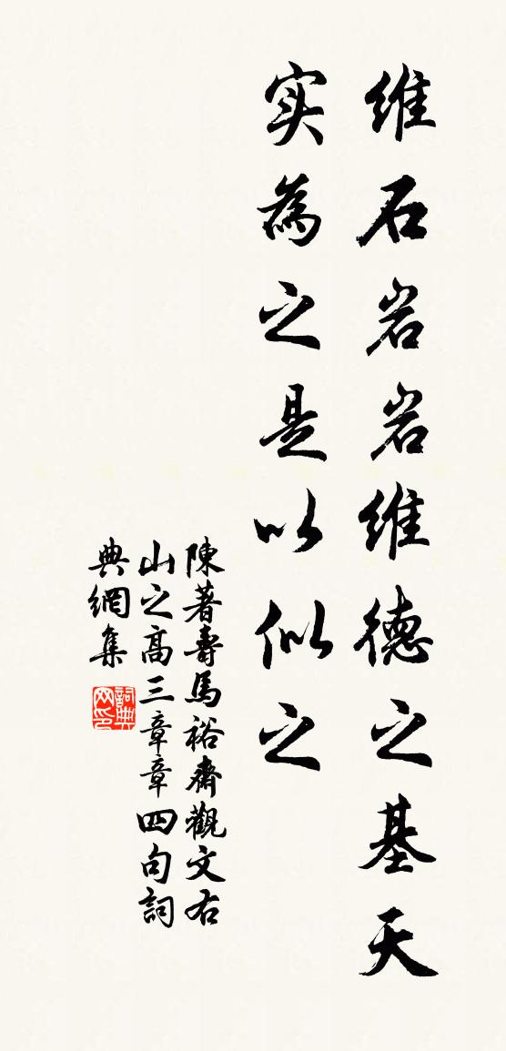 詩詞名句歷史字典書法欣賞書法字典國語詞典說文解字康熙字典古漢語字典標 題 作 者 詩 句 壽馬裕齋觀文右山之高,三章,章四句作者:陳著 朝代:宋代原文維石岩岩,維德之基。天實為之,是以似之。詩詞問答問:《壽馬裕齋觀文右山之高,三章,章四句》的作者是誰?答:陳著問:該詩寫於哪個朝代?答:宋代書法欣賞壽馬裕齋觀文右山之高,三章,章四句書法作品詩詞推薦贈明脈蕭信叔文天祥〔宋代〕枚乘擅七發,郭玉明四難。微言起沈痼,此道今漫漫。云何東海生,而乃緒真要。砉然以神遇,契彼鏡經妙。我欲西夏重陽王遜〔明代〕作縣幾時同志苦,投荒萬里倍情真。功名炊黍尋常夢,怪事書空感激人。擊柝徒吟胡地月,屯田也食漢渠春。艱難九日葛紹體〔宋代〕不管西風吹帽紗,出門閒步夕陽斜。平湖水落蒼黃處,一段風煙蘆荻花。聲聲慢張樞密〔宋代〕星冠懶帶,鶴氅慵披,色心頓起蘭房。離了三清歸去,作個新郎。良宵自有佳景,更燒甚、清香德香。瑤台上,便與兒輩泛舟游西湖一日間晴陰屢易陸游〔宋代〕逢著園林即款扉,酌泉鬻筍欲忘歸。楊花正與人爭路,鳩語還催雨點衣。古寺題名那復在,後生識面自應稀。傷心貴溪簡李商叟方元直趙蕃〔宋代〕李侯佳句似陰鏗,早向茶山識贛曾。滌器寧同長卿逸,閉門不學玉川憎。平居尚憶尋君去,南廟應還訪我能。詩卷扇子詩李石〔宋代〕師資為學之規,朋友為學之勸。說與潤屋千金,何似傳家萬卷。自賦大隱鄧深〔宋代〕柴門雖設日常關,只有琴書几案間。屋宇無多聊近市,塵埃不到即深山。悠悠世事非吾事,往往雲閒是我閒。出處別錢筠甫三首張耒〔宋代〕原頭綠盡柳初芟,落月滿川風滿衫。已過寺西三十里,為君回首駐征銜。雨夜宿龍門曉登靈光台禮佛眼塔釋正覺〔宋代〕一躍龍門適舊懷,稜稜浪級向人開。洗塵雲陣澆華雨,借力天衢破蟄雷。略彴駕溪桃水滿,浮屠瘞骨玉山頹。欲知偈豐禪師〔宋代〕駿馬機前異,遊人肘後懸。既參雲外客,試為老僧看。春晚同應之偶至普明寺小飲作歐陽修〔宋代〕偶來林下逕,共酌竹間亭。積雨添方沼,殘花點綠萍。野陰侵席潤,芳氣襲人醒。禽鳥休驚顧,都忘兀爾形。夏夜范成大〔宋代〕脈脈惜佳夜,泠泠成浩歌。儻無詩句子,將奈月明何!露氣蒙花重,風聲入樹多。清歡殊未辦,桂影墮江波。物貴日甚高斯得〔宋代〕自從為關以為暴,物價何止相倍蓰。人生衣食為大命,今已勦絕無餘遺。真珠作襦錦作褲,白玉為飯金為糜。蒼天自湯還都經龍門北溪,贈張左丞崔禮部崔光祿韋嗣立〔唐代〕棲閒有愚谷,好事枉朝軒。樹接前驅擁,岩傳後騎喧。褰簾出野院,植杖候柴門。既拂林下席,仍攜池上樽。深期寄無錫諸蔣朱翌〔宋代〕夜帆起奔牛,烏竿鳴五兩。百年幾寒暑,兩歲五來往。竟不到惠山,閒日真難亭。聞道山中泉,煮茗蒙珍賞。當年張柬之徐鈞〔宋代〕八十衰翁氣尚存,揮戈一整舊乾坤。惜哉千載多遺恨,餘燼猶存竟燎原。冬夜讀几案間雜書得六言二十首劉克莊〔宋代〕人言美惡必復,孰若親冤兩忘。僧乃謗第二祖,佛不嗔歌利王。雪李洞〔唐代〕迢迢來極塞,連闕謂風吹。禪客呵金錫,征人擘凍旗。細填蟲穴滿,重壓鶴巢欹。有影晴飄野,無聲夜落池。正繁挽王夫人吳泳〔宋代〕婉娩嫻詩畫,僮僮被典章。有齊先祭潔,薄汗展衣香。唁衛心雖切,傷周義不忘。勉哉君子正,彤管尚遺芳。名句推薦江南臘盡,早梅花開後,分付新春與垂柳。蘇軾《洞仙歌·詠柳》 臣心一片磁針石,不指南方不肯休。文天祥《揚子江》 輕解羅裳,獨上蘭舟。李清照《一剪梅·紅藕香殘玉簟秋》 堯不能獨成,烏獲之不能自舉韓非及後人《韓非子·觀行》 脊令各有思歸恨,日月相催雪滿顛。黃庭堅《次元明韻寄子由》 寒雨連江夜入吳,平明送客楚山孤。王昌齡《芙蓉樓送辛漸》 人心惟危,道心惟微,惟精惟一,允執厥中。佚名《尚書·虞書·大禹謨》 菊花何太苦,遭此兩重陽?李白《九月十日即事》 江上幾人在,天涯孤棹還。溫庭筠《送人東遊》 瓜熟蒂落,水到渠成。佚名《增廣賢文·下集》