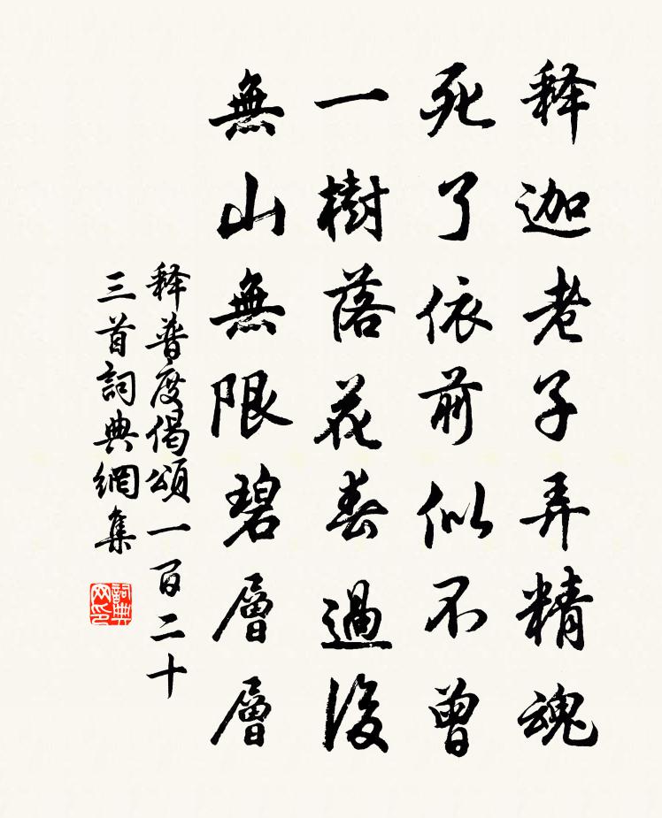 詩詞名句歷史字典書法欣賞書法字典國語詞典說文解字康熙字典古漢語字典標 題 作 者 詩 句 偈頌一百二十三首作者:釋普度 朝代:宋代偈頌一百二十三首原文釋迦老子弄精魂,死了依前似不曾。一樹落花春過後,無山無限碧層層。詩詞問答問:偈頌一百二十三首的作者是誰?答:釋普度問:偈頌一百二十三首寫於哪個朝代?答:宋代釋普度偈頌一百二十三首書法欣賞偈頌一百二十三首書法作品詩詞推薦驄馬驅徐陵〔南北朝〕白馬號龍駒。雕鞍名鏤渠。諸兄二千石。小婦字羅敷。倚端輕掃史。召募擊休屠。塞外多風雪。城中絕詔書。空憶南歌子石孝友〔宋代〕鳳髻斜分翠,鴛鞋小砑紅。東君著意綺羅叢。最好一枝特地、怨春風。懊恨無情語,嬌羞忍笑容。相看疑是夢魂中和子瞻司竹監燒葦園因獵園下蘇轍〔宋代〕駿馬七尺行馮馮,曉出射獸霜為冰。荻園斫盡有枯枿,束茅吹火初如燈。乍分乍合勢開展,蒼煙被野風騰騰。黃狐送黃殿講成父赴廣東漕四首王邁〔宋代〕閩州長者舊家聲,德厚流光產俊英。火玉精神充戶牖,國蘭譽諝播爐亭。臨軒初度董晁策,搞對專尋濂洛盟,臚句和崔若拙四時田家詞四首之四賀鑄〔宋代〕晚雪漫漫沒兔罝,滿杯豆粥餉鄰家。夜長少婦無舂織,一點青燈伴緝麻。山中寄梁判官李山甫〔唐代〕歸臥東林計偶諧,柴門深向翠微開。更無塵事心頭起,還有詩情象外來。康樂公應頻結社,寒山子亦患多才。星郎蝸牛白玉蟾〔宋代〕有宅一區長自負,受田百畝不能耕。壁間銀篆方猶濕,早已枯然夢兩楹。桂枝香徐寶之〔宋代〕人間秋至。對暮雨滿城,沈思如水。桐葉驚風,似語怨蛩齊起。南樓月冷曾多恨,怕而今、夜深橫吹。那堪更聽,重九日廣陵道中羅隱〔唐代〕秋山抱病何處登,前時韋曲今廣陵。廣陵大醉不解悶,韋曲舊遊堪拊膺。佳節縱饒隨分過,流年無奈得人憎。卻驅次韻陶節推問疾項安世〔宋代〕酒病詩狂失已多,之人未棄肯來過。悔將蟲篆疲鎪刻,旋講熊經學按摩。容我力湔盧駱體,與君同赴閔顏科。瑤琴寒食吳則禮〔宋代〕正憎風雨暗炊熟,朝日似為寒食晴。樹頭樹底作許好,舉揚春事憐音聲。聊呼上坐行飽飯,著處小立惟青青。更無滿江紅趙長卿〔宋代〕懊惱平生,奈天賦、恩情太薄。二三歲、看伊受盡,眼尖眉角。記得當初低耳畔,是誰先有于飛約。惟到今、劃地貴妃閣端午帖子許應龍〔宋代〕淑德儀宮閫,天教受祉繁。艾人暨桃印,奚用更懸門。江閣夜趙汝鐩〔宋代〕小閣臨江迥,疏簾帶霧鉤。雲鴻遙影滅,灘月碎光流。詩思偏宜夜,衰髯不耐秋。漁燈三兩點,隱隱荻花洲。秋思贈遠二首王涯〔唐代〕當年只自守空帷,夢裡關山覺別離。不見鄉書傳雁足,唯看新月吐蛾眉。厭攀楊柳臨清閣,閒采芙蕖傍碧潭。走馬送李生歸舊居溫庭筠〔唐代〕一從征戰後,故社幾人歸。薄宦離山久,高談與世稀。夕陽當板檻,春日入柴扉。莫卻嚴灘意,西溪有釣磯。桃源行姚勉〔宋代〕武陵溪邊翁好漁,笭箵釣車日采魚。扁舟為家葦為屋,豈知世有神仙居。曉來不記舟行路,忽在桃花深絕處。紅雲一枝花/促拍滿路花辛棄疾〔宋代〕千丈擎天手。萬卷懸河口。黃金腰下印,大如斗。更千騎弓刀,揮霍遮前後。百計千方久。似鬥草兒童,贏個他家折花聯句何遜〔南北朝〕笑出春園裡。望花聯褰纈。欲以間珠鈿。非為相思折。日照爛成綺。風來聚疑雪。試采一枝歸。願持因遠別。游少年(同前)賀鑄〔宋代〕誰愛松陵水似天。畫船聽雨奈無眠。清風明月休論價,賣與愁人直幾錢。揮醉筆,掃吟箋。一時朋輩飲中仙。白頭名句推薦得饒人處且饒人。曹雪芹《紅樓夢·第五十九回》 但愁敲桂棹,悲吟梁父,淚流如雨。朱敦儒《水龍吟·放船千里凌波去》 君子惜名,小人愛身。來俊臣《羅織經·保身卷第七》 夜雨連明春水生,嬌雲濃暖弄陰晴。蘇舜欽《初晴游滄浪亭》 駐馬橋西,還系舊時芳樹。高觀國《玲瓏四犯·水外輕陰》 學是一個尋常的家飯,當隨事而警惕。洪應明《菜根譚·概論》 民非谷不生。陳壽《三國志·吳書·吳主傳》 西湖又還春晚,水樹亂鶯啼。仲殊《訴衷情·寶月山作》 粉色全無飢色加,豈知人世有榮華。杜荀鶴《蠶婦》 白水明田外,碧峰出山後。王維《新晴野望》