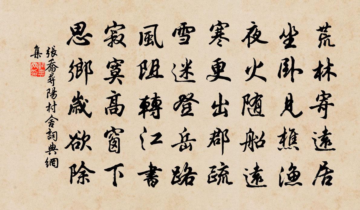 詩詞名句歷史字典書法欣賞書法字典國語詞典說文解字康熙字典古漢語字典標 題 作 者 詩 句 尋陽村舍作者:張喬 朝代:唐代尋陽村舍原文荒林寄遠居,坐臥見樵漁。夜火隨船遠,寒更出郡疏。雪迷登岳路,風阻轉江書。寂寞高窗下,思鄉歲欲除。詩詞問答問:尋陽村舍的作者是誰?答:張喬問:尋陽村舍寫於哪個朝代?答:唐代問:尋陽村舍是什麼體裁?答:五律張喬尋陽村舍書法欣賞尋陽村舍書法作品注釋全唐詩:卷639-45詩詞推薦水龍吟 題湖山勝 亭張野〔元代〕翠微曾共登臨,冷光瀲灩三千頃。玉京佳處,景雖天造,地因人勝。若把西施,淡妝濃抹,兩相比並。道此間如對寄吳士矩端公五十韻(此後並江陵士曹時作)元稹〔唐代〕昔在鳳翔日,十歲即相識。未有好文章,逢人賞顏色。可憐何郎面,二十才冠飾。短髮予近梳,羅衫紫蟬翼。伯舅記夢劉克莊〔宋代〕昔夢趨旃廈,巍冠預講論。孤忠鄙張禹,薄命類虞翻。稍覺芻言戇,徐瞻玉色溫。放臣絕朝謁,無路可酬恩。聞雁梅堯臣〔宋代〕濕雲夜不散,薄處微有星。孤雁去何急,一聲愁更聽。心應失舊侶,翅已高青冥。幾日江海上,鳧鷗共滿汀。和馬粹老四明雜詩聊記里俗耳十首舒坦〔宋代〕御史平囚日,郎中渡母年。豐碑推筆妙,孤冢枕城偏。白鶴空遼泬,黃蒿尚蔓延。九源如可作,執馭故忻然。春日溪上示南正四首宋祁〔宋代〕少華山頭雪未消,東風先已入花梢。今朝懶到溪邊看,林下流鶯似見嘲。曹通直以顏魯公墨跡題辭乞詩刊石韓維〔宋代〕臨池餘事得忠臣, * 林中不動身。見義捨生安為己,懷諼保位獨何人。英名在世長如日,遺像於今凜若神。一覽題陳守宰仁和無倦堂二首陳造〔宋代〕陳侯昔為邑,鼓舞輦轂民。爾來佐淮郡,喜詫有腳春。例滿徯志望,正繄不已純。帖焉受馴擾,初豈煩令申。撫臨兩中宿謝胥悲三君書堂梅堯臣〔宋代〕急雨射窗鳴,燈殘我正寢。穴蚓聲苦長,流響入孤枕。眾醉如不聞,強聒亦已甚。夜短竟無寢,困瞳劇塵磣。風雪數日不見叔度晚約公明共詣之司馬光〔宋代〕雲雪連朝闇,朋從嘆坐違。臨文與誰共,開卷為君稀。趣掃六花散,聊通一徑微。當攜兔園賦,同映讀書幃。採桑子 誓死赤腳,夏不飲水,冬不向火馬鈺〔元代〕我今誓死環牆內,夏絕涼泉。冬鄙紅煙。認正丹爐水火緣。師恩欲報勤修養,鍊汞烹鉛。行滿功圓。做個蓬瀛赤腳宿慧安院強至〔宋代〕積淖厭行路,解鞍欣曲肱。疾風穿敝屋,細雨濕青燈。聒夜有飢鼠,觀空無定僧。中宵塵累息,山水思填膺。別王十後遣京使累路附書杜牧〔唐代〕重關曉度宿雲寒,羸馬緣知步步難。此信的應中路見,亂山何處拆書看?惜雙雙令劉弇〔宋代〕風外橘花香暗度。飛絮綰、殘春歸去。醞造黃梅雨。冷煙曉占橫塘路。翠屏人在天低處。驚夢斷、行雲無據。此恨歲旦立春張鎡〔宋代〕從此車書看混同,王春丕建四時功。八千豈壯大椿比,宸極光符萬歲中。郢州堂唱和李褒〔宋代〕不離雉堞似山家,消得詩翁著意夸。水界蔥芊成畎澮,天將平遠入煙霞。沙禽暫落分明見,村徑相通取次斜。且莫與聶尊師話道齊己〔唐代〕伯陽遺妙旨,杳杳與冥冥。說即非難說,行還不易行。藥中迷九轉,心外覓長生。畢竟荒原上,一盤蒿隴平。發綿津驛耿湋〔唐代〕孤舟北去暮心傷,細雨東風春草長。杳杳短亭分水陸,隆隆遠鼓集漁商。千叢野竹連湘浦,一派寒江下吉陽。欲問高士詠顏闔吳筠〔唐代〕世情矜寵譽,效節徼當時。顏闔遵無名,飯牛聊自怡。逃聘鄙束帛,鑿壞欣茅茨。托聘囂塵表,放浪世莫知。贈夏宗禹真德秀〔宋代〕虎頭自合取侯封,好為明時立雋功。做了玉關班定遠,卻陪芝嶺夏黃公。名句推薦夫淺知之所爭者,末矣。列子及其弟子《列子·說符》 辭君向天姥,拂石臥秋霜。李白《別儲邕之剡中》 功被天下,守之以讓。荀子《荀子·宥坐》 冥冥重泉哭不聞,蕭蕭暮雨人歸去。白居易《寒食野望吟》 風老鶯雛,雨肥梅子,午陰嘉樹清圓。周邦彥《滿庭芳·夏日溧水無想山作》 秋風萬里芙蓉國,暮雨千家薜荔村。譚用之《秋宿湘江遇雨》 念天地之悠悠,獨愴然而涕下。陳子昂《登幽州台歌》 龍魚失水難為用,龜玉蒙塵未見珍牟融《春日山亭》 塵中見月心亦閒,況是清秋仙府間。劉禹錫《八月十五夜桃源玩月》 葉潤林塘密,衣乾枕席清。杜甫《水檻遣心二首》