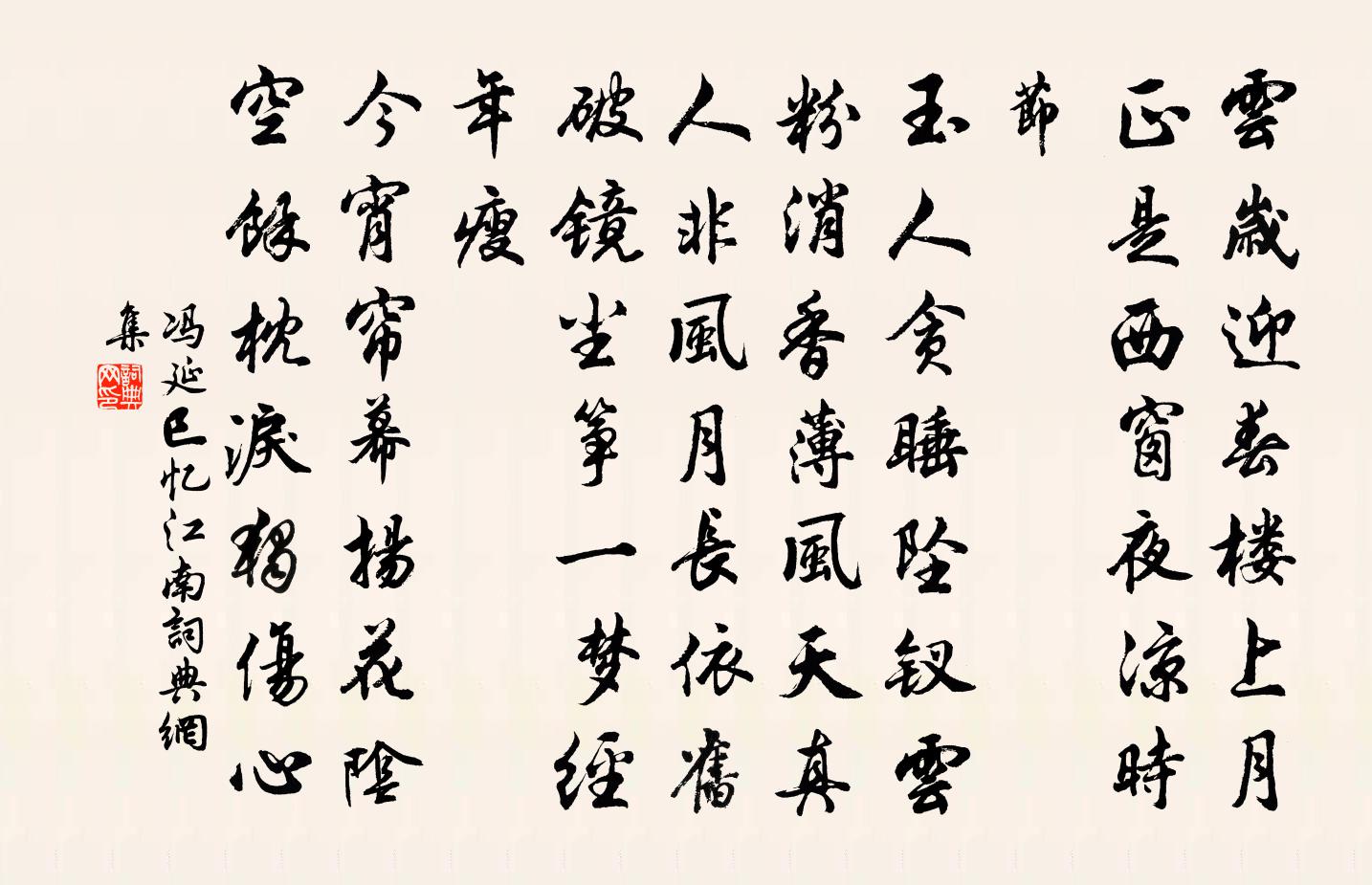 雲歲迎春樓上月,正是西窗,夜涼時節。玉人貪睡墜釵雲,粉消香薄風天真。