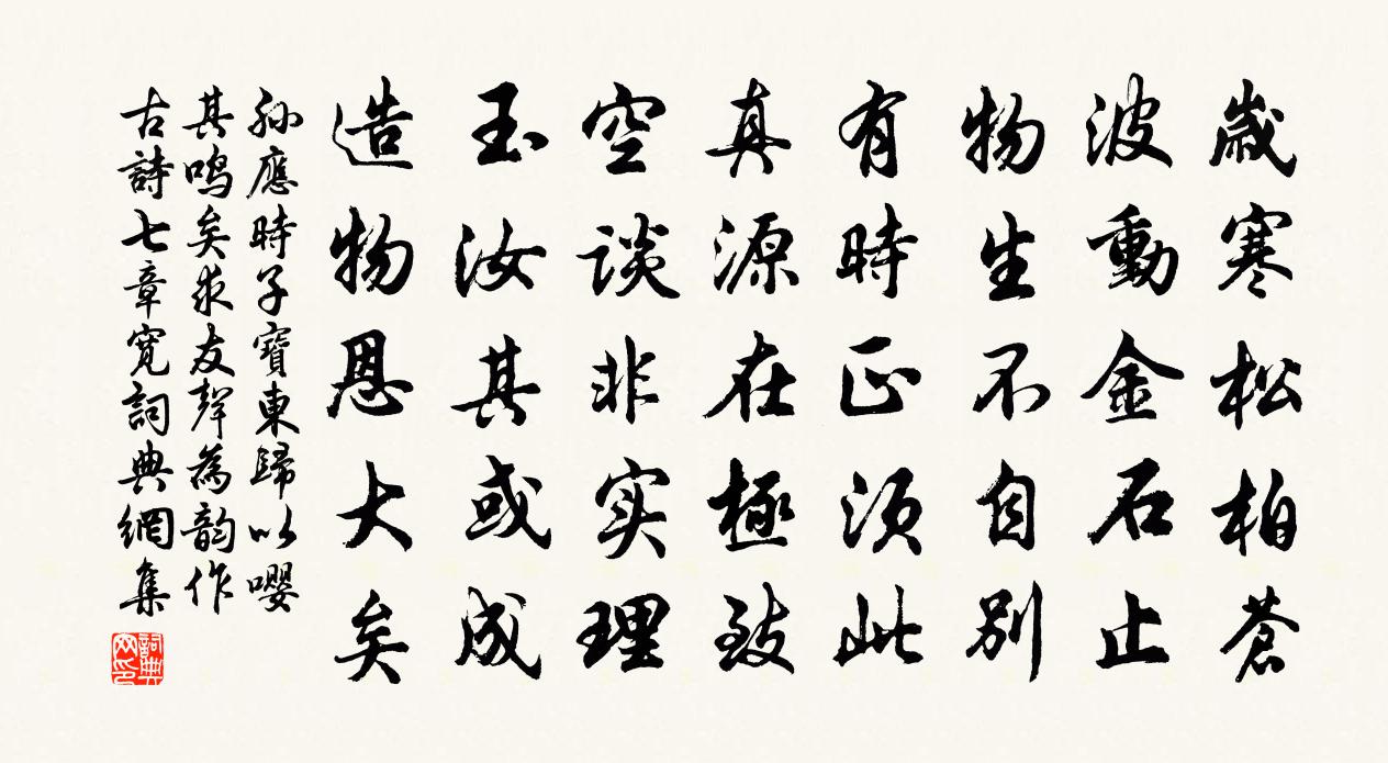 詩詞名句歷史字典書法欣賞書法字典國語詞典說文解字康熙字典古漢語字典標 題 作 者 詩 句 子寶東歸以嚶其鳴矣求友聲為韻作古詩七章寬作者:孫應時 朝代:宋代原文歲寒松柏蒼,波動金石止。物生不自別,有時正須此。真源在極致,空談非實理。玉汝其或成,造物恩大矣。詩詞問答問:《子寶東歸以嚶其鳴矣求友聲為韻作古詩七章寬》的作者是誰?答:孫應時問:該詩寫於哪個朝代?答:宋代書法欣賞子寶東歸以嚶其鳴矣求友聲為韻作古詩七章寬書法作品詩文賞析【原題】:子寶東歸以嚶其鳴矣求友聲為韻作古詩七章寬予旅懷次其韻詩詞推薦雜曲歌辭。春江曲張籍〔唐代〕春江無雲潮水平,蒲心出水鳧雛鳴。長乾夫婿愛遠行,自染春衣縫已成。妾身生長金陵側,去年隨夫住江北。春來岳陽館中望洞庭湖劉長卿〔唐代〕萬古巴丘戍,平湖此望長。問人何淼淼,愁暮更蒼蒼。疊浪浮元氣,中流沒太陽。孤舟有歸客,早晚達瀟湘。五老峰孔武仲〔宋代〕峻疊起青峰,森然五老翁。雲將色共古,天與壽無窮。突兀巔崖峭,駢羅面勢雄。三光同孕育,四岳是兒童。傑立送陳郎中知和州梅堯臣〔宋代〕藹藹尚書郎,出為二千石。伯公曆將相,兄弟皆烜赫。前罷永嘉守,民俗遮阡陌。獨將海松歸,夸與都下客。今去蟾宮曲·雪薛昂夫〔元代〕天仙碧玉瓊瑤,點點揚花,片片鵝毛。訪戴歸來,尋梅懶去,獨釣無聊。一個飲羊羔紅爐暖閣,一個凍騎驢野店溪贈薛校書李白〔唐代〕我有吳越曲,無人知此音。姑蘇成蔓草,麋鹿空悲吟。未夸觀濤作,空郁釣鰲心。舉手謝東海,虛行歸故林。移病還園示親屬詩謝朓〔南北朝〕疲策倦人世。斂性就幽蓬。停琴佇涼月。滅燭聽歸鴻。涼熏乘暮晰。秋華臨夜空。葉低知露密。崖斷識雲重。折荷頌古三首釋宗印〔宋代〕不如隨分納些些,噦作平常事已差。綠草溪邊頭角露,一蓑煙雨屬誰家。小立王同祖〔宋代〕小立危樓望眼遙,晚煙淡處見湖橋。梅花落盡寒猶力,留得東風候柳條。清明日雨中聞鵑二首楊公遠〔宋代〕蜀魄抑何靈,年年不負盟。才過百五日,便作兩三聲。渠自懷歸計,人因惱別情。淒涼無處著,那更雨如傾。求信吟邵雍〔宋代〕始則求人信,有知有不知。既而求自信,人或多知之。今我不求信,何人更起疑。無可無不可,安往不熙熙。霜梅李龍高〔宋代〕青女欺花戰未分,花神直訴與東君。冰山回首知何許,依舊山人住白雲。頌古二十四首釋勝〔宋代〕握七星刀尋作者,倒司農印對冤讎。當陽一句分賓主,九曲黃河水逆流。句樊晃〔唐代〕巧裁蟬鬢畏風吹,盡作蛾眉恐人妒。貪泉鄧林〔宋代〕千古遺蹤散曉煙,空餘兩字寺門前。世間貪者滔滔是,何必俱曾飲此泉。補易水歌效郭青山艾性夫〔宋代〕贊公分半榻,臥近竹西樓。四壁寒蛩夜,一山黃葉秋。夢隨三鼓動,月尚半窗留。零亂芭蕉影,禪衣爛不收。觀鄰人賣餅大售宋祁〔宋代〕初日關門照上旌,芬餚無算客庖盈。本源漸大囊錢足,不復還家唱渭城。自蕭關望臨洮朱慶餘〔唐代〕玉關西路出臨洮,風卷邊沙入馬毛。寺寺院中無竹樹,家家壁上有弓刀。惟憐戰士垂金甲,不尚遊人著白袍。日暮次韻胡景參制機見壽二首陳著〔宋代〕南風吹笠走長須,一軸新詩一幅書。虎榜陳人有韓愈,鶴山佳婿得肩吾。行年八十死將似,求活須臾計已疏。慚愧木蘭花慢史浩〔宋代〕忠勞久篤於王家;維熊維羆,吉夢是生於男子。彩絢朝陽之F457F23C,光騰天上之麒麟。豈維相閥之英,名句推薦白日放歌須縱酒,青春作伴好還鄉。杜甫《聞官軍收河南河北》 一別都門三改火,天涯踏盡紅塵。蘇軾《臨江仙·送錢穆父》 騁望因高雲外盡,鄉關回首愧煙蘿。石茂華《九月九日登長城關》 長風破浪會有時,直掛雲帆濟滄海。李白《行路難·其一》 至今雲雨帶愁容,月斜江上,征棹動晨鐘牛希濟《臨江仙·峭壁參差十二峰》 十年種木,一年種穀,都付兒童。元好問《人月圓·重岡已隔紅塵斷》 聞道欲來相問訊,西樓望月幾回圓。韋應物《寄李儋元錫》 當年志氣俱消盡,白髮新添四五莖。薛逢《長安夜雨》 朝看水東流,暮看日西墜。錢福《明日歌》 紛紛暮雪下轅門,風掣紅旗凍不翻。岑參《白雪歌送武判官歸京》