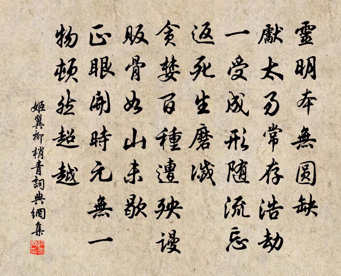 詩詞名句歷史字典書法欣賞書法字典國語詞典說文解字康熙字典古漢語字典標 題 作 者 詩 句 柳梢青作者:姬翼 朝代:元代柳梢青原文靈明本無圓缺。先太易、常存浩劫。一受成形,隨流忘返,死生磨滅。貪婪百種遭殃,謾販骨、如山未歇。正眼開時,元無一物,頓然超越。詩詞問答問:柳梢青的作者是誰?答:姬翼問:柳梢青寫於哪個朝代?答:元代問:柳梢青是什麼體裁?答:詞姬翼柳梢青書法欣賞柳梢青書法作品詩詞推薦永遇樂張元乾〔宋代〕月仄金盆,江縈羅帶,涼飆天際。摩詰丹青,營丘平遠,一望窮千里。白鷗盟在,黃粱夢破,投老此心如水。耿無古意二首王阮〔宋代〕洞庭九月湖水乾,倒影夜瞰星斗攢。水官籋浪蹴寒玉,船過兩耳聲珊珊。九江暮春書事曹松〔唐代〕楊柳城初鎖,輪蹄息去蹤。春流無舊岸,夜色失諸峰。影動漁邊火,聲遲話後鍾。明朝回去雁,誰向北郊逢。和帑院叔趙孟堅〔宋代〕久居朝跡遲遷次,雖在琴齋頗寂寥,交少自應無援拔,地寒安得有肥饒。桃花落處春風緊,梅蕊開時臘雪銷。畢竟挽族父承務郎衡之三首陳著〔宋代〕人物瑞丹霞,翛然絕點瑕。寬心無厭客,急義不謀家。一室琴棋畫,四時風月花。晚來滿山菊,消得澹生涯。洛陽杜甫〔唐代〕洛陽昔陷沒,胡馬犯潼關。天子初愁思,都人慘別顏。清笳去宮闕,翠蓋出關山。故老仍流涕,龍髯幸再攀。曉看芙蓉楊萬里〔宋代〕兩歲芙蓉無一枝,今年萬朵壓枝低。半紅半白花都鬧,非短非長樹斬齊。臨水釅妝新雨後,出牆背面曉風西。春英遇葉進士貫休〔唐代〕文章擬真宰,儀冠冷如璧。山寺偶相逢,眼青勝山色。氣隆多慷慨,語澹無他力。金繩殘果落,竹閣涼雨滴。自愧偈頌七十二首釋祖欽〔宋代〕聲色無依,見聞不立。渡水問魚蹤,過山尋蟻跡。偈頌二十一首釋智愚〔宋代〕天不文,地不理。忽去忽來,如月印水。歲月已往兮波旬得時,槨示雙趺飲光增喜。悲兮喜兮,春風桃李。一以貫次韻順適遣寄胡仲弓〔宋代〕擬折芳馨遺所思,要將心事共謀惟。暮雲遮斷松江路,得讀夫君別後詩。賀梁溪李先生陪右府鄧肅〔宋代〕虜兵震地喧鼙鼓,黑幟插城遍樓櫓。蔽空戈甲來如雲,群盜相隨劇豺虎。胡塵漠漠四壁昏,諸將變名竄軍伍。十萬孤鸞 前段末句少一字佚名〔宋代〕蝦須初揭。正社日停針,窗風鳴鐵。懶自梳妝,亂挽鬟兒非滑。追想昨宵瞥見,有多少、動情誰說。枉在屏風背後送張宗甫兄弟楚觀登舟赴湖北試文天祥〔宋代〕金螺曉氣照人寒,手把天漿領佩環。夜有送魚來赤壁,秋風吹雁發衡山。東南折處旗花見,牛女光中槎影還。見說連日雪未能多曾遠逸見惠二首遵歐蘇律禁體物張鎡〔宋代〕待伴猶虛夜,羞明或遇朝。但依歌袖舞,休向鬢絲飄。有句清堪比,令人意自消。暖寒林下具,相就可須招。行香子王哲〔元代〕要飲香津,唾盡稠黏。淨華池、神水相兼。東西澆溉,上下抽添。便景星呈,明月正,太陽遲。漸入亨通,方識甘九月二十七日題桂溪鋪趙蕃〔宋代〕昨日方搖扇,今朝可擁裘。頓能驚北客,方覺是南州。歲儻不逢閏,時今寧復秋。無庸嘆疎漏,聊得避颼颼。次韻郭刪定觀潮四絕喻良能〔宋代〕身到錢塘江上初,端如碧海掛新圖。不知洗眼觀潮日,豁得平生俊氣無。虎跑泉楊蟠〔宋代〕天藏物啟有靈根, * 銀漿豈易分。淨鑒當空寒自照,流珠落澗遠先聞。潤生冉冉雙林雨,香出蒙蒙一井雲。今日觀理稼梅堯臣〔宋代〕稂莠日已長,匆匆芟薙初。來時露沾屩,歸去月侵鋤。一腹餒猶甚,百骸勤有餘。吾無力耕苦,謬讀古人書。名句推薦又說今夕天津,西畔重歡遇。吳文英《荔枝香近·七夕》 此後錦書休寄,畫樓雲雨無憑。晏幾道《清平樂·留人不住》 秉忠貞之誠,守退讓之實。陳壽《三國志·魏書·荀彧攸賈詡傳》 生當作人傑,死亦為鬼雄。李清照《夏日絕句》 明朝掛帆席,楓葉落紛紛。李白《夜泊牛渚懷古》 潮平兩岸闊,風正一帆懸。王灣《次北固山下》 一家二貴,事乃無功。韓非及後人《韓非子·揚權》 及茲春未深,數畝猶足佃。王守仁《謫居糧絕請學於農將田南山詠言寄懷》 竹深樹密蟲鳴處,時有微涼不是風。楊萬里《夏夜追涼》 下床著新衣,初學小姑拜。毛鉉《 * 詞·下床著新衣》