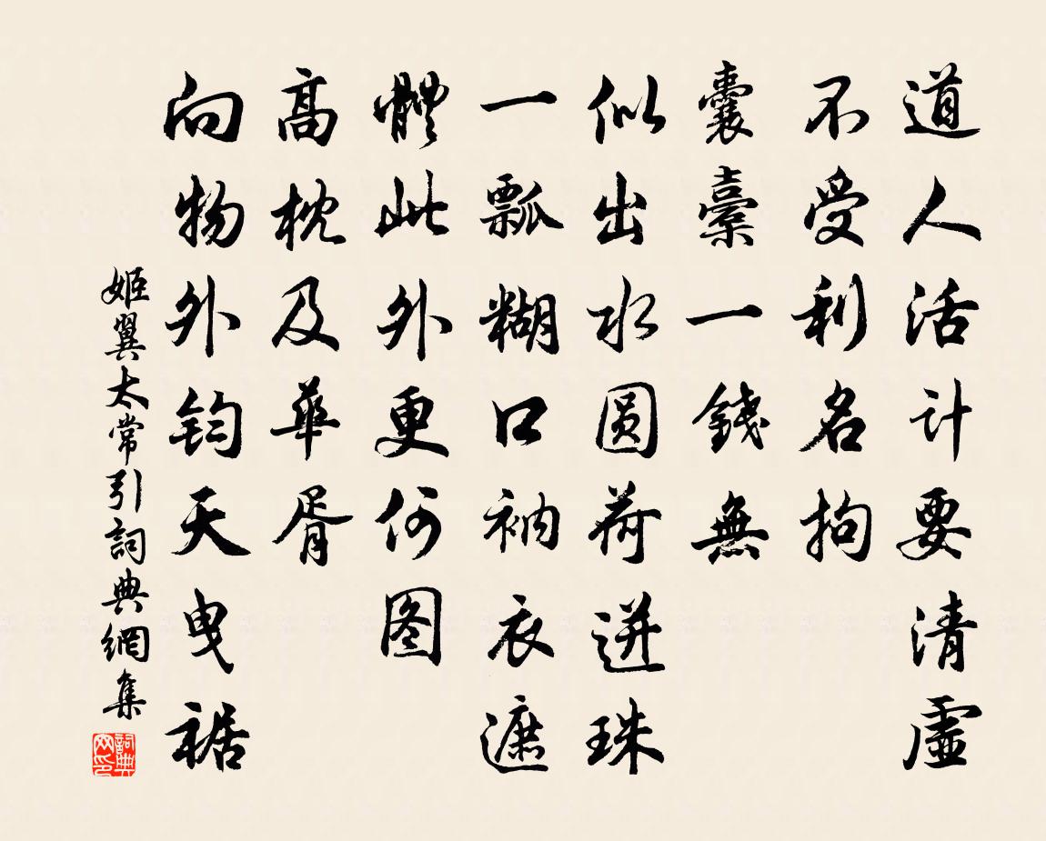 詩詞名句歷史字典書法欣賞書法字典國語詞典說文解字康熙字典古漢語字典標 題 作 者 詩 句 太常引作者:姬翼 朝代:元代太常引原文道人活計要清虛。不受利名拘。囊橐一錢無。似出水、圓荷迸珠。一瓢餬口,衲衣遮體,此外更何圖。高枕及華胥。向物外、鈞天曳裾。詩詞問答問:太常引的作者是誰?答:姬翼問:太常引寫於哪個朝代?答:元代問:太常引是什麼體裁?答:詞姬翼太常引書法欣賞太常引書法作品詩詞推薦代人題瓊守歸疆堂曾豐〔宋代〕前朝列聖規模大,雨露涵濡山海外。椎卉之民半冠帶,恬不復它余百載。前守諸公方略偏,藩籬漫浪耳目前。版圖賀新郎楊冠卿〔宋代〕具能歌張仲宗目盡青天等句,音韻洪暢,聽之慨然。戲用仲宗韻呈張君量府判薄暮垂虹去。正江天、殘霞冠日,亂山居十首陳造〔宋代〕一室市聲外,生經良不孤。園花非獨笑,風竹巧相娛。為客求鵝母,供家課橘奴。殘年溫飽爾,外此亦何須。送張衡山陳師道〔宋代〕昔別青衿子,今為白髮翁。此行何日見,多難向來同。官事酣歌里,湖山秀句中。風塵莫回首,留眼送歸鴻。夙興陸游〔宋代〕青燈黃卷擁篝爐,殘發垂蓬未暇梳。略似諸生勤夜課,絕勝小吏迫晨趨。雞聲喔喔寒猶力,月影離離淡欲無。幽致韓退之廟林概〔宋代〕退之皆負□□志,作邑當年來此中。謾道陽山是窮處,先生於道未嘗窮。遊仙詞三十三首王鎡〔宋代〕金甲雷丁出巽宮,丹幢翠節擁靈童。五更飛去雌雄劍,一夜鹽池碧水紅。雨後東郭排岸司申梅開方及三分,戲書小絕,范成大〔宋代〕雨入南枝玉蕊皴,合江雲冷凍芳塵。司花好事相邀勒,不著竹歌不肯春。留題玉泉山堂張伯玉〔宋代〕動非緣境靜非祥,物物前塵現四天。此地筌蹄求妙論,有時瓔絡獻諸仙。欲梅泉石多秋思,過夏松篁聒晝眠。一個仁宗皇帝輓辭四首王安石〔宋代〕去序三朝聖,行崩萬國天。憂勤無曠古,治洽最長年。仁育齊高厚,哀思罄幅員。欲知千載美,道德冠遺編。與晦庵先生同宿清虛庵梁平叔〔宋代〕幽齋共坐論功夫,借問先生識此無。悟得此中真妙訣,人間始信有仙壺。上巳日與客游張園韓元吉〔宋代〕簿書有餘閒,春日亦已永。況逢佳節休,朱墨得暫屏。名園跨江郊,危檻俯千頃。平蕪雨初勻,弱柳風自整。芳尋採桑子晏殊〔宋代〕陽和二月芳菲遍,暖景溶溶。戲蝶游蜂。深入千花粉艷中。何人解系天邊日,占取春風。免使繁紅。一片西飛一片朝中措趙長卿〔宋代〕於壁。坐前數妓乞詞而歌,以勸大白。因有所感,再和前韻。秋景柳林冪冪暮煙斜。秋水淺平沙。樓外碧天無際,東西二林寺流水貫休〔唐代〕水爾何如此,區區矻矻流。牆牆邊瀝瀝,砌砌下啾啾。味不卑於乳,聲常占得秋。崩騰成大瀑,落托出深溝。遠歷過王師嶺堠見荊門郢州山項安世〔宋代〕七澤茫茫千裡間,王師堠前初見山。西子嵯峨高髻擁,東鄰嬌小秀眉彎。背襄阻郢開肩背,大野青天豁面顏。獨立為師席李上捨去智壽四首衛涇〔宋代〕屢將大手占倫魁,槐市英聲早四馳。肯與鱣魴爭尺水,鵾鵬行矣化天池。自吳岳歸李復〔宋代〕鳴鳳岡邊路,秋風動夕嵐。閒雲依絕壁,獨鳥下空潭。疇昔經行慣,重來委曲諳。試尋遺墨在,投策訪僧龕。送施景仁太博提點江南坑冶梅堯臣〔宋代〕楚山豈無銅,楚匠豈不工。大爐常乏鑄,碧爐那得充。積弊在鄉縣,孰肯以利籠。君今承詔行,諭民當得中。苟能答德甫弟黃庭堅〔宋代〕鳥啼花發獨愁思,憐子三章怨慕詩。鴻雁雙飛彈射下,脊令同病急難時。功名所在猶爭死,意氣相須尚不移。何況名句推薦有無相生,難易相成,長短相形,高下相傾,音聲相和,前後相隨。老子《老子·道經·第二章》 獨坐幽篁里,彈琴復長嘯。王維《竹里館》 寂歷秋江漁火稀,起看殘月映林微。湯顯祖《江宿》 何意更觴昌歜酒,為君擊節一長歌。趙蕃《端午三首》 夜吟敲落霜紅,船傍楓橋系。吳文英《荔枝香近·送人游南徐》 勿恃勢力而凌逼孤寡,毋貪口腹而恣殺生禽。朱柏廬《朱子家訓·全文》 三月三日天氣新,長安水邊多麗人。杜甫《麗人行》 得寵思辱,居安思危。佚名《增廣賢文·上集》 苦心豈免容螻蟻,香葉終經宿鸞鳳。杜甫《古柏行》 增冰峨峨,飛雪千里些。屈原《招魂》
