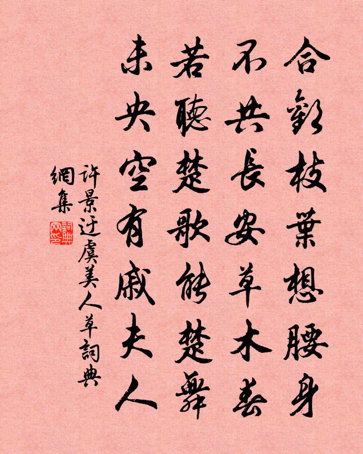 詩詞名句歷史字典書法欣賞書法字典國語詞典說文解字康熙字典古漢語字典標 題 作 者 詩 句 虞美人草作者:許景迂 朝代:宋代虞美人草原文合歡枝葉想腰身,不共長安草木春。若聽楚歌能楚舞,未央空有戚夫人。詩詞問答問:虞美人草的作者是誰?答:許景迂問:虞美人草寫於哪個朝代?答:宋代許景迂虞美人草書法欣賞虞美人草書法作品詩詞推薦卜運算元 黃州定慧院寓居作蘇軾〔宋代〕缺月掛疏桐,漏斷人初靜。誰見幽人獨往來?縹緲孤鴻影。驚起卻回頭,有恨無人省。揀盡寒枝不肯棲,寂寞沙洲紫宸殿正旦教坊詞致語口號蘇軾〔宋代〕臣聞行夏之時,正莫加於人統;采周之舊,王方在於鎬京。惟吉月之布和,休庶工而未作。使華遠集,鄰好交修。送三哥守蜀韓維〔宋代〕昔我忠憲公,握節臨西州。於今三十載,餘愛尚應留。旌旗愴獨往,山水記同游。一歌緇衣詩,涕下不能收。感事游酢〔宋代〕世事浮雲薄,勞生一夢長。散材依櫟社,幽意慕濠梁。風急鷹鸇迅,霜淺草木黃。投閒如有約,早晚問耕桑。和向倅韻彭龜年〔宋代〕誤身利名場,無異一釜甑。置之水炎間,謬以力取勝。人生具天則,發見亦有證。如水行地中,投隙即流迸。但恐偈頌一百零九首釋可湘〔宋代〕撥塵見佛,佛亦是塵。山僧腳布作炊巾,眼不見為淨。朝中措(送人)姜特立〔宋代〕十分天賦好精神。宮樣小腰身。迷卻陽城下蔡,未饒宋玉東鄰。不堪回首,高堂去夢,楚峽歸雲。從此好尋夫婿,喚春愁賀鑄〔宋代〕天與多情不自由。占風流。雲閒草遠絮悠悠。喚春愁。試作小妝窺晚鏡,淡蛾羞。夕陽獨倚水邊樓。認歸舟。醉中真(減字浣溪沙七首)賀鑄〔宋代〕不信芳春厭老人。老人幾度送余春。惜春行樂莫辭頻。巧笑艷歌皆我意,惱花顛酒拚君瞋。物情惟有醉中真。浮世陸游〔宋代〕浮世如流水,滔滔日夜東。百年均夢寐,萬古一虛空。青鳥來雲外,銅駝臥棘中。相逢惟痛飲,令我憶無功。題楊毅肅十馬圖馮時行〔宋代〕平生仰聞毅肅公,南征北伐開駿功。所乘十馬有圖畫,今觀逸氣猶追風。法時血戰冒飛矢,一中鉤膺一貫耳。功名宮詞楊皇后〔宋代〕新翻歌譜甚能奇,宣索蕊官入管吹。按拍未諧爭共笑,含羞無語自凝思。歸建溪鄢玉庭〔宋代〕歸去寒溪覓舊盟,相逢詩酒足娛情。閒雲不礙青山好,物外風高夢自清。曉出西園由谷中歸甘復〔元代〕披褐入西園,煩襟散清曉。微風動高樹,零露下芳沼。始行幽谷中,忽出青林杪。流水漂余花,修筠度啼鳥。身緣落梅郭印〔宋代〕名園探梅時,粉苞才半開。如逢姑射仙,偃蹇下瑤台。孤潔自天賦,肯聽東君媒。別來今幾日,雪片點蒼苔。玉笛春興劉子翬〔宋代〕弱淥才勝舫,危青更著樓。管弦非老伴,風雨定花仇。兀坐還無味,微竹卻自由。只嫌詩作崇,呫呫不能休。撼庭秋·別來音信千里晏殊〔宋代〕別來音信千里。悵此情難寄。碧紗秋月,梧桐夜雨,幾回無寐。樓高目斷,天遙雲黯,只堪憔悴。念蘭堂紅燭,心緣識宋太宗〔宋代〕鳳皇燕雀不同群,非類宜然信有聞。好景銷磨還爾夢,方知虛庭似浮雲。閒吟比喻明如日,雅道留情舊曲墳。堪與採蓮范成大〔宋代〕柔櫓無聲坐釣魚,浪花飛點翠羅裾。空江日暮無來客,腸斷三湘一紙書。贈劉琨詩二十首 十七盧諶〔魏晉〕先民頤意。潛山隱几。仰熙丹崖。俯澡綠水。無求於和。自附眾美。慷慨遐蹤。有愧高旨。名句推薦接天蓮葉無窮碧,映日荷花別樣紅。楊萬里《曉出淨慈寺送林子方》 攜扙來追柳外涼,畫橋南畔倚胡床。秦觀《納涼》 驪山四顧,阿房一炬,當時奢侈今何處?張養浩《山坡羊·驪山懷古》 零落棲遲一杯酒,主人奉觴客長壽。李賀《致酒行》 學者非必為仕,而仕者必如學。荀子《荀子·大略》 牛困人飢日已高,市南門外泥中歇。白居易《賣炭翁》 竹馬踉蹡沖淖去,紙鳶跋扈挾風鳴。陸游《觀村童戲溪上》 君子不以冥冥墮行。張廷玉《明史·列傳·卷三十七》 強中自有強中手,用詐還逢識詐人。羅貫中《三國演義·第十七回》 瘦葉幾經雪,淡花應少春。於武陵《贈賣松人》