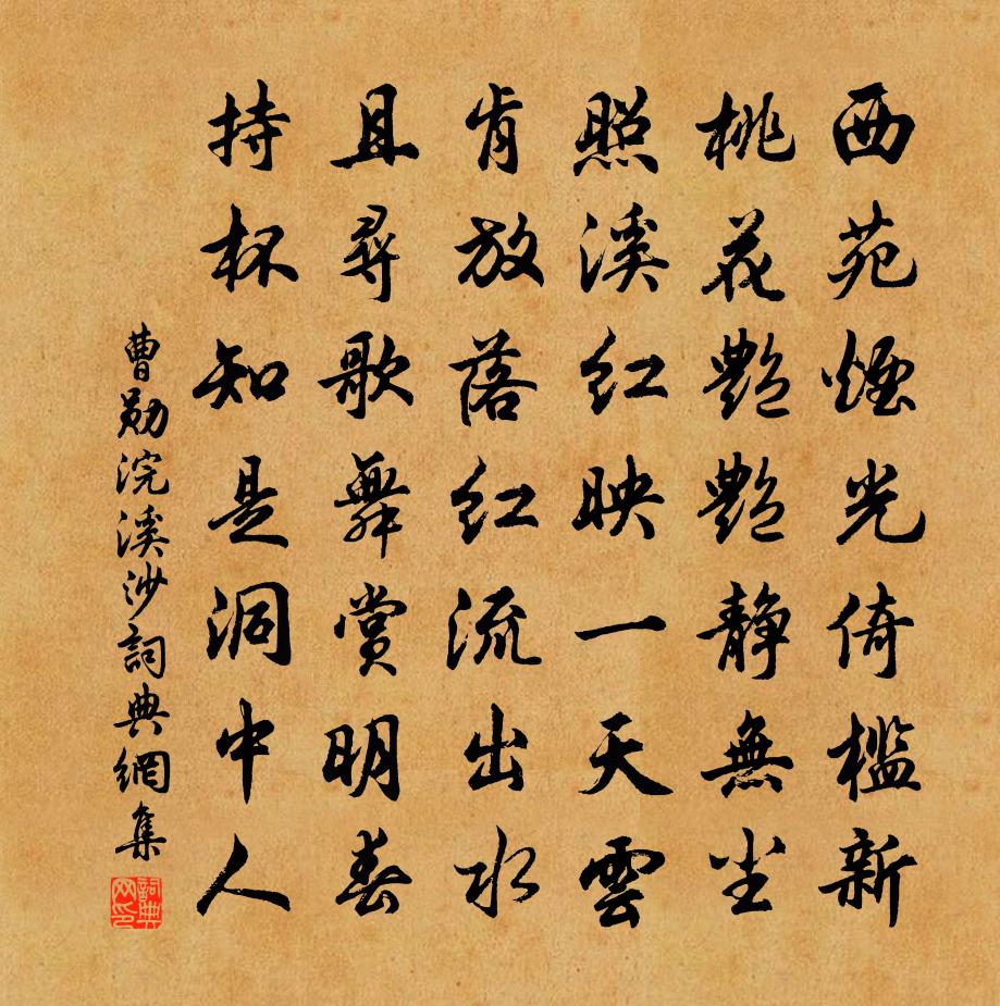 詩詞名句歷史字典書法欣賞書法字典國語詞典說文解字康熙字典古漢語字典標 題 作 者 詩 句 浣溪沙作者:曹勛 朝代:宋代浣溪沙原文西苑煙光倚檻新。桃花艷艷靜無塵。照溪紅映一天雲。肯放落紅流出水,且尋歌舞賞明春。持杯知是洞中人。詩詞問答問:浣溪沙的作者是誰?答:曹勛問:浣溪沙寫於哪個朝代?答:宋代問:浣溪沙是什麼體裁?答:詞曹勛浣溪沙書法欣賞浣溪沙書法作品詩詞推薦大仙廟蘇泂〔宋代〕為云為雨話頭長,十二峰前事渺茫。盡道翠眉愁未展,不應猶憶楚襄王。送葉正則赴浙西憲幕陳傅良〔宋代〕頻年送行客,酒罄詩不工。最晚與君別,柰此百感叢。岐山有鳴鳳,雅頌移豳風。於時二老生,出處海上同。曹劉九日會王修竹西樓預坐者七人以落霞與孤鶩齊黃庚〔宋代〕冉冉五雲深,山西日光薄,登樓集群賢,縱目天宇廓。落木悲徂年,寒光照杯酌。浩歌興悠然,意行非澗壑。緬懷周秀實書雲裴奇卿好茶得病鍾熙仲酣醉任真西王洋〔宋代〕閒來得病緋衣客,著酒當茶桑薴翁。誰知十室有二士,復得周叟同從容。叟今行年餘七十,七歲詩成鬼神泣。即今無方刊字釋師範〔宋代〕道在貴芒羈,寧容滯一涯。是山皆有石,隨處可鐫碑。題陽朔山陶弼〔宋代〕名山愛陽朔,平陸遍峰巒。郡境尖中拆,人家缺處安。穿青入梧峽,載影下昭灘。讀前漢外戚傳李嶷〔唐代〕人錄尚書事,家臨御路傍。鑿池通渭水,避暑借明光。印綬妻封邑,軒車子拜郎。寵因宮掖里,勢極必先亡。晚步連文鳳〔宋代〕不知風露寒,深坐翠微間。對酒秋花盡,看雲暝鶴還。鐘聲黃葉寺,樵唱夕陽山。安得吟身健,長隨白日間。郭公篇危稹〔宋代〕郭公郭公,聞爾失國春秋時,何事到此猶悲啼。郭公前言亡國故,當時只緣臣子誤。百年社稷不得歸,而今家住柘同水心吊薛子舒墓戴栩〔宋代〕自劚青雲去,長途墜玉鑣。有名天所吝,無病藥為妖。月斧千家寂,霓梭五色銷。夢靈虛吐鳳,數短實如鴞。筦庫薛殿院將赴闕先歸絳台迎覲魏野〔宋代〕不妨赴詔暫歸寧,躍馬惟消兩火程。七十嚴君千萬喜,彩衣爭似繡衣榮。燕城讀史羅公升〔宋代〕秦王手創萬世業,四海不足充侈心。孝文田家眼孔小,露台欲作慳百金。久雨鄭剛中〔宋代〕漂泊初時尚念鄉,如今意定已都忘。小窗積雨韋編潤,慢火薰蘢藥裹香。正要門前蛛結網,何妨籬上蟻成行。山前水調歌頭(次瓊山韻)佚名〔宋代〕足跡半天下,家說在瓊川。往來無定,蓬頭垢面仟憎嫌。揮掃筆頭萬字,貫穿胸中千古,不記受生年。海角一相遇江上夜觀野燒黎廷瑞〔宋代〕坎離血戰夜茫茫,萬里陰颼更助狂。兔窟那知炷郿塢,蟻封不料火鹹陽。三更月起雲霞曙,九野冰凝雷電光。莽莽李白圖唐寅〔明代〕李白才名天下奇,開元人主最相知。夜郎不免長流去,今日書生敢望誰。送莫贛州趙蕃〔宋代〕赤縣權宜非昔時,近聞誰復古人為。向來聲烈有如此,今日飛騰已似遲。雁序相仍盡詞掖,虎城寧獨待瓜期。歸哉赴戍登程口占示家人二首林則徐〔清代〕出門一笑莫心哀,浩蕩襟懷到處開。時事難從無過立,達官非自有生來。風濤回首空三島,塵壤從頭數九垓。休信橋亭卯飲白居易〔唐代〕卯時偶飲齋時臥,林下高橋橋上亭。松影過窗眠始覺,竹風吹面醉初醒。就荷葉上包魚鮓,當石渠中浸酒瓶。生計寄王共宋祁〔宋代〕沸蟻雲罍溢,離鵾雪苑開。吏催東府計,卿待楚人材。舊隱周蘿月,前期禹鑿雷。我慚芳歲晚,猶俊蹇修媒。名句推薦蘭陵美酒鬱金香,玉碗盛來琥珀光。李白《客中行 / 客中作》 但使情親千里近,須信。無情對面是山河。辛棄疾《定風波·席上送范廓之游建康》 寒燈思舊事,斷雁警愁眠。杜牧《旅宿》 不如歸去下簾鉤,心兒小,難著許多愁吳淑姬《小重山·謝了荼蘼春事休》 玲瓏骰子安紅豆,入骨相思知不知。溫庭筠《南歌子詞二首 / 新添聲楊柳枝詞》 夜來雨橫與風狂,斷送西園滿地香。阿魯威《湘妃怨·夜來雨橫與風狂》 事雖小,勿擅為。苟擅為,子道虧。李毓秀《弟子規·入則孝》 爆竹聲中一歲除,春風送暖入屠蘇。王安石《元日》 池上碧苔三四點,葉底黃鸝一兩聲。晏殊《破陣子·春景》 公生明,偏生暗荀子《荀子·不苟》