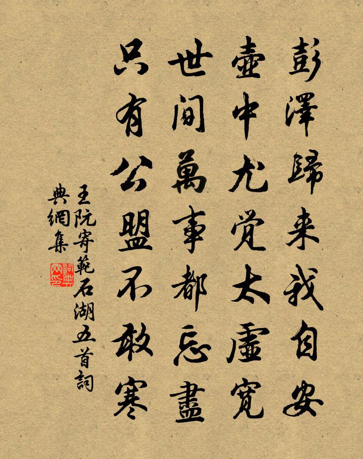 詩詞名句歷史字典書法欣賞書法字典國語詞典說文解字康熙字典古漢語字典標 題 作 者 詩 句 寄范石湖五首作者:王阮 朝代:宋代寄范石湖五首原文彭澤歸來我自安,壺中尤覺太虛寬。世間萬事都忘盡,只有公盟不敢寒。詩詞問答問:寄范石湖五首的作者是誰?答:王阮問:寄范石湖五首寫於哪個朝代?答:宋代王阮寄范石湖五首書法欣賞寄范石湖五首書法作品詩詞推薦題進月堂楊簡〔宋代〕我有一輪月,不圓又不缺。更無晝與夜,光耀常洞徹。縱有蔀屋遮,亦莫之閒絕。將此之為燭,難作進退說。游黃山寺葛起文〔宋代〕偶為尋幽出,扶筇亦懶拈。鸛巢依古塔,燕語入虛欄。筆下詩初就,樽中酒屢添。此游堪喜膝,上一去掀髯。汴之水三章送淮南提刑李舍人梅堯臣〔宋代〕我送行舟,於水之次。春風吹兩旗,君作天王使。罟客自求魚,清江莫相避。山雞許渾〔唐代〕珍禽暫不扃,飛舞躍前庭。翠網摧金距,雕籠減繡翎。月圓疑望鏡,花暖似依屏。何必舊巢去,山山芳草青。周正字請贊亡母宜人王氏真釋祖先〔宋代〕畫得十分,依前不是。端坐北堂,琅琅仁義。文殊罔明把手行,入定出定恣遊戲。舟泊竹篠港夜坐誦後山詩袁說友〔宋代〕沙岸人歸後,船窗月上時。霜風竹篠港,燈火後山詩。歲晚羇懷惡,江空熟路遲。鄰舟一樽酒,不使老夫知。偶成三首鄧肅〔宋代〕萬里歸來臥白雲,蚍蜉撼樹政紛紛。大兒文舉知何在,巨擘於陵亦謾雲。空洞能容數百輩,朦朧如見二三分。小槽送獨孤曵還京戴叔倫〔唐代〕舉家相逐還鄉去,不向秋風怨別時。湖水兩重山萬里,定知行盡到京師。呈富大卿華岳〔宋代〕司農未曉報龍樓,昨夜中天貫索流。石父不逢齊子相,馬遷空作漢家囚。銅壺滴碎短長夢,鈴索拽翻新舊愁。安得秋日登山長孫佐輔〔唐代〕逐勝不怯寒,秋山閒獨登。依稀小徑通,深處逢來僧。側石擁寒溜,欹松懸古藤。明書問知友,興詠將誰能。為客吟邵雍〔宋代〕忽憶太原為客日,經秋縱酒未成歸。遠山近水都成限,高閣斜陽儘是悲。年少不禁花到眼,情多唯只淚沾衣。如今分韻送王非之官山險得再字劉宰〔宋代〕達官須親民,未竟法應再。昔君治姑孰,報政甫初載。桃李春正華,風木養不待。至今田裡間,往往誦遺愛。薦章雜感陸游〔宋代〕側帽垂鞭小陌東,名花迎笑一枝紅。啼鶯驚斷尋春夢,惆悵新霜點鬢蓬。送姚庭珪杜荀鶴〔唐代〕脫衣將換酒,對酌話何之。雨後秋蕭索,天涯晚別離。人生無此恨,鬢色不成絲。未得重相見,看君馬上詩。行園樹徐鉉〔唐代〕松節凌霜久,蓬根逐吹頻。群生各有性,桃李但爭春。夜觀野舟浩歌有感王柏〔宋代〕康衢久寂寞,擊壤音微茫。南風啟簫韶,拜手賡明良。周衰二雅廢,鳳兮歌楚狂。楚狂已再變,三閭竟哀傷。俯仰望商山路司空曙〔唐代〕南見青山道,依然去國時。已甘長避地,誰料有還期。雨霽殘陽薄,人愁獨望遲。空殘華發在,前事不堪思。庚子冬望雪二首陳造〔宋代〕隴麥枯時雪意濃,可堪新日已曈。因循度臘無三白,孤負明年飽二紅。題南嶽方廣後洞五百羅漢所居二絕史堯弼〔宋代〕山自周回溪自流,沉沉萬籟不勝幽。此間有句誰堪話,五百真人今在不。侍宴長寧公主東莊應制鄭愔〔唐代〕公門襲漢環,主第稱秦玉。池架祥鱣序,山吹鳴鳳曲。拂席蘿薜垂,回舟芰荷觸。平陽妙舞處,日暮清歌續。名句推薦年年今夜,月華如練,長是人千里。范仲淹《御街行·秋日懷舊》 文章做到極處,無有他奇,只是恰好;人品做到極處,無有他異,只是本然。洪應明《菜根譚·概論》 念去去,千里煙波,暮靄沉沉楚天闊。柳永《雨霖鈴·寒蟬淒切》 裊裊兮秋風,洞庭波兮木葉下。屈原《九歌·湘夫人》 酒未開樽句未裁,尋春問臘到蓬萊。曹雪芹《訪妙玉乞紅梅》 秋聲萬戶竹,寒色五陵松。李頎《望秦川》 其持之有故,其言之成理。荀子《荀子·非十二子》 至若窮陰凝閉,凜冽海隅,積雪沒脛,堅冰在須。李華《弔古戰場文》 善操理者不能有全功,善處身者不能無過失。薛居正《舊五代史·後周·世宗紀二》 無肉令人瘦,無竹令人俗。蘇軾《於潛僧綠筠軒》