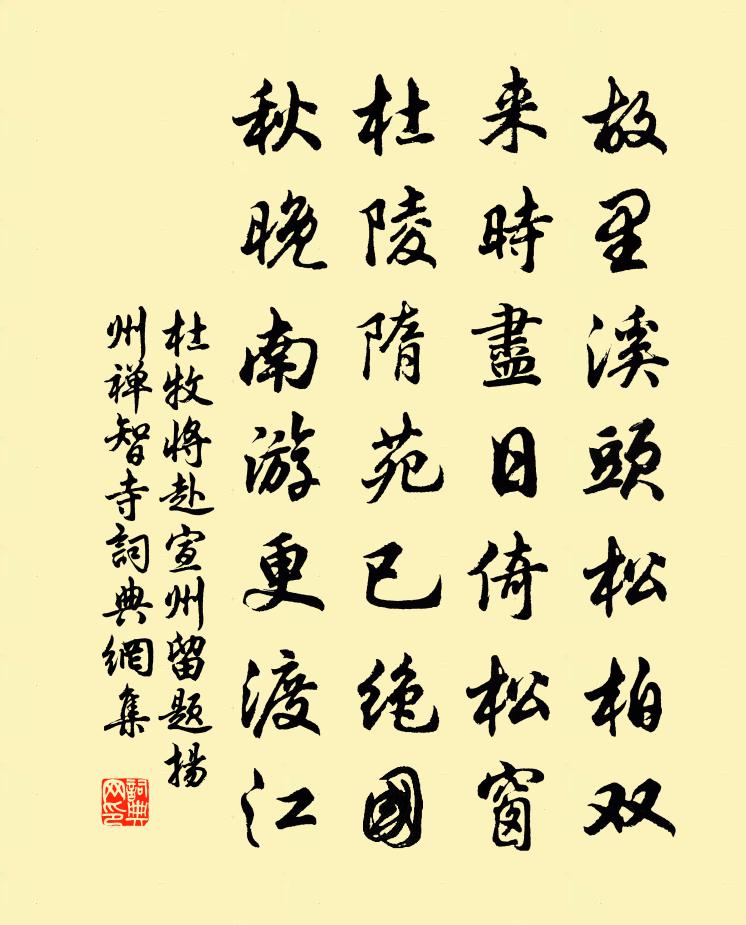 杜牧將赴宣州留題揚州禪智寺書法欣賞