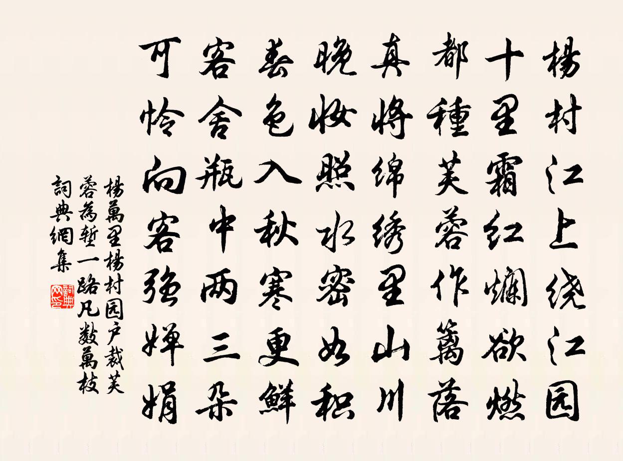 楊村江上繞江園,十里霜紅爛欲燃。都種芙蓉作籬落,真將綿繡里山川。