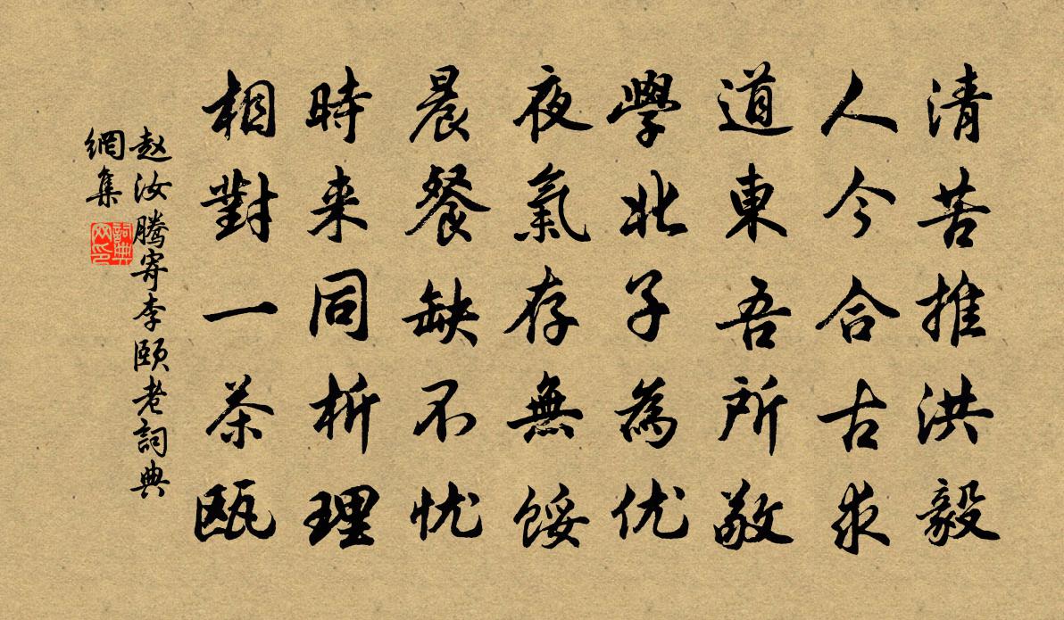詩詞名句歷史字典書法欣賞書法字典國語詞典說文解字康熙字典古漢語字典標 題 作 者 詩 句 寄李頤老作者:趙汝騰 朝代:宋代寄李頤老原文清苦推洪毅,人今合古求。道東吾所敬,學北子為優。夜氣存無餒,晨餐缺不憂。時來同析理,相對一茶甌。詩詞問答問:寄李頤老的作者是誰?答:趙汝騰問:寄李頤老寫於哪個朝代?答:宋代趙汝騰寄李頤老書法欣賞寄李頤老書法作品詩詞推薦金城山李思聰〔宋代〕杏花洞天路崎嶇,曾見千年百斛奴。試問金城山里事,只言仙境似蓬壺。梅洪咨夔〔宋代〕竹屋茅檐一樹斜,冰霜意氣蓋韶華。有餘不盡如知道,半已青青半尚花。蝶戀花(商調十二首之一)佚名〔宋代〕夫傳奇者,唐元微之所述也。以不載於本集而出於小說,或疑其非是。今觀其詞,自非大手筆孰能與於此。至今士次韻和胡仲方正月二十五日雪項安世〔宋代〕減卻濠溝厚卻城,散如絲忽聚如京。夜兼風勢千江立,曉借林花萬象榮。恃我柴門高臥穩,敵君竹閣醉吟清。長歌從鄭少嘉求貢綱余茶張栻〔宋代〕貢包余璧小盤龍,獨占人間第一功。乞與清風行萬里,為君一洗瘴雲空。還譚鳴玉北枝稿劉黻〔宋代〕天下惟此花,渠町南與北。有翁號北枝,似惋宇宙塞。紛紛紅紫蹊,陽春豈不力。枝北春雖遲,今古冰霜特。寄獻淮陽陳相公宋祁〔宋代〕翹才閣下舊賓游,偶得魚符擁使輈。本自爐鎚依大冶,敢言鎗腳是鄰州。頻年廢忘拋黃卷,此地優閒養白頭。漫引偈頌一百零二首釋紹曇〔宋代〕千聖靈樞,妙在轉處。爍盡玄微,更進一步,莫來攔我撲門路。公子行韓琮〔唐代〕紫袖長衫色,銀蟬半臂花。帶裝盤水玉,鞍繡坐雲霞。別殿承恩澤,飛龍賜渥窪。控羅青褭轡,鏤象碧熏葩。意氣十二月九日雪融夜起達旦魏了翁〔宋代〕遠鍾入枕雪初晴,衾鐵稜稜夢不成。起傍梅花讀周易,一窗明月四檐聲。寄贈竹隱李聘君李昴英〔宋代〕圓沙有此隱君子,短褐枯筇自一丘。安樂窩中寬宇宙,逍遙遊處眇公侯。逢人皆喜一無忤,於世何求百不憂。種德州將和丁內翰寄題延州龍圖新開柳湖五闋宋祁〔宋代〕湖中新水照春輝,綠遍垂楊千萬枝。此地得非名細柳,暖煙偏照亞夫旗。送周介之學士通判定州文同〔宋代〕紫垣之東藩,群宇合四翼。天家積圖只,編簡何萬億。介之才藝選,此地典文墨。縱橫四部內,騁驟千古力。久為趙彥膚修撰輓辭陸游〔宋代〕朝路英聲早,宗盟宿望尊。讌談推醞藉,大筆擅雄渾。許國心猶壯,安邊策具存。淒涼故時客,痛哭望秋原。金華聖者贊釋崇岳〔宋代〕千兵不若一將,伎倆何如帳樣。不識古佛定光,稽首豬頭和尚。菩薩蠻朱淑真〔宋代〕也無梅柳新標格,也無桃李妖嬈色。一味惱人香,群花爭敢當。情知天上種,飄落深岩洞。不管月宮寒,將枝比並宿張正字別業李九齡〔唐代〕茅屋蕭寥煙暗後,松窗寂歷月明初。此時誰念孤吟客,唯有黃公一帙書。蝶戀花石耆翁〔宋代〕半夜六龍飛海嶠。滉漾鰲波,露出珊瑚小。玉粉枝頭春意早。東風未綠瀛洲草。姑射仙人真竊窕。淨練明妝,如伴寄衛叔剛楊維楨〔元代〕二月春光如酒濃,好懷每與故人同。杏花城郭青旗雨,燕子樓台玉笛風。錦帳將軍烽火外,鳳池仙客碧雲中。憑誰春日山居好十首舒岳祥〔宋代〕春日山居好,尋花急占先。騎驢投酒市,領鶴上漁船。薄暖還揮扇,輕寒未替綿。清和時候正,麗日牡丹天。名句推薦是故天地不昭昭,大水不潦潦,大火不燎燎,王德不堯堯者,乃千人之長也。墨子《墨子·01章 親士》 牧童騎黃牛,歌聲振林樾。袁枚《所見》 望極春愁,黯黯生天際。柳永《蝶戀花·佇倚危樓風細細》 君者,舟也;庶人者,水也。水則載舟,水則覆舟。荀子《荀子·哀公》 滿堂唯有燭花紅,歌且從容,杯且從容。辛棄疾《一剪梅·中秋元月》 白頭搔更短,渾欲不勝簪。杜甫《春望》 夫孝,百行之冠,眾善之始也。范曄《後漢書·列傳·劉趙淳于江劉周趙列傳》 古戍三秋雁,高台萬木風。屈大均《魯連台》 平明日出東南地,滿磧寒光生鐵衣。李益《度破訥沙二首·其二 / 塞北行次度破訥沙》 刷羽同搖漾,一舉還故鄉。沈約《詠湖中雁》