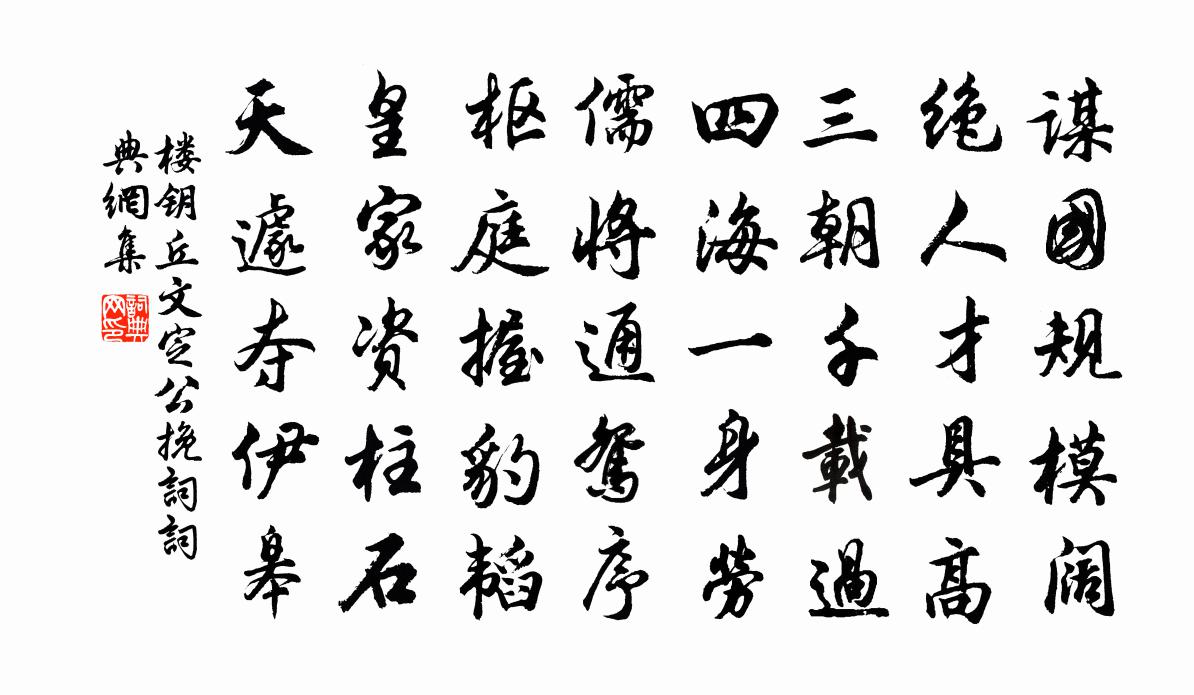 詩詞名句歷史字典書法欣賞書法字典國語詞典說文解字康熙字典古漢語字典標 題 作 者 詩 句 丘文定公輓詞作者:樓鑰 朝代:宋代丘文定公輓詞原文謀國規模闊,絕人才具高。三朝千載過,四海一身勞。儒將通鴛序,樞庭握豹韜。皇家資柱石,天遽奪伊皋。詩詞問答問:丘文定公輓詞的作者是誰?答:樓鑰問:丘文定公輓詞寫於哪個朝代?答:宋代樓鑰丘文定公輓詞書法欣賞丘文定公輓詞書法作品詩詞推薦水調歌頭(壽湖南胡太初)王義山〔宋代〕沆瀣金莖露,清潔玉壺冰。分明昨夜,光見南極老人星。山甫秀鍾崧岳,傳說上符箕尾,造物為時生。一代詞科伯潞守歐陽叔弼召登鼎軒暑飲李復〔宋代〕崇軒寫物體模分,爽拔風攜顥氣升。玉粲消憂思眺聽,本初持飲滌煩蒸。金烏不轉銅壺箭,碧碗時分玉井冰。每見佳人照鏡張文恭〔唐代〕倦采蘼蕪葉,貪憐照膽明。兩邊俱拭淚,一處有啼聲。泊樟鎮楊萬里〔宋代〕北地三接浙,重來四肅霜。日斜秋樹轉,市散暮船忙。波卷清中白,霞翻紫外黃。汀沙渾換卻,不記舊圓方。見章得一詩因次其韻趙孟頫〔元代〕水色清漣日色黃,梨花淡白柳花香。即看時節催人事,更覺春愁惱客腸。無酒難供陶令飲,從人皆笑酈生狂。城南題湖北唐憲桂林義學楊萬里〔宋代〕梅花五嶺八桂林,青羅帶繞碧玉簪。祥刑使都兩唐裔,親領諸生到洙泗。七星岩畔築齋房,獨秀峰尖作筆床。買書頌證道歌證道歌釋印肅〔宋代〕自從認得曹溪路,鳥道征空步坦途。攫霧拿雲風亦怕,降摩事畢念蘇盧。次韻酬微之贈池紙並詩王安石〔宋代〕微之出守秋浦時,椎冰看搗萬穀皮。波工龜手咤今樣,魚網肯數荊州池。霜紈奪色賈不售,虹玉喪氣山無輝。方船蘇子容母陳夫人輓詞蘇軾〔宋代〕蘇陳甥舅真冰玉,正始風流起頹俗。夫人高節稱其家,凜凜寒松映修竹。雞鳴為善日日新,八十三年如一晨。豈惟江城子張泌〔唐代〕碧闌乾外小中庭,雨初晴,曉鶯聲。飛絮落花,時節近清明。睡起捲簾無一事,勻面了,沒心情。浣花溪上見卿卿詠史上周公陳普〔宋代〕仲尼齒髮正強時,夜夜神交似故知。話到子孫郊禘處,幾回對榻共攢眉。贈羅浮易鍊師楊衡〔唐代〕海上多仙嶠,靈人信長生。榮衛冰雪姿,咽嚼日月精。默書絳符遍,晦步鬥文成。翠髮披肩長,金蓋凌風輕。曉籟三月初五日孟君復王元俞治中十人同會分韻得方回〔宋代〕春光九十日,半為風雨欺。人生一百年,懷抱無好時。茲辰復何辰,晴煙霏柳絲。佳友可我意,閒愁忽如遺。座客上潯陽還都道中作詩鮑照〔南北朝〕昨夜宿南陵。今旦入蘆洲。客行惜日月。崩波不可留。侵星赴早路。畢景逐前儔。鱗鱗久雲起。獵獵晚風遒。騰沙臨江仙閻選〔唐代〕雨停荷芰逗濃香,岸邊蟬噪垂楊。物華空有舊池塘。不逢仙子,何處夢襄王?珍簟對欹鴛枕冷,此來塵暗淒涼。欲送朝長史赴荊南舊幕盧綸〔唐代〕元瑜思舊幕,幾夜夢旌旃。暑退蒹葭雨,秋生鼓角天。月明三峽路,浪里九江船。□□□□□,□□□□□。夜警趙濟〔宋代〕滿城警柝喧深夜,半壁青燈動客心。烽火未除眠不得,欲將長劍倚危岑。聞吳中米價甚貴二十韻陸游〔宋代〕千錢得斗米,一斛當萬錢。嗟汝蚩蚩民,何恃以自全?我欲告父老:食為汝之天;勿結迎神社,勿飾杭湖船;築室早題趙蕃〔宋代〕夜雨曉猶濕,曉天晴未分。澄波靜如練,秀野綠於雲。禽語無殊聽,鄉音有異聞。要知皆可隱,鳥獸詎同群。讀香奩集詩戲效其體陸游〔宋代〕金鋪一閉幾春風,咫尺心知萬里同。麝枕何曾禳夢惡,玉壼空解貯啼紅。畫愁延壽丹青誤,賦欠相如筆墨工。一事名句推薦上苑風煙好,中橋道路平。白居易《洛橋寒食日作十韻》 自是荷花開較晚,孤負東風。幼卿《浪淘沙·極目楚天空》 士不以利移、不為患改。劉向《說苑·談叢》 聚散匆匆,雲邊孤雁,水上浮萍。劉過《柳梢青·送盧梅坡》 不見年年遼海上,文章何處哭秋風?李賀《南園十三首》 鵝湖山下稻粱肥,豚柵雞棲半掩扉。王駕《社日》 更滿眼、殘紅吹盡,葉底黃鸝自語。韓元吉《薄倖·送安伯弟》 如夢,如夢,殘月落花煙重。李存勖《如夢令·曾宴桃源深洞》 夜來能有幾多寒,已瘦了、梨花一半。黃升《鵲橋仙·春情》 離愁漸遠漸無窮,迢迢不斷如春水。歐陽修《踏莎行·候館梅殘》