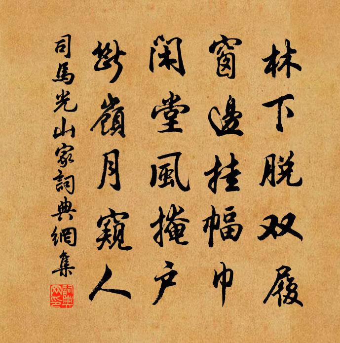 詩詞名句歷史字典書法欣賞書法字典國語詞典說文解字康熙字典古漢語字典標 題 作 者 詩 句 山家作者:司馬光 朝代:宋代山家原文林下脫雙履,窗邊掛幅巾。閒堂風掩戶,斷嶺月窺人。詩詞問答問:山家的作者是誰?答:司馬光問:山家寫於哪個朝代?答:宋代問:司馬光的名句有哪些?答:司馬光名句大全司馬光山家書法欣賞山家書法作品詩詞推薦蘇幕遮 贈同友王哲〔元代〕這華宗,能順我。淨意清心,認取逍遙臥。日日凡塵仍便躲。管取教公,快樂無摧挫。早回頭,休漫過。滅盡無明惜花來鵠〔唐代〕東風漸急夕陽斜,一樹夭桃數日花。為惜紅芳今夜裡,不知和月落誰家。庚申冬壽秋崖先生吳龍翰〔宋代〕瑞宿當年降世間,祁山深處著仙壇。梅開冰壑珊瑚瘦,崖聳晴空碧玉寒。清氣胚成龜鶴相,丹田煉就虎龍蟠。待教孟子憂憂喜喜陳普〔宋代〕骨肉真情出不期,捐階蓋井我何知。風埃滿目間來往,天性曾無一點疵。贈魏野釋宇昭〔宋代〕別業唯栽竹,多間亦好奇。試泉尋寺遠,買鶴到家遲。藥就全離母,詩高祇教兒。未能終住此,共有海山期。洪鐘歌釋印肅〔宋代〕昭文昭文施一鍾,懸空隨叩警盲聾。圓音不斷周沙界,純體金剛空不空。雖含響,擊即通,十方諸佛應聲中。天龍廣州天慶觀眾妙堂東坡井泉銘李昴英〔宋代〕老經雲,坡記成。名非古,堂遂輕。兩翁像,久晦冥。偉方公,舊貫仍。取彼欄,護此泓。新作蓋,環以銘。遺千贈疊山先生游古意〔宋代〕滿腔忠孝有天知,不管人間事已非。萬里乾坤雙草履,百年身世一 * 。行藏自信床頭易,臥病惟餐隴首薇。儻過賀王伯愚登第葉寘〔宋代〕先君有女嘗擇對,玉雪王郎真可人。連榜舍升俱伯氏,中興家世最名臣。迴翔璧水十年舊,踴躍龍門三月新。從此早睡釋文珦〔宋代〕天寒常早睡,不待日光斂。恐礙山猿入,柴門未嘗掩。落葉打窗鳴,枕間疑雨點。起視西峰頭,月殘星閃閃。石瓮寺權德輿〔唐代〕石瓮靈泉勝寶井,汲人回掛青絲綆。廚煙半逐白雲飛,當晝老僧來灌頂。游近村陸游〔宋代〕行歷茶岡到藥園,卻從釣瀨入樵村。半衰半健意蕭散,不雨不晴天晏溫。薯蕷傍籬寒引蔓,菖蒲絡石瘦生根。參差古鏡詞上劉侍郎貫休〔唐代〕至寶不自寶,照古還照今。仙人手胼胝,寥泬秋沈沈。不是十二面,不是百鍊金。若非八彩眉,不可輒照臨。即歸早行示同舟趙蕃〔宋代〕了了晴山見,紛紛宿霧空。樵歸婦腰斧,漁罷叟收筒。但取登臨適,何須吟嘯工。平生釣台路,明日與君同。魚石二首孔武仲〔宋代〕人疑魚托石,我謂石為魚。持以贈君子,端能辟蠹書。無情逐波浪,有此璠與璵。坐得江湖意,蕭然亦起予。瑤台聚八仙/新雁過妝樓張炎〔宋代〕帶雨春潮。人不渡、沙外曉色迨遙。自橫深靜,誰見隔柳停橈。知我知魚未是樂,轉篷閒趁白鷗招。任風飄。夜來杏花天(春思)吳禮之〔宋代〕悶來憑得闌乾暖。自手引、朱簾高卷。桃花半露胭脂面。芳草如茵乍展。煙光散、湖光瀲灩。映綠柳、黃鸝巧囀。息心顧逢〔宋代〕詩酒無窮樂,功名陌上塵。息心長壽藥,瞑目後生身。白日一回夢,青山萬古春。不知天地里,誰是悟空人。夜合花(洞天)史浩〔宋代〕三島煙霞,十洲風月,四明古號仙鄉。縈紆雉堞,中涵一片湖光。繞岸異卉奇芳。跨虹橋、隱映垂楊。玉樓珠閣,江行寄遠李白〔唐代〕刳木出吳楚,危槎百餘尺。疾風吹片帆,日暮千里隔。別時酒猶在,已為異鄉客。思君不可得,愁見江水碧。名句推薦風含翠篠娟娟淨,雨裛紅蕖冉冉香。杜甫《狂夫》 爐火照天地,紅星亂紫煙。李白《秋浦歌十七首》 雪粉華,舞梨花,再不見煙村四五家。關漢卿《大德歌·冬景》 雙星何事今宵會,遺我庭前月一鉤。德容《七夕二首·其一》 兒童見說深驚訝,卻問何方是故鄉。殷堯藩《同州端午》 樂易者常壽長,憂險者常夭折。荀子《荀子·榮辱》 閒鷺棲常早,秋花落更遲。錢起《谷口書齋寄楊補闕》 燕子歸來愁不語。舊巢無覓處。李好古《謁金門·花過雨》 長安陌上無窮樹,唯有垂楊綰別離。劉禹錫《楊柳枝詞九首》 百歲落半途,前期浩漫漫。李白《登敬亭山南望懷古贈竇主簿》