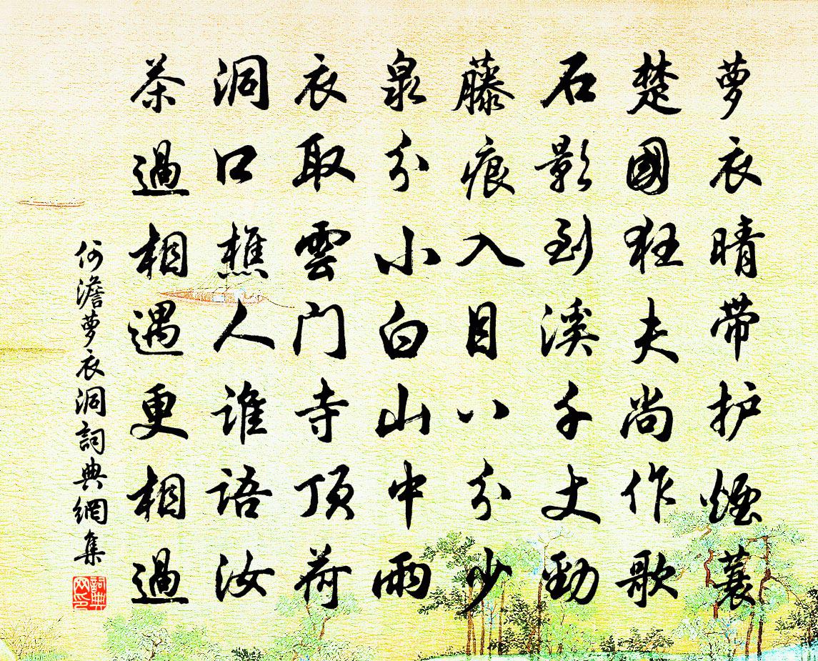 詩詞名句歷史字典書法欣賞書法字典國語詞典說文解字康熙字典古漢語字典標 題 作 者 詩 句 蘿衣洞作者:何澹 朝代:宋代蘿衣洞原文蘿衣晴帶護煙蓑,楚國狂夫尚作歌。石影到溪千丈勁,藤痕入目八分少。泉分小白山中雨,衣取雲門寺頂荷。洞口樵人誰語汝,茶過相遇更相過。詩詞問答問:蘿衣洞的作者是誰?答:何澹問:蘿衣洞寫於哪個朝代?答:宋代何澹蘿衣洞書法欣賞蘿衣洞書法作品詩詞推薦淨髮釋慧開〔宋代〕鋒芒未露鬼神號,能劃群牛頂{左寧右頁}毛。四海聱頭俱按下,豈容存著一織毫。鷓鴣天范成大〔宋代〕仗下儀客筆下文。天風駕鶴住仙真。榴花三日迎端午,蕉葉千春紀誕辰。經圀志,立朝身。暫煩高手活吳民。明朝峴山亭易士達〔宋代〕峴山亭是昔人非,忍讀羊公墮淚碑。回首山翁花下處,淒淒芳草晚風悲。山居十二首淳藏王〔宋代〕漁父子歌甘露冷,擬寒山詠法燈詩。深雲莫謂燕無人聽,萬像森羅歷歷知。夢韓咎咎王季夷諸公陸游〔宋代〕積雪欲照夜,老雞方唱晨。諸公逝已久,幽夢忽相親。話舊殷懃意,追歡見在身。悠然又驚覺,撫枕一悲辛。和余汝霖雪七絕胡寅〔宋代〕日日東園探早梅,那知一夕萬林開。君詩還似揚州句,掃盡因風柳絮才。題城南書院三十四詠張栻〔宋代〕曉來天氣便清新,獨倚闌乾正暮春。花落花開鶯自語,東風吹水細鱗鱗。道中即事方岳〔宋代〕上到春山頂{左寧右頁}頭,更攜煙雨入吾州。梅花便作鄉人看,飛落酒杯相勸酬。和題落筆峒許源〔宋代〕落筆古仙峒,天開一段奇。林深雲掛搭,石亂路委蛇。彷佛禪僧骨,糊塗墨客詩。何當了公事,相與問仙期。遠別曲釋文珦〔宋代〕問君保所之,執手立前墀。可堪為遠別,都不道回期。檐間蠨蛸蟲,似知妾心悲。 * 結離恨,千絲仍萬絲。木蘭花慢·可憐今夕月辛棄疾〔宋代〕中秋飲酒將旦,客謂前人詩詞有賦待月無送月者,因用《天問》體賦。可憐今夕月,向何處,去悠悠?是別有人間柳下漁次韻林景熙〔宋代〕瓦甌一醉萬事了,醒來然竹清溪曉。半蓑煙雨披春寒,堤上落紅已如掃。荒磯白鳥無離愁,明月清風滿幽抱。卻鄰雁張耒〔宋代〕知時避就物之難,千里蕭蕭振羽翰。水國稻收朝食乏,海天霜重夜飛寒。煙雲秋去南山暖,風日春歸朔野寬。九萬別素質/憶瑤姬王質〔宋代〕一個茅奄,三間七架。兩畔更添兩廈。倒坐雙亭平分,扶闌兩下。門前數十丘稏。塍外更百十株桑柘。一溪活水生查子洪适〔宋代〕七月到盤洲,枕簟新涼早。岸曲側黃葵,沙際排紅蓼。團團歌扇疏,整整爐煙裊。環坐待橫參,要乞珠絲巧。松梢詩陳舜俞〔宋代〕朽屋延暗暝,鑿明快吾魄。西墉偶面勢,開牖遂生白。茲焉玩圖史,亦以置床簀。豈能來清風,猶苦對殘赫。炎天踏潮歌劉禹錫〔唐代〕屯門積日無回飆,滄波不歸成踏潮。轟如鞭石矻且搖,亘空欲駕黿鼉橋。驚湍蹙縮悍而驕,大陵高岸失岧嶢。四邊與道原過西莊遂游寶乘王安石〔宋代〕周顒宅作阿蘭若,婁約身歸窣堵坡。今日隱侯孫亦老,偶尋陳跡到煙蘿。破釜邵雍〔宋代〕有一破釜多故舊,掉向空房不照顧。上面{左土右孛}土塵埃生。兩璺到耳連底透。叫得將來錮露人,拈得與他交偈頌三十首釋印肅〔宋代〕三界唯心唯佛解,萬法唯識更誰知。迷悟本無權立化,恰如黃葉止兒啼。涅槃生死猶如夢,十聖三賢是阿誰。有物名句推薦是非只為多開口,煩惱皆因強出頭。佚名《增廣賢文·上集》 曉風不散愁千點,宿雨還添淚一痕。曹雪芹《詠白海棠》 香爐瀑布遙相望,回崖沓嶂凌蒼蒼。李白《廬山謠寄盧侍御虛舟》 荷葉生時春恨生,荷葉枯時秋恨成。李商隱《暮秋獨游曲江》 驚鳥去無際,寒蛩鳴我傍。馬戴《楚江懷古三首》 八月寒葦花,秋江浪頭白。李頎《送劉昱》 今日漢宮人,明朝胡地妾。李白《王昭君二首》 可惜流年,憂愁風雨,樹猶如此!辛棄疾《水龍吟·登建康賞心亭》 秋風蕭瑟天氣涼,草木搖落露為霜,群燕辭歸鵠南翔。曹丕《燕歌行二首·其一》 寒蟬淒切,對長亭晚,驟雨初歇。柳永《雨霖鈴·寒蟬淒切》