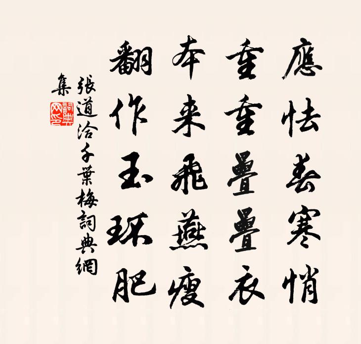 詩詞名句歷史字典書法欣賞書法字典國語詞典說文解字康熙字典古漢語字典標 題 作 者 詩 句 千葉梅作者:張道洽 朝代:宋代千葉梅原文應怯1~1春1~1寒悄,重重疊疊衣。本來飛燕瘦,翻作玉環肥。詩詞問答問:千葉梅的作者是誰?答:張道洽問:千葉梅寫於哪個朝代?答:宋代張道洽千葉梅書法欣賞千葉梅書法作品詩詞推薦夜夜曲曹勛〔宋代〕舞衣疊翡翠,海月掛珊瑚。香滿流蘇幄,相迎問醉無。暑雨袁說友〔宋代〕獵獵蒲欹岸,斑斑蘚漬牆。檐低泣蛛網,葉落濺蜂房。西嶂暮凝色,北窗新送涼。晚來池上過,風擘藕花香。攝生吟邵雍〔宋代〕握固如嬰兒,作氣如壯士。二者非自然,皆出不容易。心為身之主,志者氣之師。沉珠於深淵,養自己天地。再用韻十首楊公遠〔宋代〕孤竹赤松子,定交泉石間。不關渠勢利,落得自蕭閒。畫寫景中景,雲分山外山。興來時散策,興盡便知還。朝謁太清宮九首真宗〔宋代〕獨龍之聖,降生萬鄉。教流清淨,道符混茫。大君肅謁,盛公允藏。森羅羽術,躬牙蕭鄉。簪紱濟濟,鍾石洋洋。登秦郵文游亭天壁亭長歌王奕〔宋代〕湖天澹澹湖水碧,湖風冉冉湖雲收。湖白幾頃菰米地,湖汊幾摺蘆花洲。幾千萬劫走盡夜,三十六鏡磨春秋。江南月桂堂喻良能〔宋代〕月桂堂何有,池清桂影橫。畫圖寧辦此,玉斧巧修成。入夜境逾妙,才秋風又生。饒陽岩石下,隱約欠分明。題徐明叔海舟笛圖王洋〔宋代〕莫愛一掬水,海闊觀狂瀾。莫愛手中月,空明海上山。人生適意貴如此,前度徐郎在千里。噴雲裂石天宇高,夜寒夜宿楊,曉起見雪楊萬里〔宋代〕茅檐無聲風不起,誤喜夜來雨應止。開門送眼忽心驚,失卻前山萬堆翠。江南只說浙西山,更令著雪與人看。諸峰友人會宿李白〔唐代〕滌盪千古愁,留連百壺飲。良宵宜清談,皓月未能寢。醉來臥空山,天地即衾枕。上元三絕張耒〔宋代〕沽酒壚邊人若市,算商亭下浪連天。張君官況今如此,豈有工夫作醉眠。越州使院竹方乾〔唐代〕莫見凌風飄粉籜,須知礙石作盤根。細看枝上蟬吟處,猶是筍時蟲蝕痕。月送綠陰斜上砌,露凝寒色濕遮門。列仙春來聞故舊多雲亡者作詩示同志曾幾〔宋代〕雁足曾無一字收,有時書到卻生愁。故人疊疊半黃壤,今我蕭蕭全白頭。大抵百年皆逝水,可憐萬事只浮漚。朝聞諸公唱和多記經歷之事因感昔游復用元韻凡三蘇頌〔宋代〕朝鞍早過鳳樓西,雨浥輕塵未有泥。頒宴百壺人共醉,演綸雙筆客同攜。紫微舊刻蘭堂閟,朱字新牌藝院題。更識相和歌辭。長門怨張祜〔唐代〕日映宮牆柳色寒,笙歌遙指碧雲端。珠鉛滴盡無心語,強把花枝冷笑看。前調(送趙帥鎮成都)蔡戡〔宋代〕擁節出閩嶠,易鎮上岷山。東西嶮岨,分陝初不在榮觀。痛念兩河未復,獨作中流砥柱,屹若障狂瀾。極目神京遠暇豫歌先秦無名〔先秦〕暇豫之吾吾不如鳥鳥。人皆集於菀。已獨集於枯。詠史上韓信三首陳普〔宋代〕蹀血中原不用驕,論功何似禹乘橇。始終兩漢無留葛,誰與塵編慰寂寥。庭竹李鹹用〔唐代〕嫩綠與老碧,森然庭砌中。坐銷三伏景,吟起數竿風。葉影重還密,梢聲遠或通。更期春共看,桃映小花紅。鳳凰台劉次春〔宋代〕高台寥寞晚雲深,故國山河萬里心。若使當年真鳳見,不教春燕亦巢林。名句推薦莫辭酒味薄,黍地無人耕。杜甫《羌村三首·其三》 千古江山,英雄無覓孫仲謀處辛棄疾《永遇樂·京口北固亭懷古》 山高必有怪,嶺峻卻生精。吳承恩《西遊記·第二十七回》 塞馬一聲嘶,殘星拂大旗。納蘭性德《菩薩蠻·朔風吹散三更雪》 新豐美酒斗十千,鹹陽遊俠多少年。王維《少年行四首》 長風萬里送秋雁,對此可以酣高樓。李白《宣州謝朓樓餞別校書叔雲 / 陪侍御叔華登樓歌》 浮雲暮南征,可望不可攀。杜甫《前出塞九首》 淇園春竹美,軍宴日椎牛。司馬光《送龔章判官之衛州·新及第》 又爭知、一字相思,不到吟邊。王沂孫《高陽台·殘萼梅酸》 言之易,行之難呂不韋《呂氏春秋·論·不苟論》