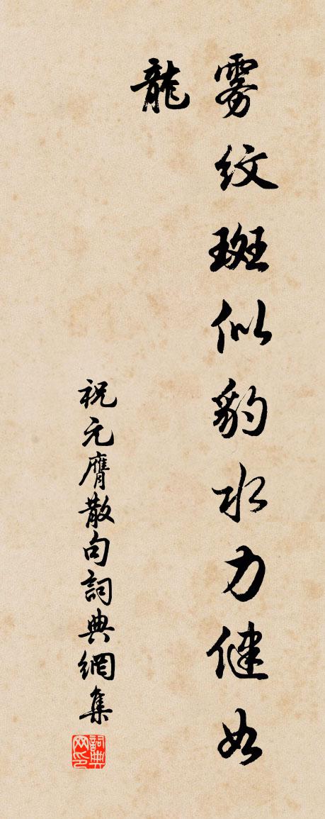 詩詞名句歷史字典書法欣賞書法字典國語詞典說文解字康熙字典古漢語字典標 題 作 者 詩 句 句作者:祝元膺 朝代:唐代句原文霧紋斑似豹,水力健如龍。詩詞問答問:句的作者是誰?答:祝元膺問:句寫於哪個朝代?答:唐代問:句是什麼體裁?答:句祝元膺句書法欣賞句書法作品注釋全唐詩:卷546-10詩詞推薦十一月二十三夜通夕不寐為賦梅詩且懷斯遠成趙蕃〔宋代〕婆娑風月隅,窈窕溪山宅。林園故幽幽,鷗鷺空脈脈。雖雲有逢迎,未易相主客。桃李自成蹊,歲寒知松柏。憶友釋文珦〔宋代〕同人久別離,訊息不曾知。心似長堤柳,千絲又萬絲。喜遷鶯 贈康德機王丹桂〔元代〕宿緣深重。早省悟浮生,都如一夢。壯志回頭,專心入道,塵事豁然驅屏。要脫死生輪轉,認取元來本柄。甚為準偈傾一百六十九首釋智朋〔宋代〕旃檀林,無雜樹。拈出片片皆香,收來枝枝顯露。門頭戶底一打開時如何,吃茶去。下橫山,灘頭望金華山四首楊萬里〔宋代〕篙師只管信船流,不作前灘水石謀。卻被驚湍漩三轉,倒將船尾作船頭。臨江仙 偶成舒遜〔元代〕銀燭光搖秋夜永,一天涼侵詩脾。鳴蟲唧唧漏遲遲。半生春夢裡,彷佛是耶非。萬事破除惟有酒,當歌不飲何如。讀戰國策周麟之〔宋代〕從人為從六國強,橫人為橫六國亡。悲夫不用擯秦計,從以委肉強虎狼。一朝秦甲下函谷,指揮朝魏如群羊。坐令秋晚白居易〔唐代〕煙景淡濛濛,池邊微有風。覺寒蛩近壁,知暝鶴歸籠。長貌隨年改,衰情與物同。夜來霜厚薄,梨葉半低紅。偈頌二十三首釋雲岫〔宋代〕千岩帶雪,萬水生冰。今夜寒極歲極,明朝日新日新。山僧禪床角頭拂子,長時間掛不犯纖塵。信手拈來,春回大春日秦觀〔宋代〕一夕輕雷落萬絲,霽光浮瓦碧參差。有情芍藥含春淚,無力薔薇臥曉枝。離南平晁公溯〔宋代〕晨光慘慘雜微霄,寒水濺濺更斷橋。風隕栗房開紫玉,煙蒙蘿幄疊青綃。官曹已畢三年考,客路深嗟萬里遙。從此丁香結楊 * 〔宋代〕梅雨猶清,冷風乘急,遙送萬絲斜隕。聽水翻雷迅。冒霧濕,但覺衣裘皆潤。亂山煙嶂外,輕寒透、未免強忍。崎錢湖州以箬下酒李蘇州以…酒相次寄到無因同飲聊詠所懷白居易〔唐代〕勞將箬下忘憂物,寄與江城愛酒翁。鐺腳三州何處會,瓮頭一醆幾時同。傾如竹葉盈樽綠,飲作桃花上面紅。莫怪海棠晏殊〔宋代〕昔聞遊客話芳菲,濯錦江頭幾萬枝。縱使許昌詩筆健,可能終古絕妍辭。壺中天慢曾覿〔宋代〕素飈漾碧,看天衢穩送、一輪明月。翠水瀛壺人不到,比似世間秋別。玉手瑤笙,一時同色,小按霓裳疊。天津橋郊行夜歸書觸目陸游〔宋代〕老翁病起厭端居,隨意東西不問途。霜野草枯鷹欲下,江天雲濕雁相呼。空垣破灶逃租屋,青幔紅燈賣酒爐。未畏即事二絕鄭剛中〔宋代〕暮春景物稱山家,屋角團團綠葉遮。薄晚微雲疏過雨,一番小麥顫輕花。偈頌一百六十首釋宗杲〔宋代〕今朝九月初五,天色半晴半十。衲僧鼻孔眼睛,切忌和泥合土。惺惺直是惺惺,靈利不妨靈利。等閒問著十人,五和微之詩二十三首。和新樓北園偶集從孫公度…皆先歸白居易〔唐代〕聞君新樓宴,下對北園花。主人既賢豪,賓客皆才華。初筵日未高,中飲景已斜。天地為幕席,富貴如泥沙。嵇劉曲池荷盧照鄰〔唐代〕浮香繞曲岸,圓影覆華池。常恐秋風早,飄零君不知。名句推薦丹漆不文,白玉不雕佚名《孔子家語·好生》 老去逢春如病酒,唯有,茶甌香篆小簾櫳。辛棄疾《定風波·暮春漫興》 黃河萬里觸山動,盤渦轂轉秦地雷。李白《西嶽雲台歌送丹丘子》 嫁女擇佳婿,毋索重聘;娶媳求淑女,勿計厚奩。朱柏廬《朱子家訓·全文》 雨荒深院菊,霜倒半池蓮。杜甫《宿贊公房》 我來圯橋上,懷古欽英風。李白《經下邳圯橋懷張子房》 去年相送,餘杭門外,飛雪似楊花。蘇軾《少年游·潤州作》 櫪馬苦踡跼,籠禽念遐征。張九齡《秋晚登樓望南江入始興郡路》 我來一長嘆,知是東溪蓮。白居易《京兆府栽蓮》 臨難不顧生,身死魂飛揚阮籍《詠懷其五十三》