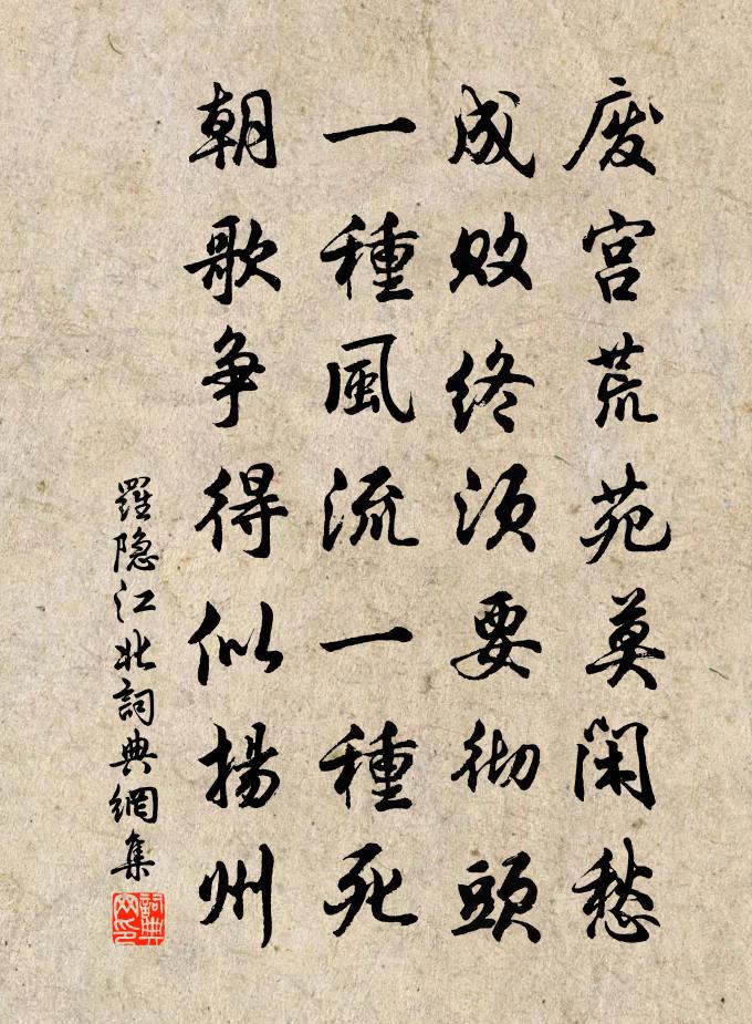 廢宮荒苑莫閒愁,成敗終須要徹頭。一種風流一種死,朝歌爭得似揚州。