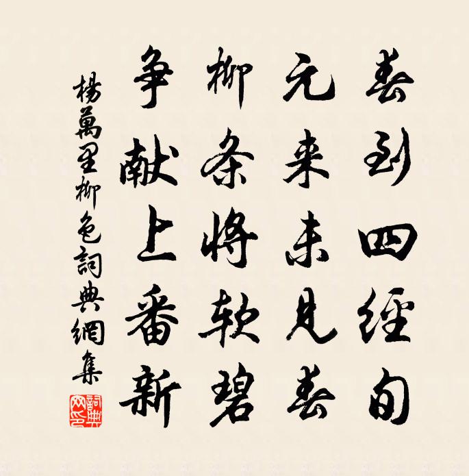 詩詞名句歷史字典書法欣賞書法字典國語詞典說文解字康熙字典古漢語字典標 題 作 者 詩 句 柳色作者:楊萬里 朝代:宋代柳色原文春到四經旬,元來未見春。柳條將軟碧,爭獻上番新。詩詞問答問:柳色的作者是誰?答:楊萬里問:柳色寫於哪個朝代?答:宋代問:楊萬里的名句有哪些?答:楊萬里名句大全楊萬里柳色書法欣賞柳色書法作品詩詞推薦偶書楊簡〔宋代〕無聲之樂聞四方,純德孔明即就將。哀樂相生不可見,衾衾非燠箑非涼。秋毫莫大泰山小,殤子上壽彭祖夭。入門和田家趙希逢〔宋代〕門外無人水滿池,獨□一犬護門幃。驀然踴躍聞聲喜,翁媼犁鋤帶月歸。除夜哭內洪咨夔〔宋代〕密雪疏風客屋穿,幾回除夕伴憂煎。團欒方索日邊飯,契闊已成松底眠。畫火何堪思舊事,理衣誰與管新年。平時清如玉壺冰潘炎〔唐代〕琰玉性惟堅,成壺體更圓。虛心含景象,應物受寒泉。溫潤資天質,清貞稟自然。日融光乍散,雪照色逾鮮。至鑒題崔常侍濟上別墅白居易〔唐代〕求榮爭寵任紛紛,脫葉金貂只有君。散員疏去未為貴,小邑陶休何足雲。山色好當晴後見,泉聲宜向醉中聞。主人春詞七首白玉蟾〔宋代〕晴簾暖幕笑如烘,春事還歸縹緲中。紅藥一枝寒食過,東風萬點海棠空。皇帝閣立春帖子王曾〔宋代〕北陸凝陰盡,千門淑氣新。年年金殿里,實字貼宜春。夢蜀陸游〔宋代〕夢飲成都好事家,新妝執樂雁行斜。赬肩郫縣千筒酒,照眼彭州百馱花。醉帽傾欹歌未闋,罰觥瀲灩笑方嘩。霜鍾句陳宗禮〔宋代〕山川半為蠻煙累,人物多因謫籍香。送游考功將漕夔門七絕洪咨夔〔宋代〕金湯棄去七百里,珠玉走盡六十州。誰生厲階不可問,桔柏江上風颼飀。端午帖子太上皇帝閣周必大〔宋代〕聞道天公近效奇,澗松特長萬年枝。蜿蜒正作祥龍舞,移得清陰覆玉墀。玉泉長老不受承天襯因作頌黃庭堅〔宋代〕達摩從西來,不受梁武襯。卻面少林牆,衣缽一萬貫。寄題向伯元敦止堂胡宏〔宋代〕君不聞伊摯初耕有莘野,祿之弗顧千駟馬。春作秋成隨老農,貧賤甘心萬人下。一朝幡然感三聘,五就成湯五就夏廣陵五題其二次韻子由題平山堂秦觀〔宋代〕棟宇高開古寺間,盡數佳處入雕欄。山浮海上青螺遠,天轉江南碧玉寬。雨檻幽花滋淺淚,風卮清酒漲微瀾。遊人送鍾子崧解官而歸趙蕃〔宋代〕三年簿領淹佳譽,一日江山問舊程。卻恨過從曾未數,浪緣文字許深評。已傳相國知韓愈,安用河南薦賈生。此去水調歌頭張元乾〔宋代〕縹緲九仙閣,壯觀在人間。涼飆乍起,四圍晴黛入闌乾。已過中秋時候。便是菊花重九。為壽一尊歡。今古登高意曉寒陸游〔宋代〕落月銜山口,濃霜倒菊叢。青氈壓衾暖,軟火滿爐紅。起晚書虧課,愁多酒策功。杜陵如昔否,誰與問征鴻?思歸宋祁〔宋代〕心悸真摧櫓,年衰逼異糧。西征何日賦,東走向來狂。遂隔承明謁,虛稱建禮郎。去都魂黯黯,思幄淚浪浪。見{臘前二日見青梅桃花喻良能〔宋代〕潭國寒多春事遲,南來地暖意都迷。城陰雨過臘初近,梅子青青桃滿蹊。登嵩頂李廌〔宋代〕丈夫有奇氣,坐井直鬱郁。朅來古嵩州,攜手登太室。中峰到絕頂,北嶺太峭壁。山河在股掌,帶礪何足述。星分名句推薦生死有命,富貴在天。佚名《增廣賢文·上集》 尊長前,聲要低。低不聞,卻非宜。李毓秀《弟子規·出則弟》 狐死首丘,代馬依風。范曄《後漢書·列傳·班梁列傳》 全一人者德之輕,拯天下者功之重房玄齡《晉書·帝紀·第三章》 春去花還在,人來鳥不驚。王維《畫》 一去隔絕國,思歸但長嗟。李白《千里思》 青鳥不傳雲外信,丁香空結雨中愁。李璟《攤破浣溪沙·手卷真珠上玉鉤》 細看茱萸一笑,詩翁健似常年。張可久《風入松·九日》 迢迢新秋夕,亭亭月將圓。陶淵明《戊申歲六月中遇火》 和戎詔下十五年,將軍不戰空臨邊。陸游《關山月》