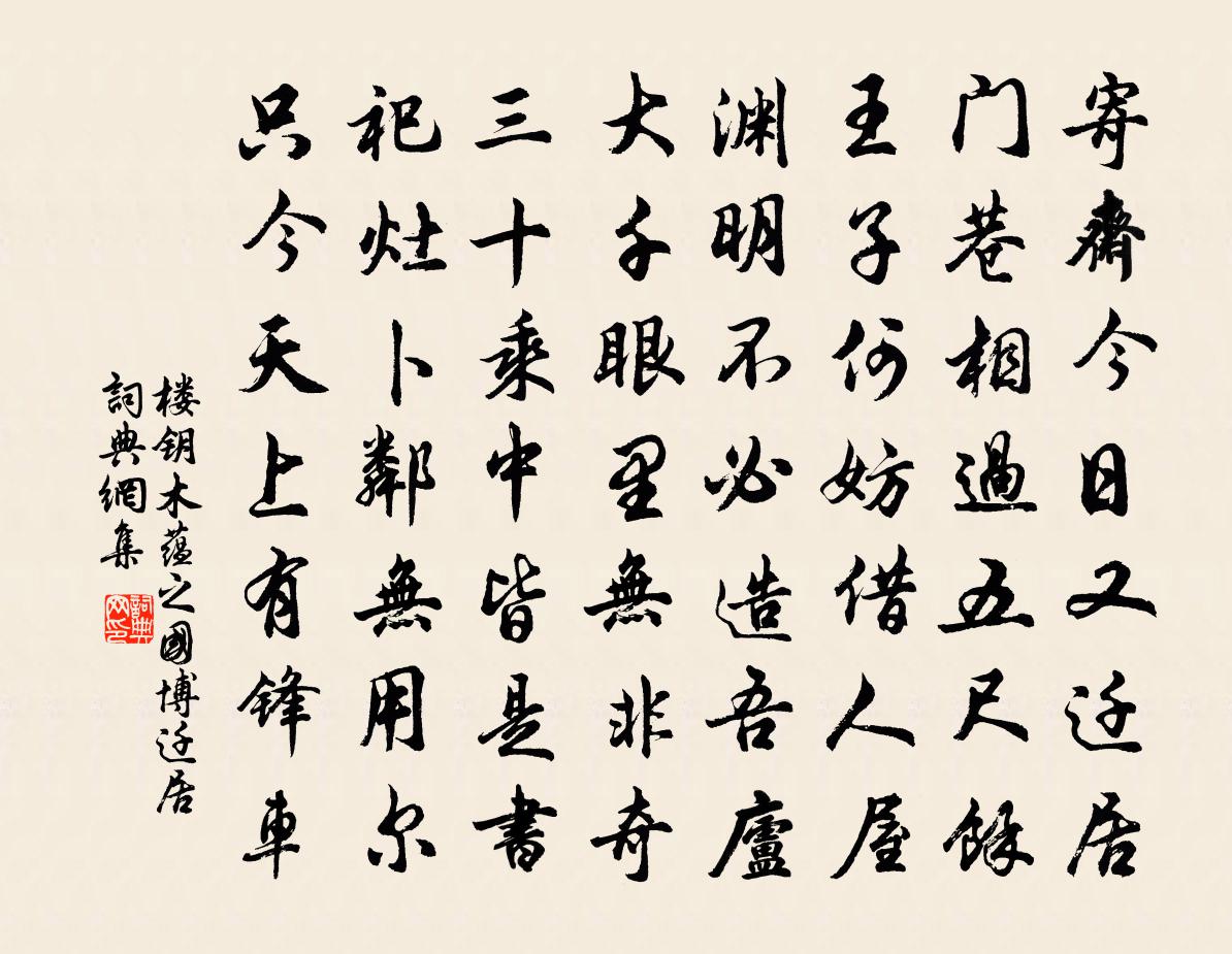 詩詞名句歷史字典書法欣賞書法字典國語詞典說文解字康熙字典古漢語字典標 題 作 者 詩 句 木蘊之國博遷居作者:樓鑰 朝代:宋代木蘊之國博遷居原文寄齋今日又遷居,門巷相過五尺余。王子何妨借人屋,淵明不必造吾廬。大千眼裡無非奇,三十乘中皆是書。祀灶卜鄰無用爾,只今天上有鋒車。詩詞問答問:木蘊之國博遷居的作者是誰?答:樓鑰問:木蘊之國博遷居寫於哪個朝代?答:宋代樓鑰木蘊之國博遷居書法欣賞木蘊之國博遷居書法作品詩詞推薦南郊大禮詩王禹偁〔宋代〕嚴禋禮退一陽生,拚賀歡呼動四溟。聖壽久長南至日,寶圖高大北辰星。九重城闕天將曙,百萬人家戶不扃。知有山坡陀行蘇軾〔宋代〕山坡陀兮下屬江,勢崖絕兮游波所盪如頹牆。松茀律兮百尺旁,拔此驚葛之。上不見日兮下可依,吾曳杖兮吾僮亦歸鉛山正叔復用前韻和答之陳文蔚〔宋代〕斂藏先用肅如秋,次第陽和遍九州。歲月正緣閒里度,紛囂那得靜中游。明知與點有真樂,未足希顏卻自愁。諷詠旅遊賈島〔唐代〕此心非一事,書札若為傳。舊國別多日,故人無少年。空巢霜葉落,疏牖水螢穿。留得林僧宿,中宵坐默然。讀秦始本紀釋智圓〔宋代〕縱慾勞民殊未已,阿房望夷相次想。後來風俗昧其由,妄說秦皇能役鬼。奉酬襲美苦雨見寄陸龜蒙〔唐代〕松篁交加午陰黑,別是江南煙靄國。頑雲猛雨更相欺,聲似虓號色如墨。茅茨裛爛檐生衣,夜夜化為螢火飛。螢飛次韻和王鞏六首蘇軾〔宋代〕少年帶刀劍,但識從軍樂。老大服犁鋤,解佩付熔鑠。雖無獻捷功,會賜力田爵。敲冰春搗紙,刈葦秋織箔。櫟林觀諸北子射石孫七齡亦能二十四步四十的方岳〔宋代〕飽聞吾季藝穿楊,試手春風百步強。赤白羽飛低日月,東西朋立凜冰霜。共觀棲鵠如環堵,亦笑童烏敢擅場。莫計白珽寄詩次韻見意陳著〔宋代〕江乾風雨別,君住我來回。兩地夢相覓,十年書一來。字參老未到,詩放晚唐開。直要吟成史,掃清塵世埃。送殷秀才南遊孟郊〔唐代〕詩句臨離袂,酒花薰別顏。水程千里外,岸泊幾宵間。風葉亂辭木,雪猿清叫山。南中多古事,詠遍始應還。元夕立春喜晴於是郡人久不出矣葉適〔宋代〕艾褐家紬闊闊裁,抱孫攜子看燈來。余甘暫棄從教覓,莫斗機心漫自猜。奉和聖制登太行山中言志應制蘇頲〔唐代〕北山東入海,馳道上連天。順動三光注,登臨萬象懸。俯觀河內邑,平指洛陽川。按蹕夷關險,張旗亘井泉。曉岩出城至呂公亭按視修堤陸游〔宋代〕翠靄橫山澹日升,孤亭聊借曲欄憑。霜威漸重江初縮,農事方休役可興。重阜護城高歷歷,千夫在野築登登。寓公偈傾一百六十九首釋智朋〔宋代〕齊進退,正紀綱。提向上事,建光明幢。居擬蘇武四首汪元量〔宋代〕黃鶴一遠舉,千年方始歸。眾鳥念其群,哀鳴亦相依。彼美雙鴛鴦,一旦生乖離。幸有盈尊酒,聊以與子違。請歌送曾谹父還朝十首曹勛〔宋代〕借寇何能共此邦,離懷未易寸心降。惟將老淚逐梅雨,流入玉溪同一江。南塘歸途錢時〔宋代〕岩花訊息晚來風,透出長林萬萬重。一句好詩拈不出,乾坤都屬廣寒宮。廬陵劉兄焱袖詩編稿相訪借所和施從可唱酬韻程公許〔宋代〕清愁如海渺無邊,強整衰容傍酒船。若許白鷗同保社,五湖秋水碧於天。三月三日曲江侍宴應制王維〔唐代〕萬乘親齋祭,千官喜豫游。奉迎從上苑,祓禊向中流。草樹連容衛,山河對冕旒。畫旗搖浦漵,春服滿汀洲。仙籞余給事輓詞樓鑰〔宋代〕烏府仍螭陛,銀台更掖垣。事幾無弗論,外似不能言。厚德鎮浮薄,平心剸劇煩。用才殊未盡,無地可招魂。名句推薦故父母、學、君三者,莫可以為治法。墨子《墨子·04章 法儀》 清晨入古寺,初日照高林。常建《題破山寺後禪院》 夢裡相思,故國王孫路。陳子龍《點絳唇·春日風雨有感》 觀其交遊,則其賢不肖可察也管仲《管子·權修》 賢者以其昭昭,使人昭昭;今以其昏昏,使人昭昭。孟子《孟子·盡心章句下·第二十節》 長者立,幼勿坐。長者坐,命乃坐。李毓秀《弟子規·出則弟》 若有知音見采,不辭遍唱陽春。晏殊《山亭柳·贈歌者》 不種閒花,池亭畔、幾竿修竹。陸容《滿江紅·詠竹》 春眠不覺曉,處處聞啼鳥。孟浩然《春曉》 綠蓑江上秋聞笛,紅袖樓頭夜倚欄。曹雪芹《香菱詠月·其三》