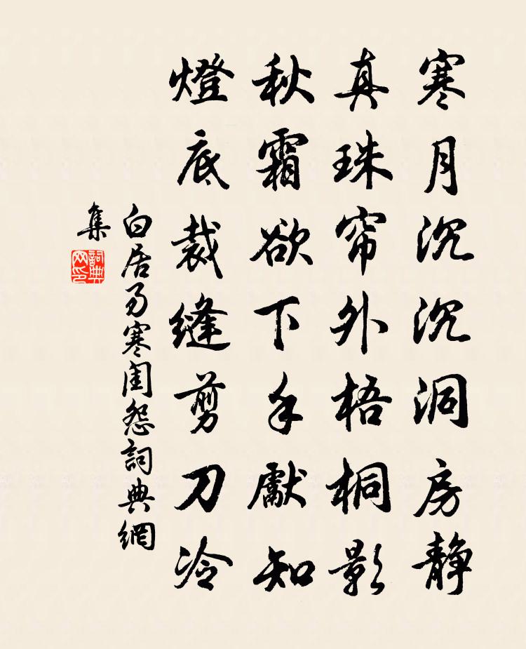 洞房,猶言深屋,在很多進房屋的後部,通常是富貴人家女眷所居。居室本已深邃,又被寒冷的月光照射著,所以更見幽靜。帘子稱之為真珠簾,無非形容其華貴,與上洞房相稱,不可呆看。洞房、珠簾,都是通過描寫環境以暗示其人的身分。“梧桐影”既與上文“寒月”相映,又暗逗下文“秋霜”,因無月則無影,而到了秋天,樹中落葉最早的是梧桐,所謂“一葉落而知夭下秋”。前兩句把景寫得如此之冷清,人寫得如此之幽獨,就暗示了題中所謂寒閨之怨。