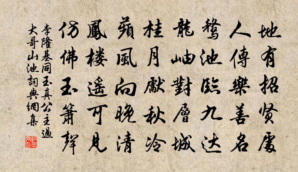 詩詞名句歷史字典書法欣賞書法字典國語詞典說文解字康熙字典古漢語字典標 題 作 者 詩 句 同玉真公主過大哥山池作者:李隆基 朝代:唐代同玉真公主過大哥山池原文地有招賢處,人傳樂善名。鶩池臨九達,龍岫對層城。桂月先秋冷,蘋風向晚清。鳳樓遙可見,仿佛玉簫聲。詩詞問答問:同玉真公主過大哥山池的作者是誰?答:李隆基問:同玉真公主過大哥山池寫於哪個朝代?答:唐代李隆基同玉真公主過大哥山池書法欣賞同玉真公主過大哥山池書法作品注釋全唐詩:卷3_15詩詞推薦長蘆舟中夜坐尹廷高〔元代〕故國五千里,孤帆四十程。客懷偏浩蕩,鄉夢不分明。萬折河流曲,三更斗柄橫。不眠方宴坐,野寺又鐘聲。贄鄂帥張仕簡陽枋〔宋代〕八牖玲瓏主理天,復齋心印妙親傳。化爐點處金非鐵,吏盆清余否亦賢。吠息蒹蘆湖外月,炊生榆柳灶中煙。水浮贈李陽孫晏殊〔宋代〕不忍與君別,憐君仁義人。三年官滿後,依舊一家貧。答僧釋永安〔宋代〕汝問西來意,且過這邊立。昨夜三更時,雨要虛空濕。電影忽然明,不似蚰蜒急。舟上望九華山董嗣杲〔宋代〕雪殘半積陽山磯,大江雲涌濤頭飛。九峰不受夕暉掩,杜牧一亭空翠微。賦得雨後花元稹〔唐代〕紅芳憐靜色,深與雨相宜。餘滴下纖蕊,殘珠墮細枝。浣花江上思,啼粉鏡中窺。念此低回久,風光幸一吹。岳陽樓江為〔唐代〕倚樓高望極,展轉念前途。晚葉紅殘楚,秋江碧入吳。雲中來雁急,天末去帆孤。明月誰同我,悠悠上帝都。送趙介之赴舂陵十首彭龜年〔宋代〕賦拙君能傳,政拙君當繼。為問舂陵人,巧者竟誰似。長門怨吳少微〔唐代〕月出映層城,孤圓上太清。君王眷愛歇,枕席涼風生。怨咽不能寢,踟躕步前楹。空階白露色,百草寒蟲鳴。念昔鵲橋仙 贈可行弟許有壬〔元代〕花香滿院,花陰滿地。夜靜月明風細。南坡一室小如舟,都斂盡、山林清致。竹簾半卷,柴門不閉。好個暮春天氣滿庭芳 贈出家王處一〔元代〕厭貴辭榮,甘貧慕道,謙和柔弱行藏。通真內煉。隨步變清涼。一點靈空頓曉,明顯現、千古嘉祥。因緣濟,玉陽【中呂】紅繡鞋_次韻劍擊西張可久〔元代〕次韻劍擊西風鬼嘯,琴彈夜月猿號,半醉淵明可人招。南來山隱隱,東去浪淘淘,浙江歸路杳。春日湖上二首百五透碧岩陳岩〔宋代〕空洞玲瓏萬石攢,中間逗入翠光寒。人來坐對山無語,表里虛明不礙觀。贈寫真禧道人陳師道〔宋代〕久病多愁易老身,塵容衰鬢不長新。早須置我山岩里,不是麒麟合上人。桂宋鹹〔宋代〕多應譙國山邊種,豈是嫦娥月里香,願為兒孫積陰德,東堂時占一枝芳。宋君輔許當世陳彥謙蘇宣甫自遠還鄉上元同飲蔡襄〔宋代〕故國逢君慰喜偏,清宵行醼重留連。山樓上火人初合,天漢無雲月自圓。樂色時聞花院裡,春風都在酒旗邊。莫辭蔣世修秘書父朝奉挽章呂祖謙〔宋代〕太一青藜子舍光,命書頻歲到高堂。深居物外風煙老,靜看人間日月忙。繞舍圖書千載韻,映階蘭玉四時芳。逝舟臨江仙王庭珪〔宋代〕簾外東風吹斷夢,捲簾人探春還。一枝疏影動檐間。鴛鴦□瓦冷,霜月墮欄乾。聞道壽陽如許好,晨妝洗盡微殷。點絳唇元好問〔金代〕連夜春寒,夜來好夢衾暖。寺樓鍾斷。卻恨更籌短。一點閒情,苦被離愁管。西城晚。雁飛天遠。草色歸心滿。和趙南塘離支五絕劉克莊〔宋代〕卻貢無因送上天,漫山如錦但堪憐。羅浮所產真奴隸,只為曾逢玉局仙。名句推薦信人莫若信己,防人毋存幸念。來俊臣《羅織經·閱人卷第一》 我家洗硯池邊樹,朵朵花開淡墨痕。王冕《墨梅》 仁不異遠,義不辭難班固《漢書·紀·武帝紀》 眾人皆有以,而我獨頑似鄙。老子《老子·道經·第二十章》 越梅半拆輕寒里,冰清淡薄籠藍水。和凝《菩薩蠻·越梅半拆輕寒里》 露清枕簟藕花香,恨悠揚。顧敻《虞美人·觸簾風送景陽鍾》 賭勝馬蹄下,由來輕七尺。李頎《古意》 秋風吹不盡,總是玉關情。李白《子夜吳歌·秋歌》 李白乘舟將欲行,忽聞岸上踏歌聲。李白《贈汪倫》 好夢欲成還又覺,綠窗但覺鶯啼曉。施耐庵《蝶戀花·一別家山音信杳》