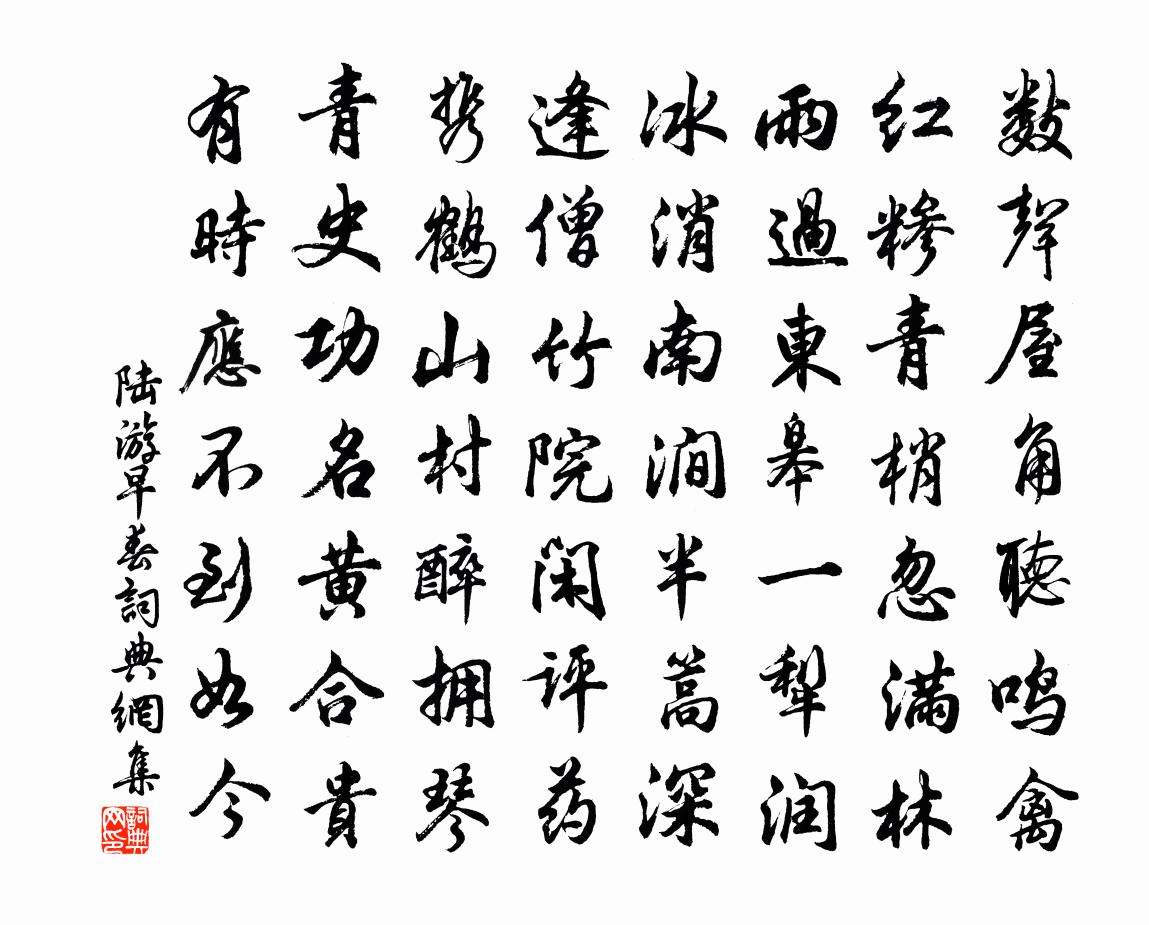 數聲屋角聽鳴禽,紅糝青梢忽滿林。雨過東皋一犁潤,冰消南澗半篙深。