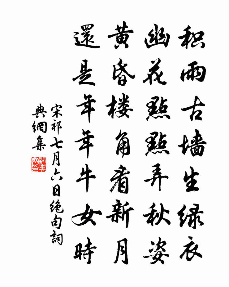 積雨古牆生綠衣,幽花點點弄秋姿。黃昏樓角看新月,還是年年牛女時。