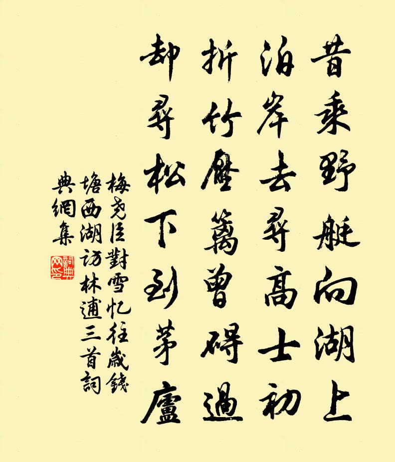 昔乘野艇向湖上,泊岸去尋高士初。折竹壓籬曾礙過,卻尋松下到茅廬。