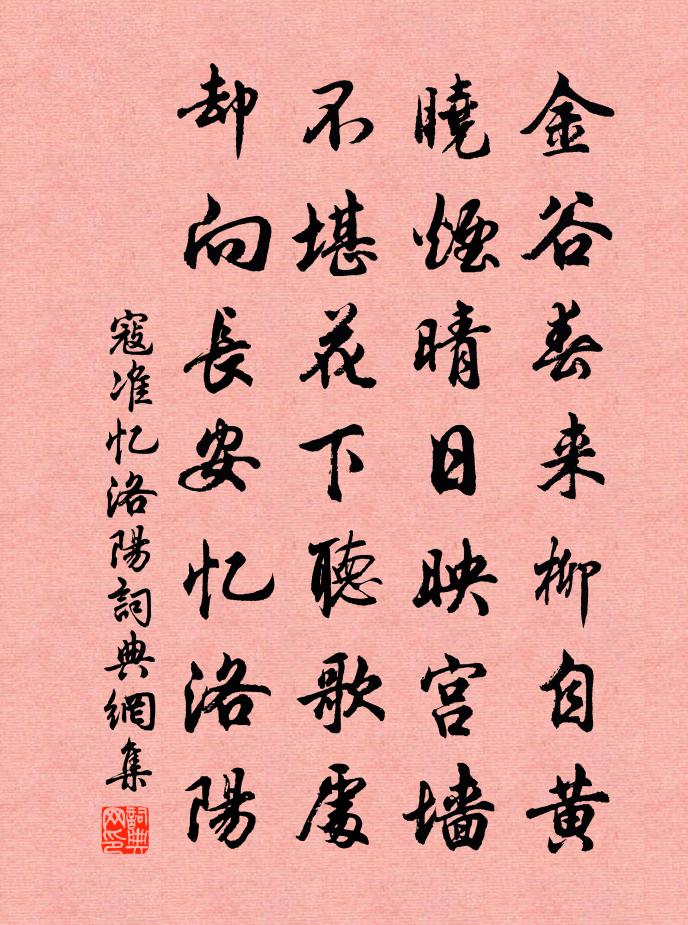 詩詞名句歷史字典書法欣賞書法字典國語詞典說文解字康熙字典古漢語字典標 題 作 者 詩 句 憶洛陽作者:寇準 朝代:宋代憶洛陽原文金谷春來柳自黃,曉煙晴日映宮牆。不堪花下聽歌處,卻向長安憶洛陽。詩詞問答問:憶洛陽的作者是誰?答:寇準問:憶洛陽寫於哪個朝代?答:宋代問:寇準的名句有哪些?答:寇準名句大全寇準憶洛陽書法欣賞憶洛陽書法作品詩詞推薦詠史上光武陳普〔宋代〕赤符交錫帝心移,不似初來岸幘時。浪泊壺頭終落落,羊裘男子殆先知。阮郎歸 寄李都運有之 中州樂府胥鼎〔元代〕人情冷暖共高低。疏慵非所宜。老夫碌碌本無機。閒教造物疑。形木槁,鬢絲垂。山林先有期。故人只道掛冠遲。偈傾一百六十九首釋智朋〔宋代〕大地皆凍鎖,遍界熱如火。時節不放過,衲僧多蹉過。不蹉過,深雪之中有一個。塞上曲李攀龍〔明代〕白羽職霜出塞寒,胡烽不斷接長安。城頭一片西山月,多少征人馬上看。和楊學士和答中丞晏尚書西園玩菊宋庠〔宋代〕憭慄眾芳歇,金英無與儔。香疑飲潭日,歡似漉巾秋。潤蘤霜華入,薰叢野色留。郢蘭休自咤,冰玉此賡酬。邪正吟邵雍〔宋代〕賢人好正,奸人好邪。好邪則競,好正則和。蝶戀花·昨夜秋風來萬里蘇軾〔宋代〕昨夜秋風來萬里。月上屏幃,冷透人衣袂。有客抱衾愁不寐。那堪玉漏長如歲。羈舍留連歸計未。夢斷魂銷,一枕山中文天祥〔宋代〕煙雲開窈緲,荊棘剪離披。蠟屐上下齒,竹枝長短詞。半山江色透,獨樹午陰遲。世上兒孫老,有人猶看棋。岩桂張煒〔宋代〕天街清曉似香林,壓擔秋花塞市心。總被時人低價得,葦簾茅屋盡黃金。張中丞傳後敘韓愈〔唐代〕 元和二年四月十三日夜,愈與吳郡張籍閱家中舊書,得李翰所為《張巡傳》。翰以文章自名,為此傳頗詳密。空煙亭倪思〔宋代〕延福寺前亭下水,淺不容舠深沒底。青林磅薄上雲氣,宛如翔鸞開羽翅,又如翠屏臨水峙。山雞照影空自媚,白鷺早行胡仲弓〔宋代〕曙色微分星漸稀,迎人犬吠出疎籬。輕車穩坐誰知我,不是坡翁戴笠時。阮郎歸孫惟信〔宋代〕滿階紅影月昏黃,玉爐催換香。碧窗嬌困懶梳妝。粉沾金縷裳。鸞髻聳,黛眉長。燭光分兩行。許誰騎鶴上維揚。陳遺至孝劉義慶〔南北朝〕陳遺至孝。母好食鐺底焦飯,遺作郡主簿,恆裝一囊,每煮食,輒貯收焦飯,歸以遺母。後值孫恩掠郡,郡守袁山挽中書舍人葉公三首陳棣〔宋代〕博學該群籍,飛聲藹上庠。巍科曾疊貫,要路遂橫翔。策府登清選,銓曹得望郎。九重方簡在,一鑒遽雲亡。送李無陂還鄉李若水〔宋代〕休辭十驛犯埃塵,花柳無邊政可人。我坐宦囚歸未得,仗君說與古溪春。頌古五首楞岩我不見時釋文準〔宋代〕老胡徹底老婆心,為阿難陀意轉深。韓乾馬嘶青草渡,戴嵩牛臥綠楊陰。悶成華岳〔宋代〕勿憂李廣不封侯,廣不封侯未足憂。漢鼎不烹曹操肉,吳鉤空斷伍員頭。鴻門自昔推屠狗,虎帳於今愧沐猴。千萬法駕導引劉辰翁〔宋代〕春小小,春小小,梅見著些些。未必神仙無白髮,依然林下有黃花。潭影浸流霞。冬十十,冬十十,亥字雁斜斜。題思泉庵王柏〔宋代〕一時人物久飛仙,詩竹和庵盡變遷。尚有禪師風味在,野人門外汲寒泉。名句推薦黃鸝囀處誰同聽,白菊開時且剩過。司空圖《白菊雜書四首》 滿衣血淚與塵埃,亂後還鄉亦可哀。高啟《送陳秀才還沙上省墓》 晴雲滿戶團傾蓋,秋水浮階溜決渠。杜甫《柏學士茅屋》 婿為燕國王,身被詔獄加。李白《秦女休行》 朝騁騖兮江皋,夕弭節兮北渚;屈原《九歌》 不論平地與山尖,無限風光盡被占羅隱《蜂》 綠樹陰濃夏日長,樓台倒影入池塘。高駢《山亭夏日》 露下旗濛濛,寒金鳴夜刻。李賀《塞下曲》 縱收香藏鏡,他年重到,人面桃花在否。袁去華《瑞鶴仙·郊原初過雨》 兒不嫌母醜,狗不嫌家貧。佚名《增廣賢文·下集》