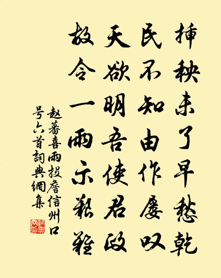 詩詞名句歷史字典書法欣賞書法字典國語詞典說文解字康熙字典古漢語字典標 題 作 者 詩 句 喜雨投詹信州口號六首作者:趙蕃 朝代:宋代喜雨投詹信州口號六首原文插秧未了早愁乾,民不知由作屢嘆。天欲明吾使君政,故令一雨示艱難。詩詞問答問:喜雨投詹信州口號六首的作者是誰?答:趙蕃問:喜雨投詹信州口號六首寫於哪個朝代?答:宋代趙蕃喜雨投詹信州口號六首書法欣賞喜雨投詹信州口號六首書法作品詩詞推薦句張環〔宋代〕人間獨有當時月,山際獨無後世樵。大江東去(自壽)何夢桂〔宋代〕半生習氣,被風霜、銷盡頭顱如許。七十年來都鑄錯,回首邯鄲何處。杜曲桑麻,柴桑松菊,歸計成遲暮。一樽自宴春台(追和張子野韻贈陳德甫侍兒)王之道〔宋代〕翠竹扶疏,丹葵隱映,綠窗朱戶縈迴。簾卷蝦須,清風時自南來。題輿好客筵開。儼新妝、深出雲街。歌珠累貫,金剛隨機無盡頌無為福勝分第十一釋印肅〔宋代〕諸緣眼病花,長安幾萬家。露地白牛穩,休夸鹿牛車。韓幹馬圖陸游〔宋代〕唐人畫馬如相馬,□□不在驪與共。天機入神即揮灑,氣脫毫素先騰驤。昔年曾畫穆王游八極,八龍之駿雲五色。寄令狐賓客張籍〔唐代〕勛名盡得國家傳,退狎琴僧與酒仙。還帶郡符經幾處,暫辭台座已三年。留司未到龍樓下,拜表長懷玉案前。秋日鷓鴣天姚燧〔元代〕誰道夔龍不致君?白頭離亂不曾聞。三秦碧樹生春色,千里青山入暮雲。何事業,底功勳!百年五十已中分。從今聞原甫久在病告有感歐陽修〔宋代〕東城移疾久離居,安得疑蛇意盡袪。諸老何為讒賈誼,君王猶未識相知。浮沉俗喜隨時態,磊落材多與世疏。誰謂子京以長篇告別值予欲出一絕謝之陳文蔚〔宋代〕二年不作上方游,一日重尋舊話頭。卻恨嬋娟成兩處,清尊無分共中秋。節假之中風氣又作僅將伏枕固難登門更獻五章李至〔宋代〕出門何所適,馬亦認余情。轉曲才東去,嘶風便北行。樹高牆外見,犬熟道邊迎。何處多相對,南軒景最清。寄彥成榮歸陸游〔宋代〕交舊天涯曉宿稀,年來獨子付心期。滿床文史對談處,萬里風霜並轡時。雨滴空階憐夜榻,吟牽芳草夢春池。合沙有嘆蘇泂〔宋代〕古屋殘僧住,孤墳亂蟻穿。山稜人踏減,灘石浪搓圓。毀譽無終日,功名有百年。予方辜壯負,渠得戀華顛。自鹹平至太康鞍馬間得十小詩寄懷晏叔原並問黃庭堅〔宋代〕詩入雞林市,書邀道士鵝。雲間晏公子,風月興如何。偈雙林大士〔宋代〕渡河須用筏,到岸不須船。人法俱名執,悟理詎勞詮。中流仍被溺,誰論在兩邊。有無如取一,即被汗心田。頌一百則釋重顯〔宋代〕與君放出關中主,放箭之徒莫莽鹵。取箇眼兮耳必聾,舍箇耳兮目雙瞽。可憐一鏃破三關,的的分明箭後路。君不高昌童謠佚名〔唐代〕高昌兵馬如霜雪,漢家兵馬如日月。日月照霜雪。回首自消滅。謁郭道沖唐師德登台偶作朱長文〔唐代〕沖寒步郊原,煙水照林薄。雪余山色佳,浦浚湖波落。靜可釣綸垂,清欲塵纓濯。相逢兩俊友,辭義富金臒。攜手偶因團聚思想仙岩指就觀瞻龕……釋道真〔宋代〕人生四大{上物下心}是空,何個不覓出煩籠。造罪人多作福少,所以眾生長受窮。堅修苦行仍本分,禁戒奢華並清宇移居章甫〔宋代〕懷抱俱牢落,相逢得暫開。有時逃酒去,排日送詩來。撫事空三嘆,移家又一回。秋涼安穩住,莫負菊花杯。徐子融以詩送余方叔吳介甫二書見示和韻以謝陳文蔚〔宋代〕借得緘書卷又開,喜同千里故人來。切嗟正為求真益,肯使鱗鴻泛往回。名句推薦肥水東流無盡期。當初不合種相思。姜夔《鷓鴣天·元夕有所夢》 文豈有常體,但以有體爲常李大師、李延壽《南史·列傳·卷三十二》 信言不美,美言不信。善者不辯,辯者不善。知者不博,博者不知。老子《老子·德經·第八十一章》 舊苑荒台楊柳新,菱歌清唱不勝春。李白《蘇台覽古》 早梅發高樹,迥映楚天碧。柳宗元《早梅》 雨濕花房,風斜燕子,池閣晝長春晚。呂渭老《選冠子·雨濕花房》 問渠那得清如許?為有源頭活水來。朱熹《觀書有感二首·其一》 無處不傷心,輕塵在玉琴。納蘭性德《菩薩蠻·蕭蕭幾葉風兼雨》 槐柳野橋邊,行塵暗馬前。齊己《送人游塞》 莫罵酉時妻,一夜受孤淒。佚名《增廣賢文·上集》